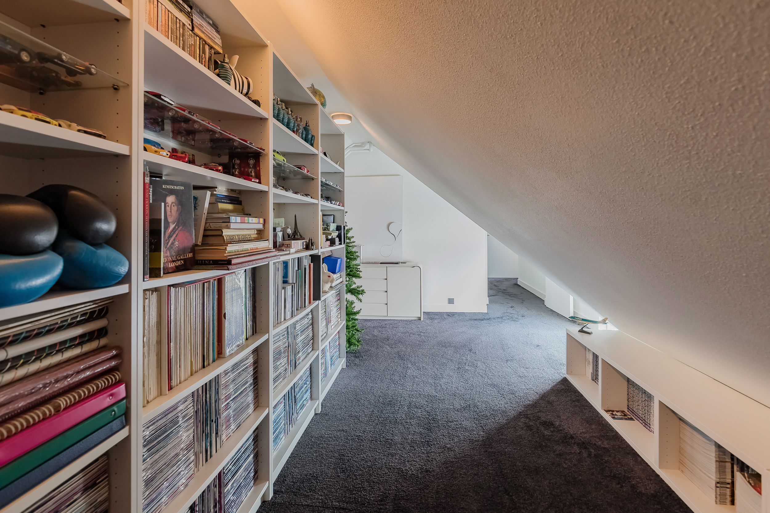 Op deze etage zijn 3 slaapkamers, 2 badkamers en een grote bergruimte. De zeer royale hoofdslaapkamer heeft een eigen luxe badkamer en een ruime kleedkamer. Het balkon is alleen vanuit deze kamer toegankelijk. 20 Dakramen zorgen voor extra lichtinval en ook hierin is de symmetrie doorgetrokken.