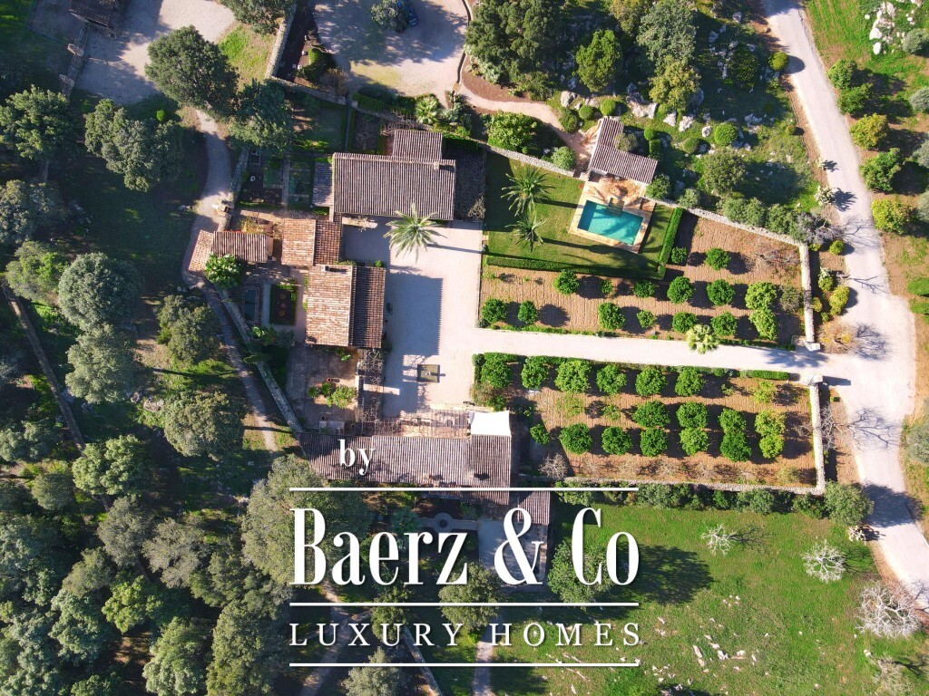 Landgoed te koop in Pollença, een uitzonderlijk toevluchtsoord op 172.483 m² rustiek Mallorquijns landschap, waar volledige privacy en weidse bergzichten samenkomen. Het hoofdgebouw beslaat 1.307 m² en omvat drie zelfstandige bungalows, verbonden door veranda’s, terrassen en aangelegde tuinen. Deze gastenverblijven, zo’n twintig jaar geleden gebouwd, zijn zorgvuldig onderhouden en harmonieus gekoppeld door uitnodigende buitenruimtes.