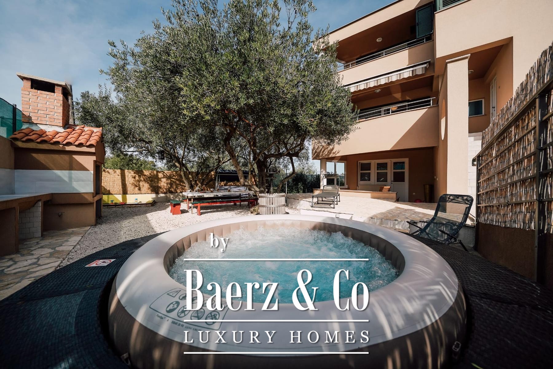 are four bedrooms and a bathroom.In the courtyard decorated in Mediterranean style there is a swimming pool.From the terrace there is a view of the sea and the city of Zadar.The house is fully furnished and equipped.The heating and cooling system is arranged via air conditioning, with the possibility of wood heating.There is preparation and a project for a solar power plant.Proper ownership.More information on request.