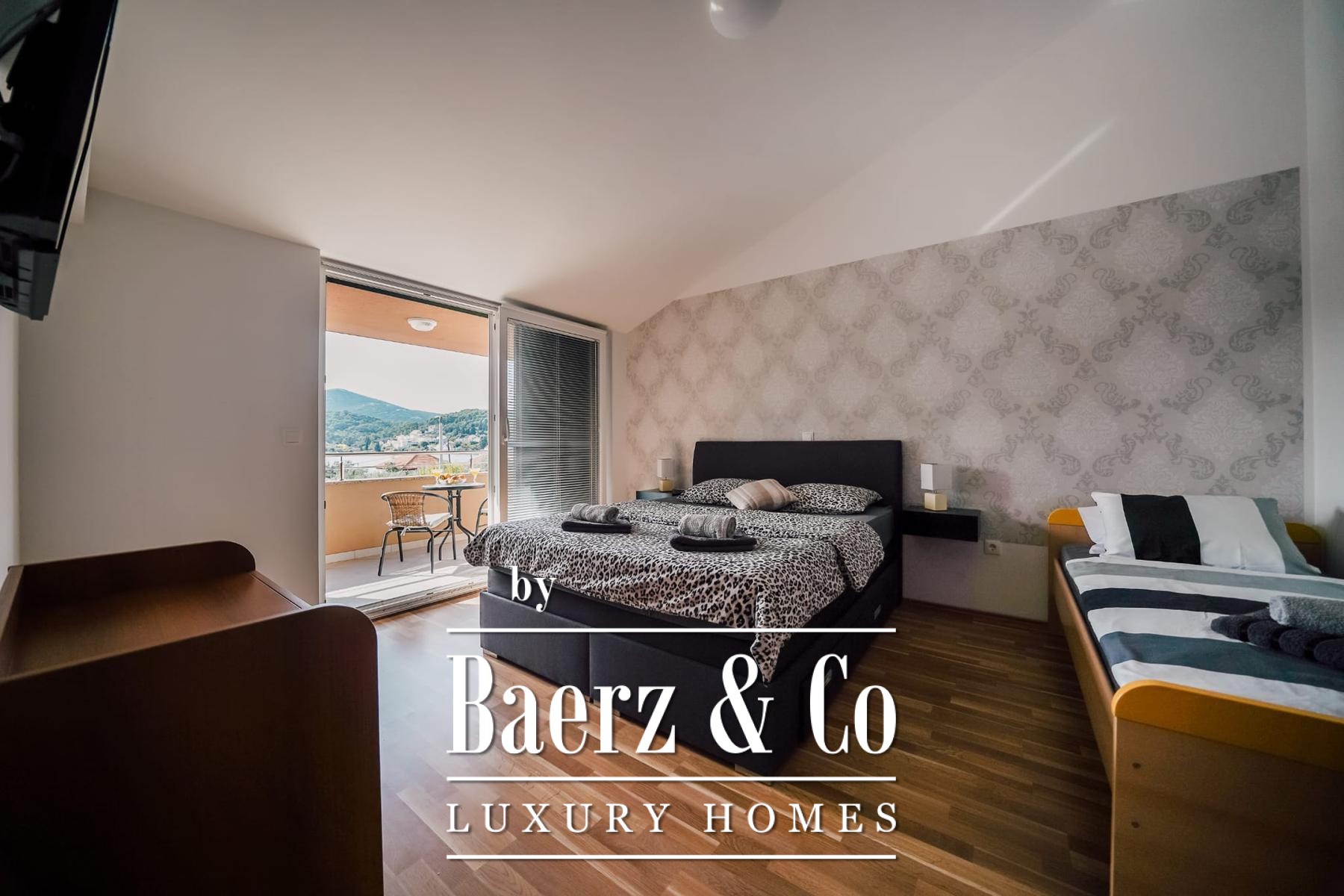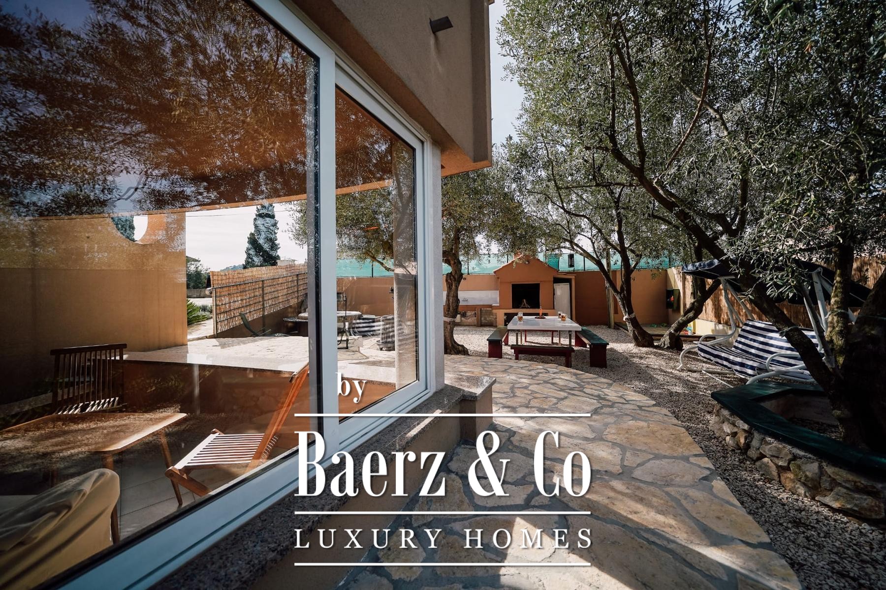 Sutomišćica, a beautiful detached house is located on a plot of land measuring 610 m2.It extends over three floors and consists of 235 m2 of living space.On the ground floor of the house measuring 84 m2 there is a garage, laundry room, storage room, guest toilet, terrace and summer kitchen.On the second floor there is a kitchen and dining room, a spacious living room, bathroom and terrace, while on the top floor there