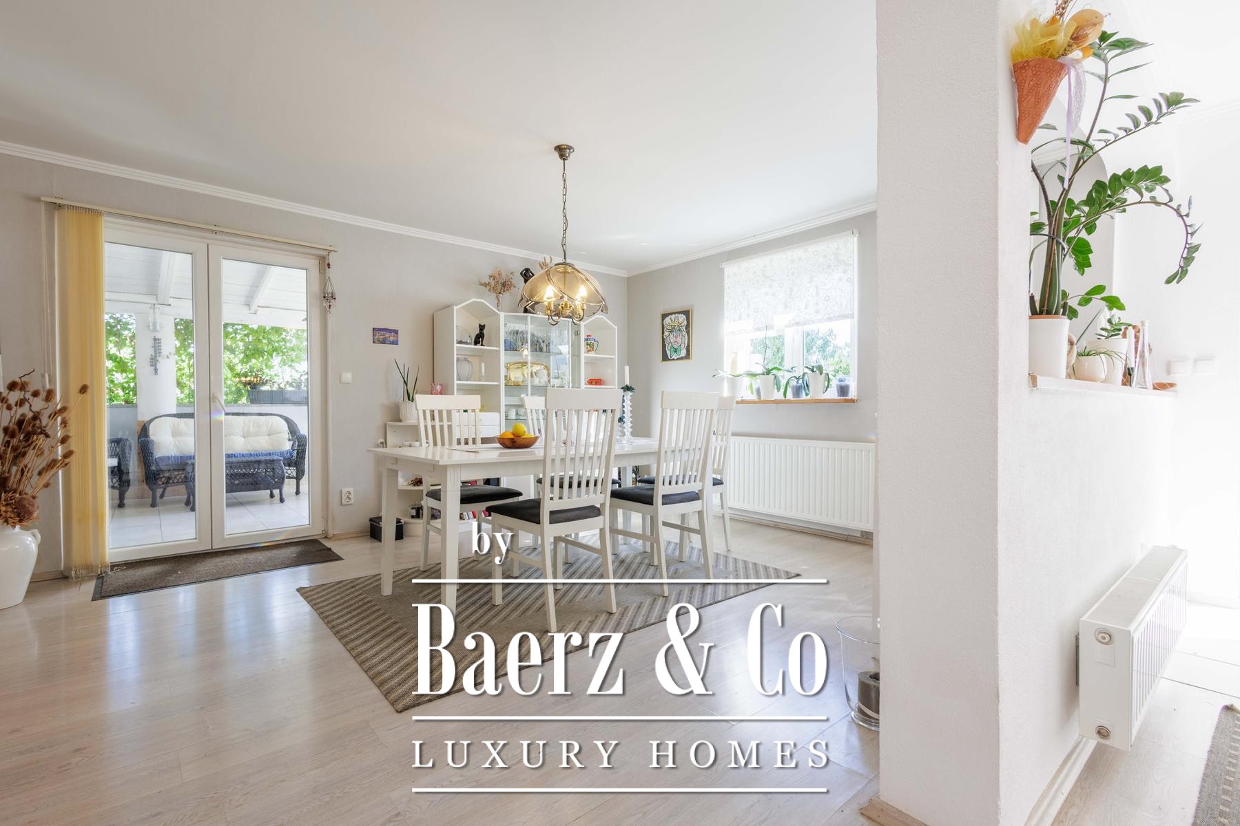 room that open onto a 30 m2 terrace, one bedroom and a bathroom. On the first floor there is a living room, a dressing room and three bedrooms, two of which share a terrace, and an additional bathroom. There is also a 20 m2 laundry room next to the house, which adds practicality to everyday life.The grounds are spacious and carefully landscaped, with a swimming pool and sundeck, an outdoor kitchen and dining area, a garden and ample parking space. Everything is enclosed by a living wall, creating the feeling of a private retreat, completely hidden from view, ideal for family life or enjoying peace and quiet.There is a possibility of negotiating and purchasing only the first house with two apartments.For more information or to arrange a viewing, please contact us.