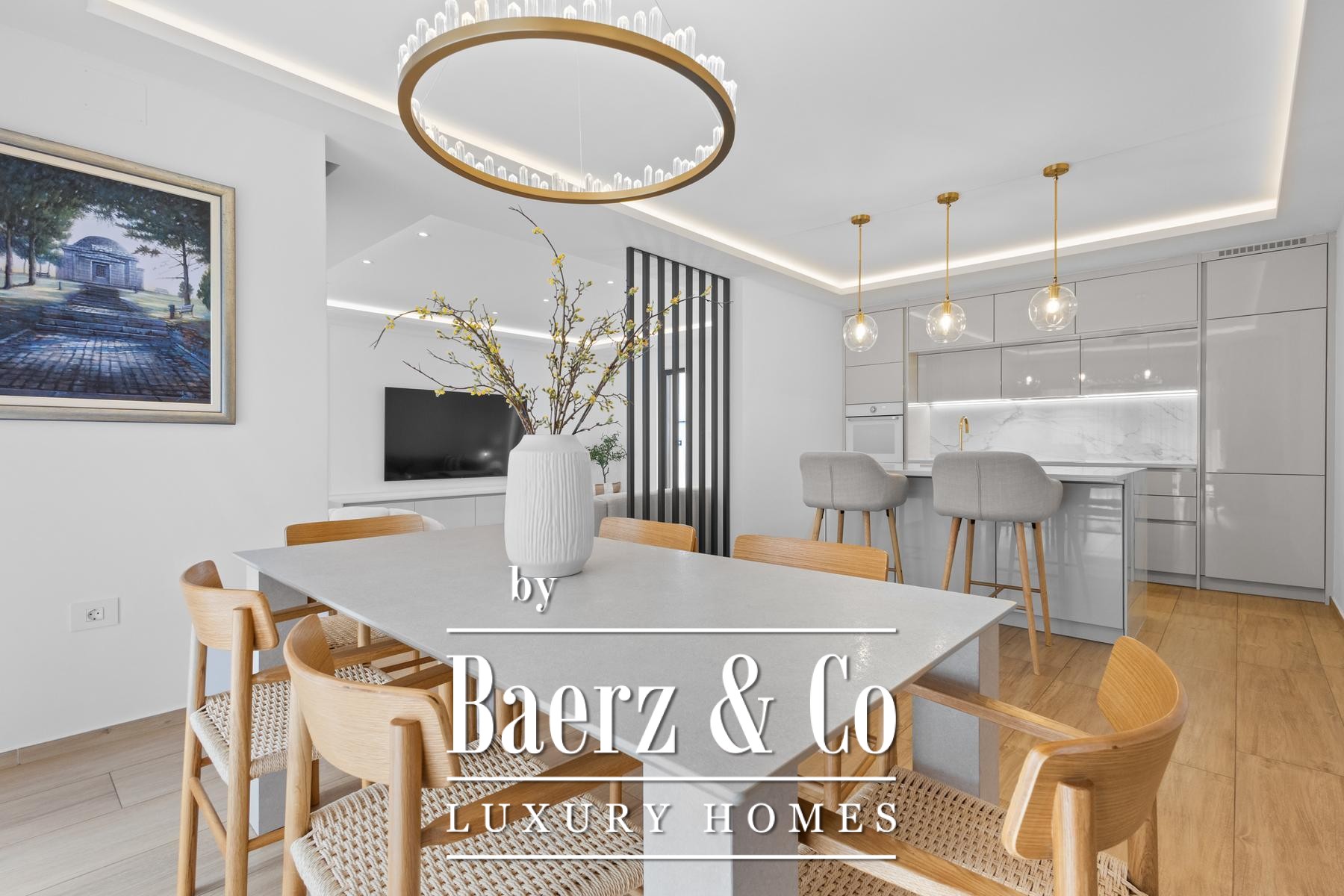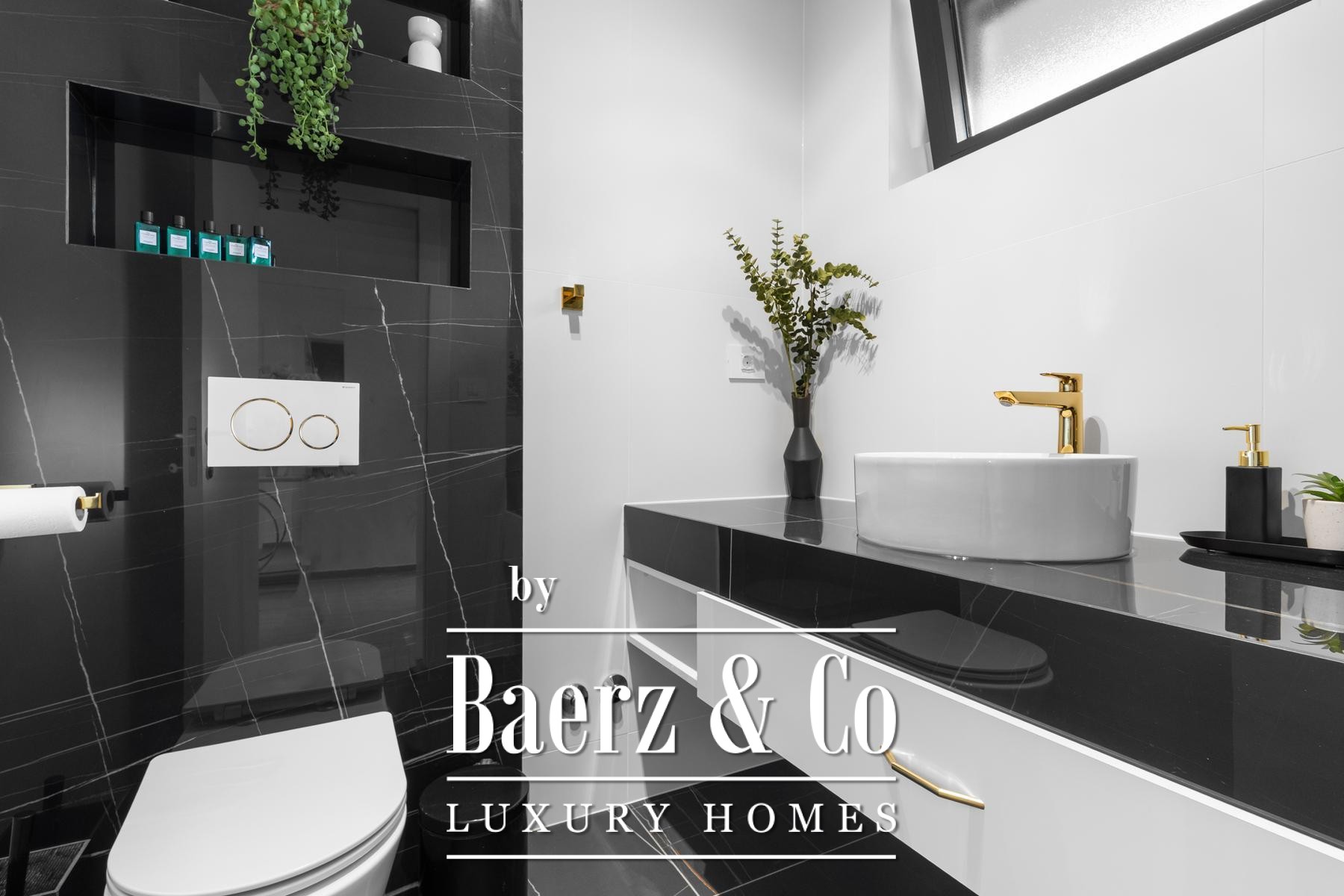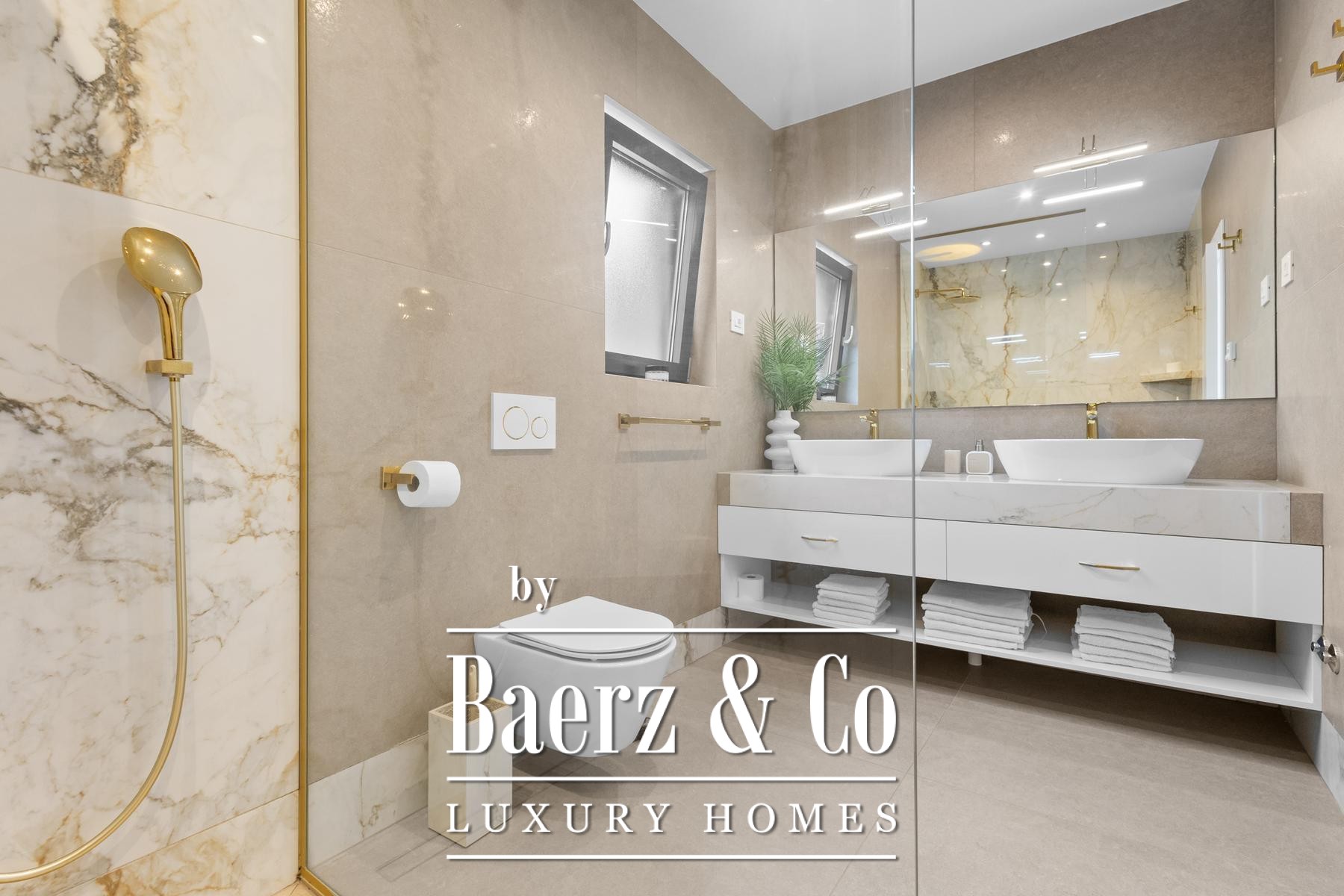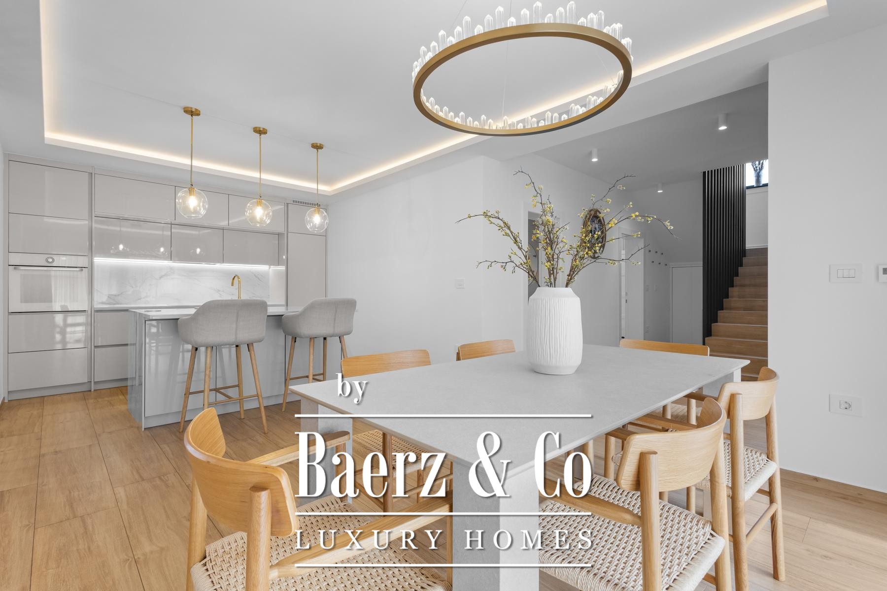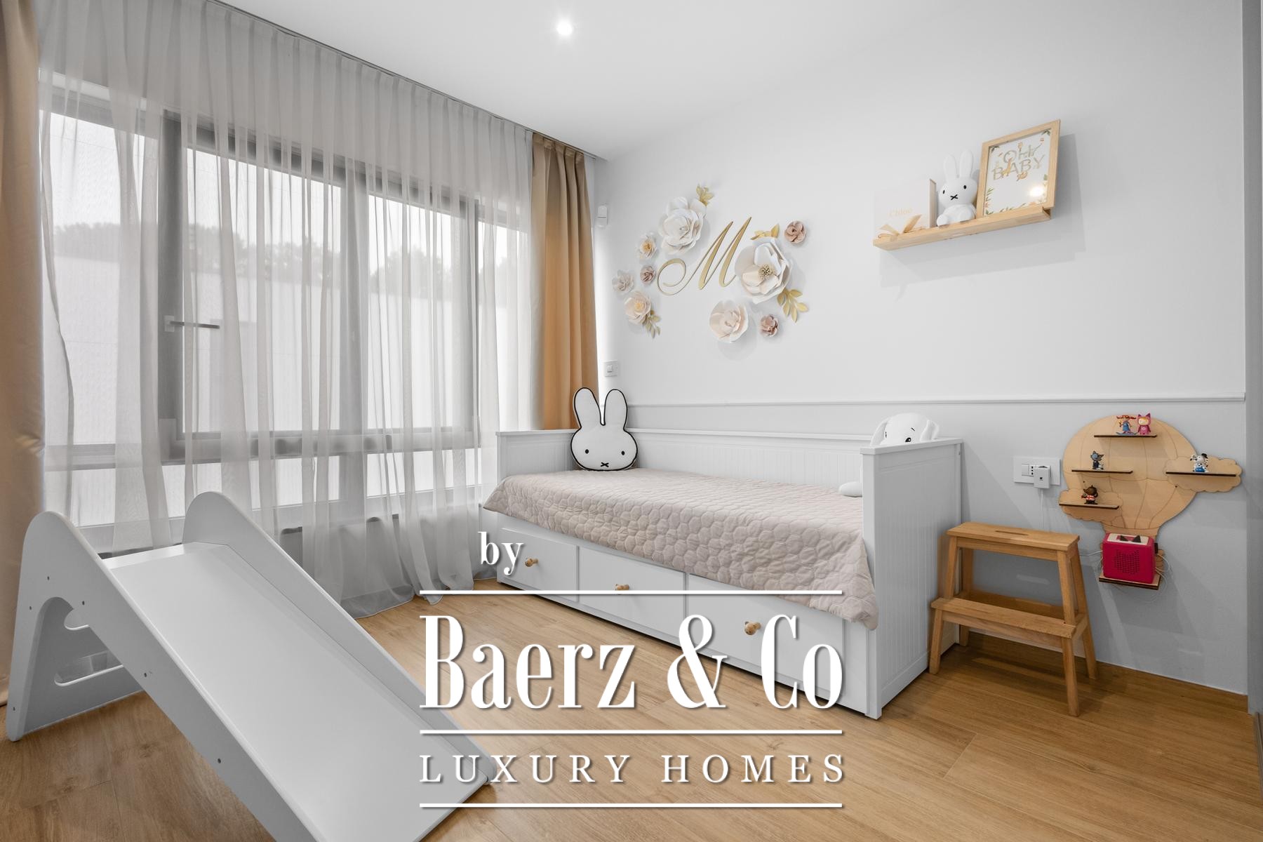 Het dagelijkse leven ontvouwt zich rondom een open leefruimte van 48 m², waar keuken, eet- en loungegedeelte naadloos in elkaar overlopen. Vloer-tot-plafond glaspartijen openen naar een overdekt terras van 23 m², waardoor licht binnenvalt en binnen en buiten samenvloeien. Vier slaapkamers en vier badkamers zorgen voor flexibiliteit, waarbij de bovenverdieping een master suite met inloopkast en aparte kinderkamers biedt. Vrije tijd wordt naar een hoger niveau getild dankzij een fitnessruimte en sauna van 30 m² en twee besloten dakterrassen, elk met optimale privacy binnen de stedelijke omgeving.