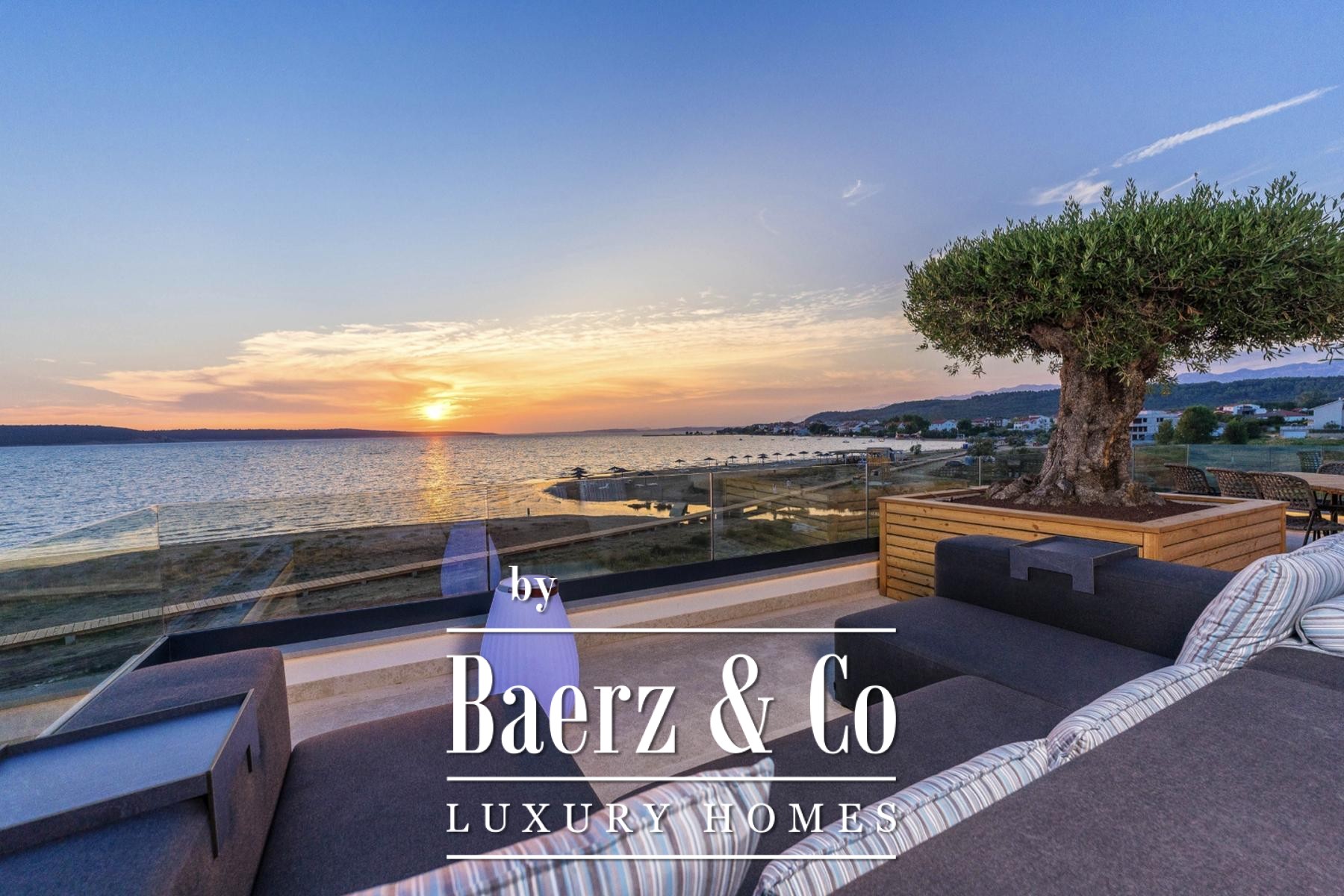 Moderne villa Ražanac is een eigendom van 316 m², direct aan zee gelegen, en biedt een exclusieve en eigentijdse levensstijl aan de Kroatische kust. Deze villa, voltooid in 2022, bevindt zich op een perceel van 703 m², omgeven door een mediterrane tuin met olijfbomen, palmen en lavendel, zorgvuldig ontworpen voor optimale privacy en rust.