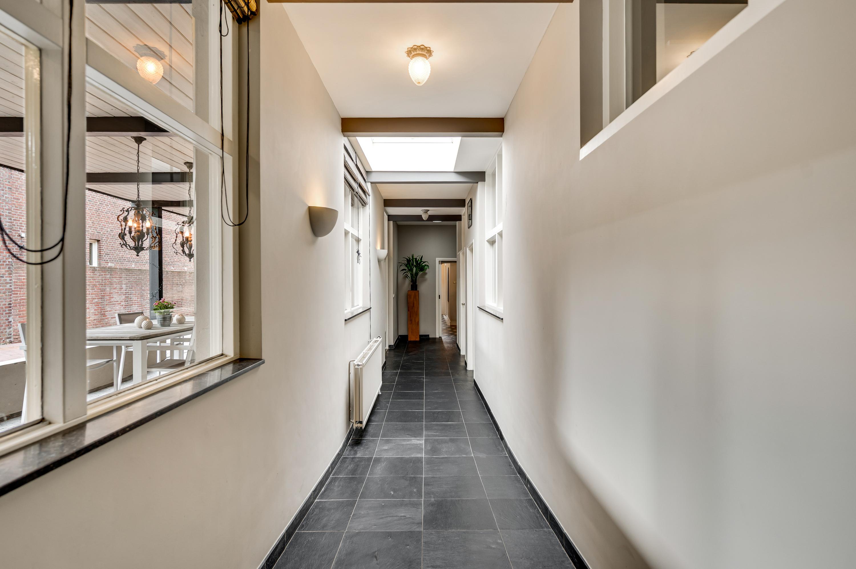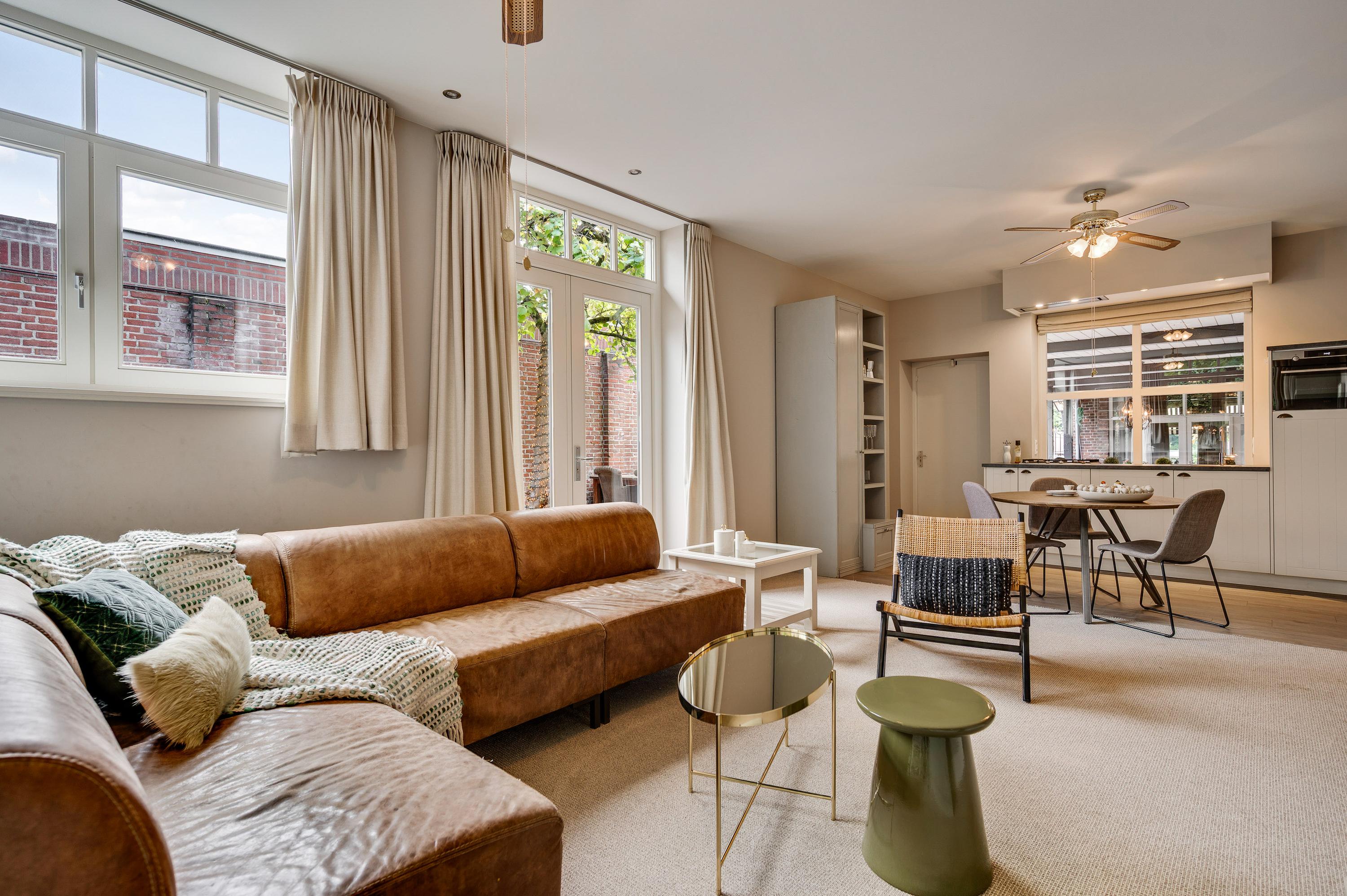 Bij binnenkomst wordt u direct omarmd door de warme sfeer en verfijnde afwerking. De imposante woonkamer van bijna tien meter lengte vormt het hart van het huis. Hier ligt een prachtige Versailles-parketvloer, die in combinatie met de design gashaard en de hoge raampartijen zorgt voor een ambiance van exclusieve rust. Via de openslaande tuindeuren loopt de ruimte naadloos over in het overkapte terras en de stijlvolle stadstuin – een privé-oase midden in de stad.