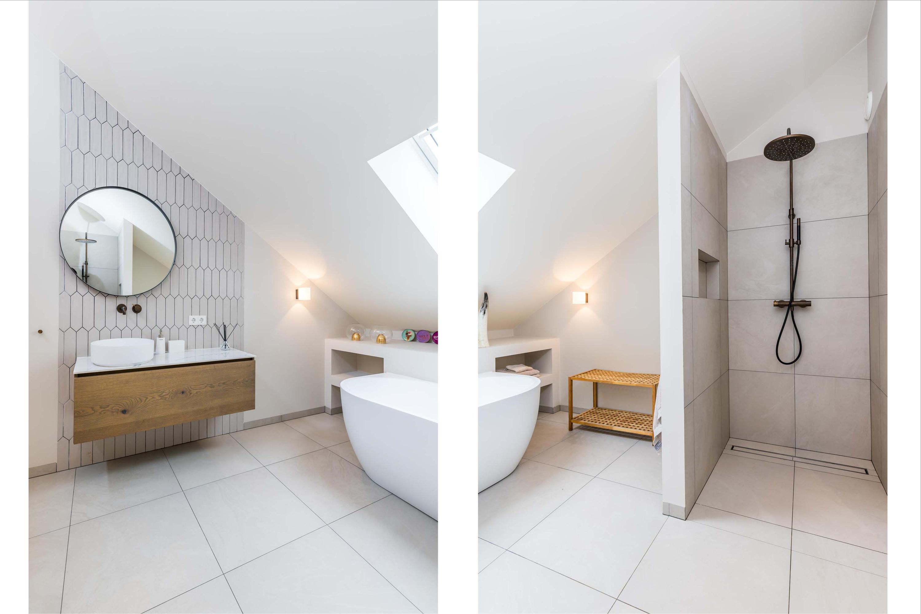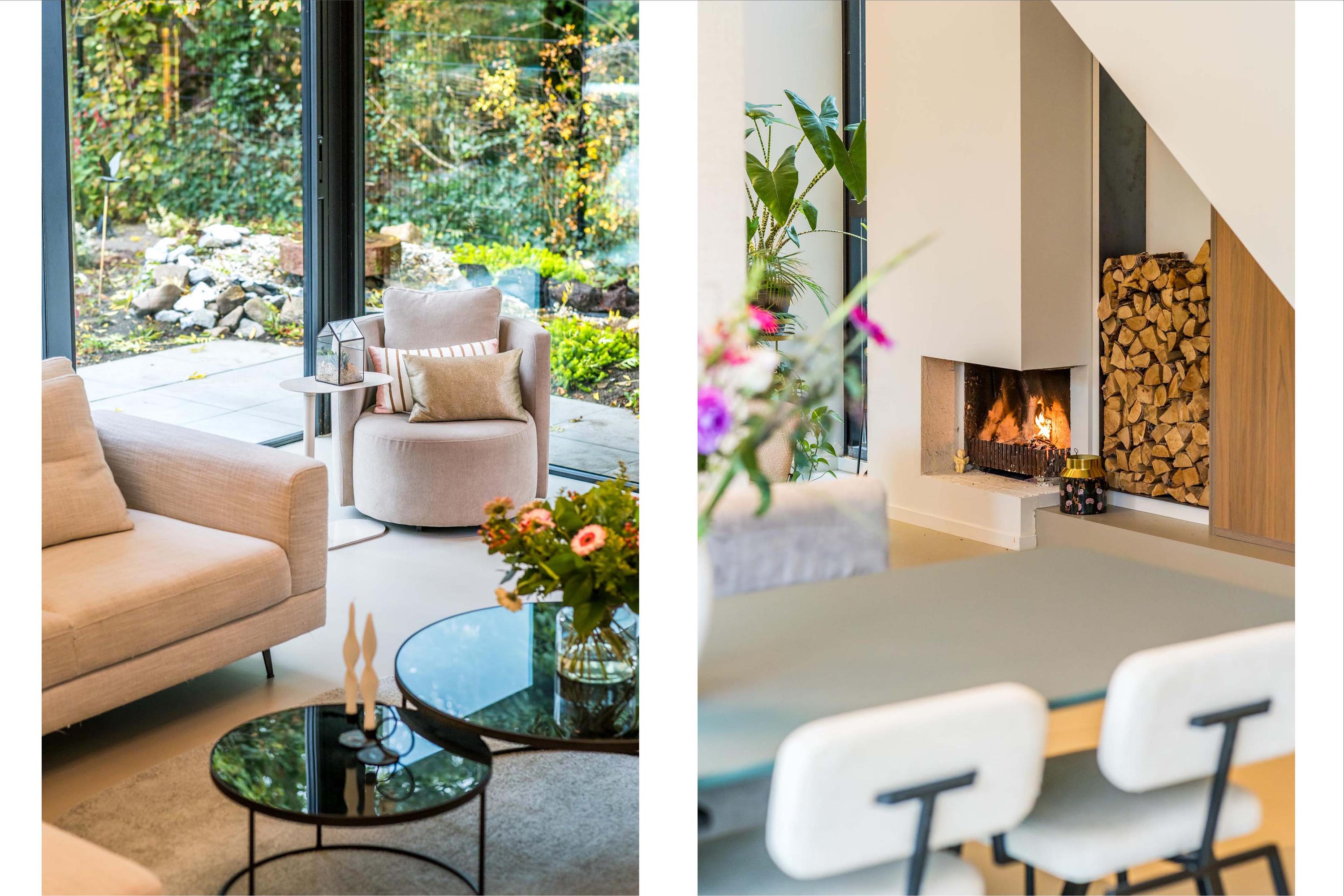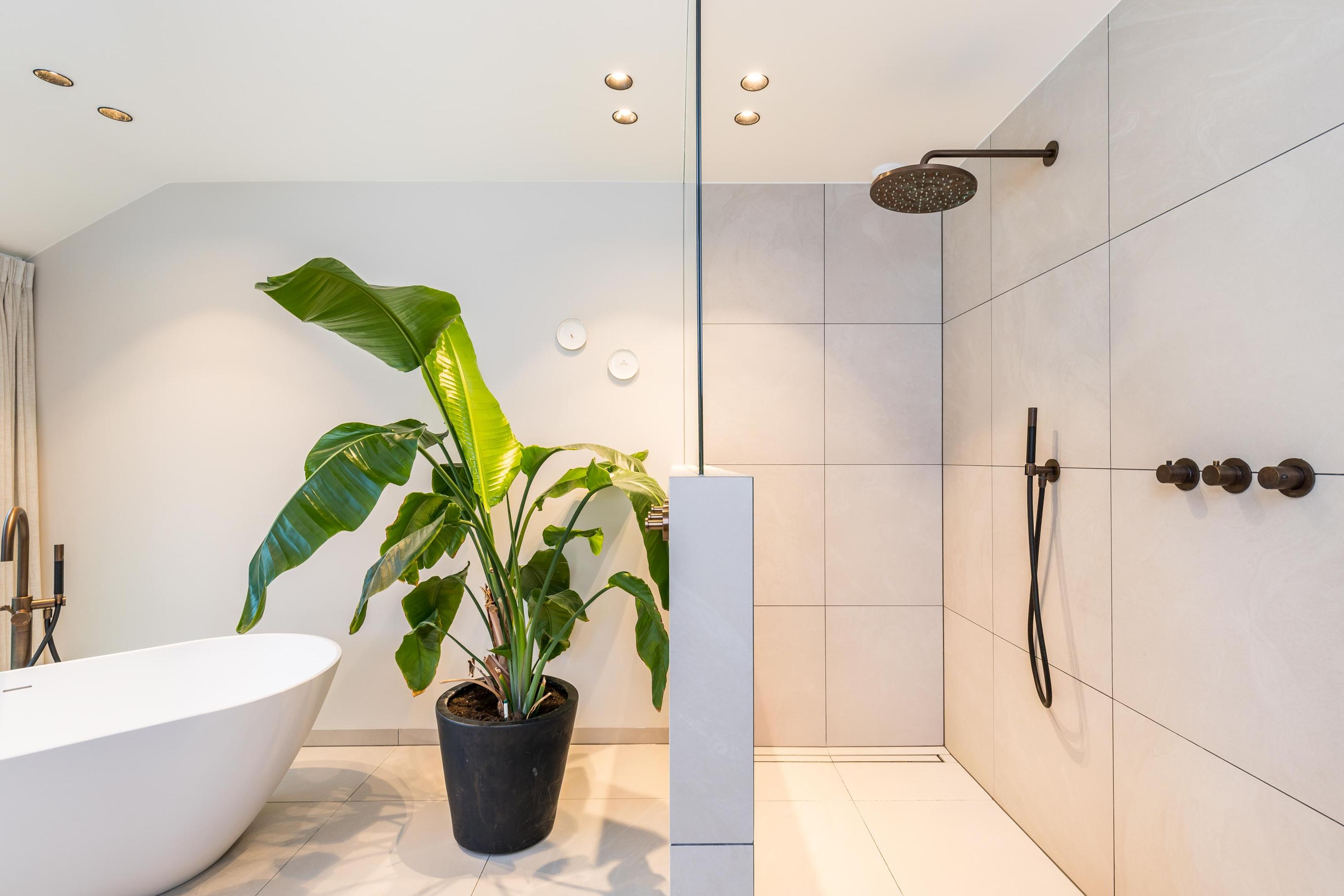 Charmante tuingerichte zitkamer met knusse open haard en leuke doorkijkjes naar zowel de voortuin als de achtertuin met beekje. Vanuit de woonkeuken is er toegang tot een ruimte tv-kamer aan de voorzijde. Eveneens vanuit de keuken is er een aparte gang met toilet voorzien van fonteintje en toegang tot de master bedroom met walk-in closet en eigen luxe badkamer met uitzicht op de tuin en voorzien van een vrijstaand ligbad, inloopdouche en wastafelmeubel. Voorts is er een ruime waskamer/mud room met veel bergruimte waar ook bijvoorbeeld een fitnesskamer van de maken is. In deze ruimte is de opstelling van de installaties, waaronder de warmtepomp, mooi weggewerkt.