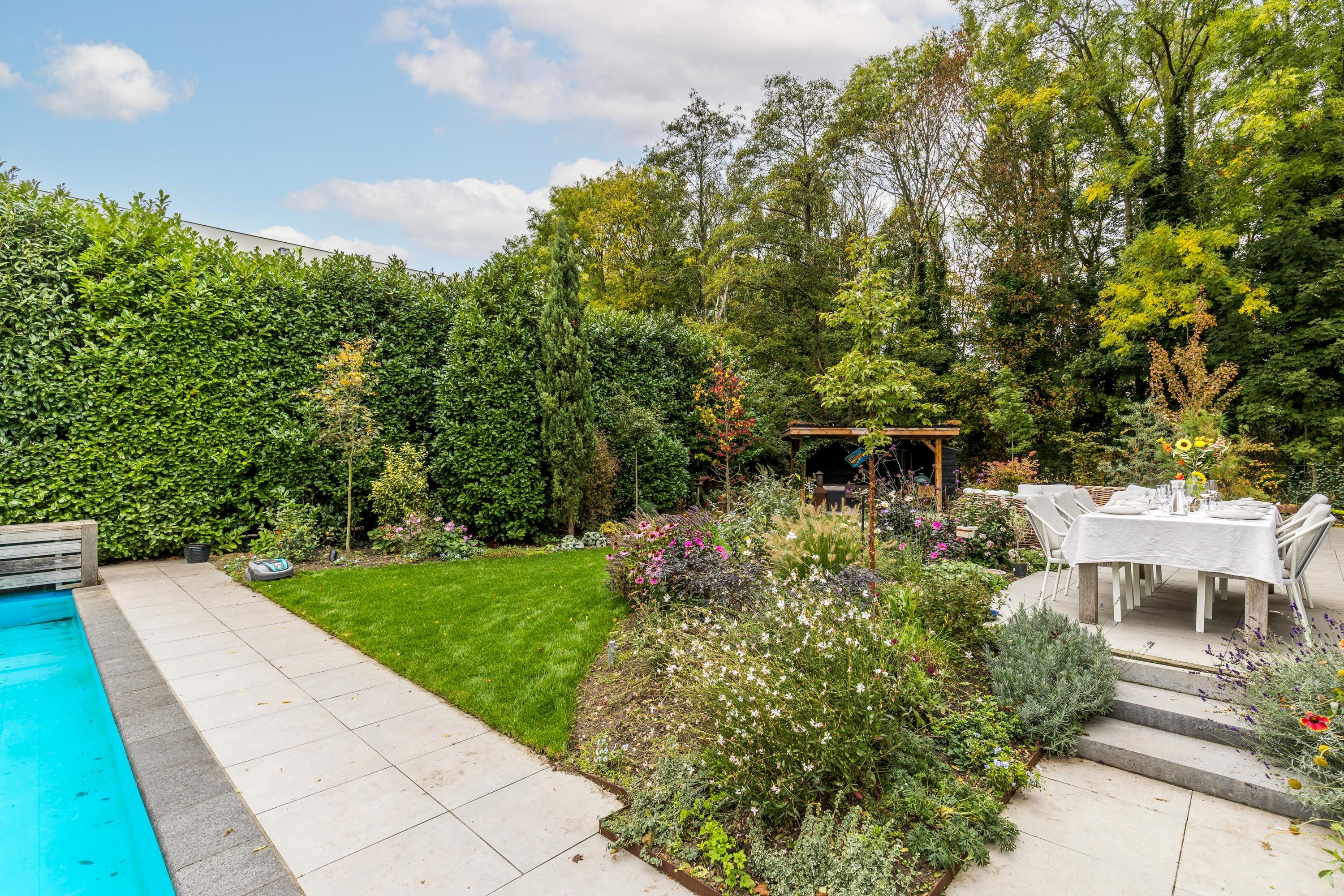Onder architectuur aangelegd en met opvallend veel privacy, voorzien van parkeergelegenheid op eigen terrein, zwembad, een charmante overkapping die als buitenkeuken kan fungeren, 2 bergingen en een overkapping voor fietsen.