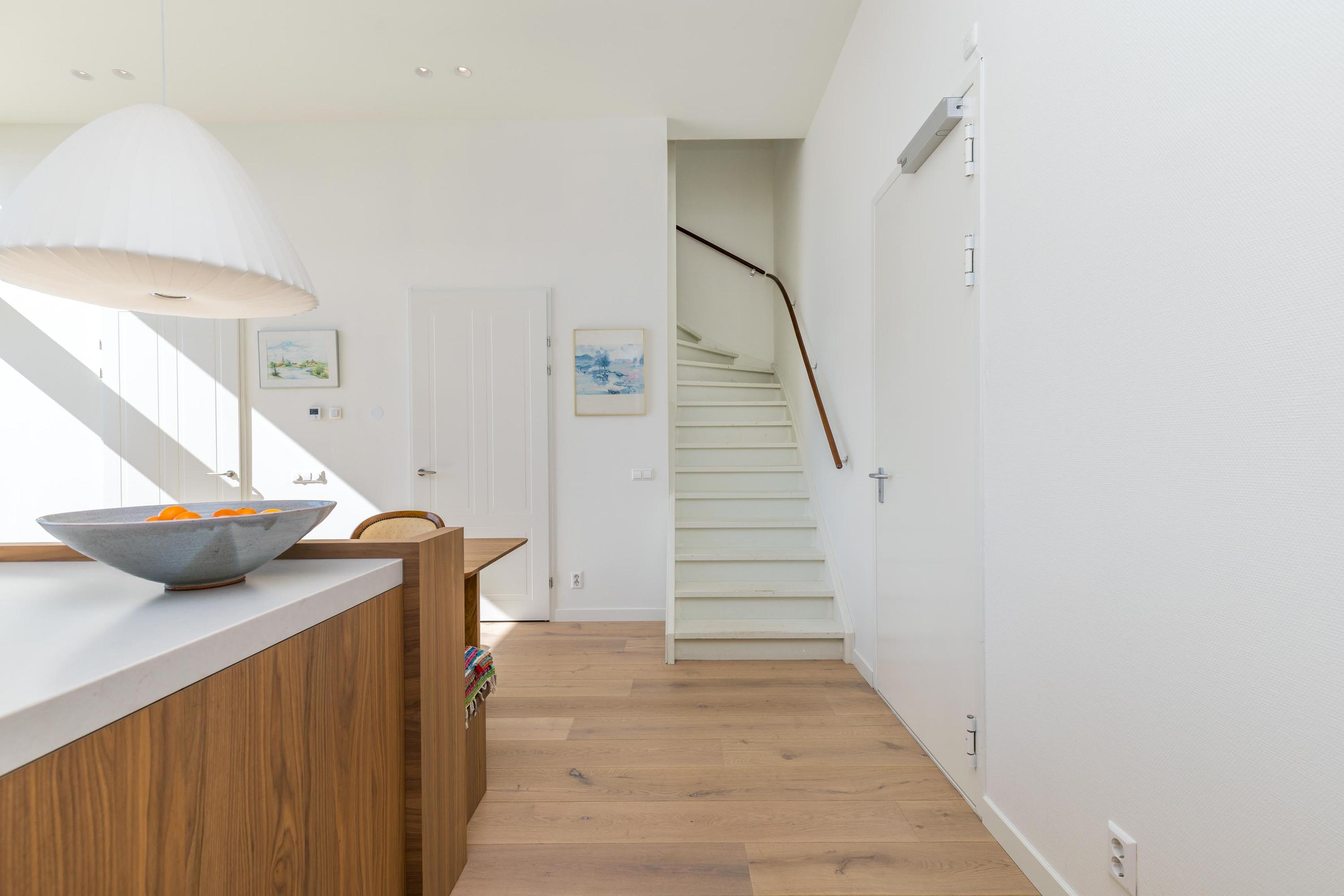 Via uw eigen veranda/zonneterras op de begane grond (gelegen op het zonnige zuiden én aan de Maas) betreedt u de woning. Hier bevindt zich de zeer luxe woonkeuken, volledig uitgerust en ontworpen om te genieten, of u nu een intiem diner organiseert of uitgebreid kookt voor vrienden en familie. Direct aangrenzend is er een ruime inpandige berging, ideaal voor extra opslag.
