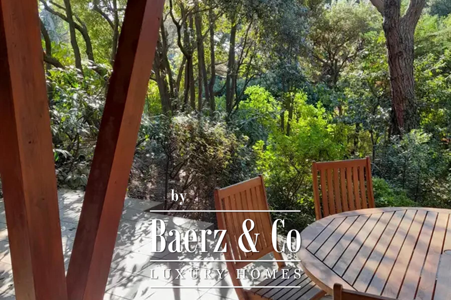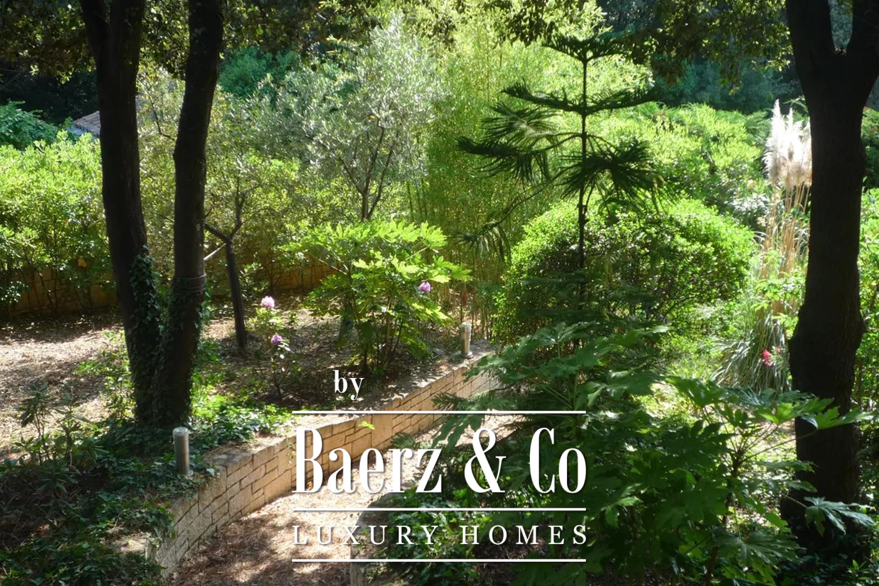 Boven bieden vier serene slaapkamers toegang tot balkons. Een galerij en schaduwrijke terras verbinden met een dakterras voor kalme, beschouwende momenten boven de tuin. Op de benedenverdieping bevindt zich een glazen zomerse keuken en een wellnessruimte met sauna, zwembaden en een aangelegde terras; een kelder biedt opslagruimte, centrale systemen en een wasruimte.