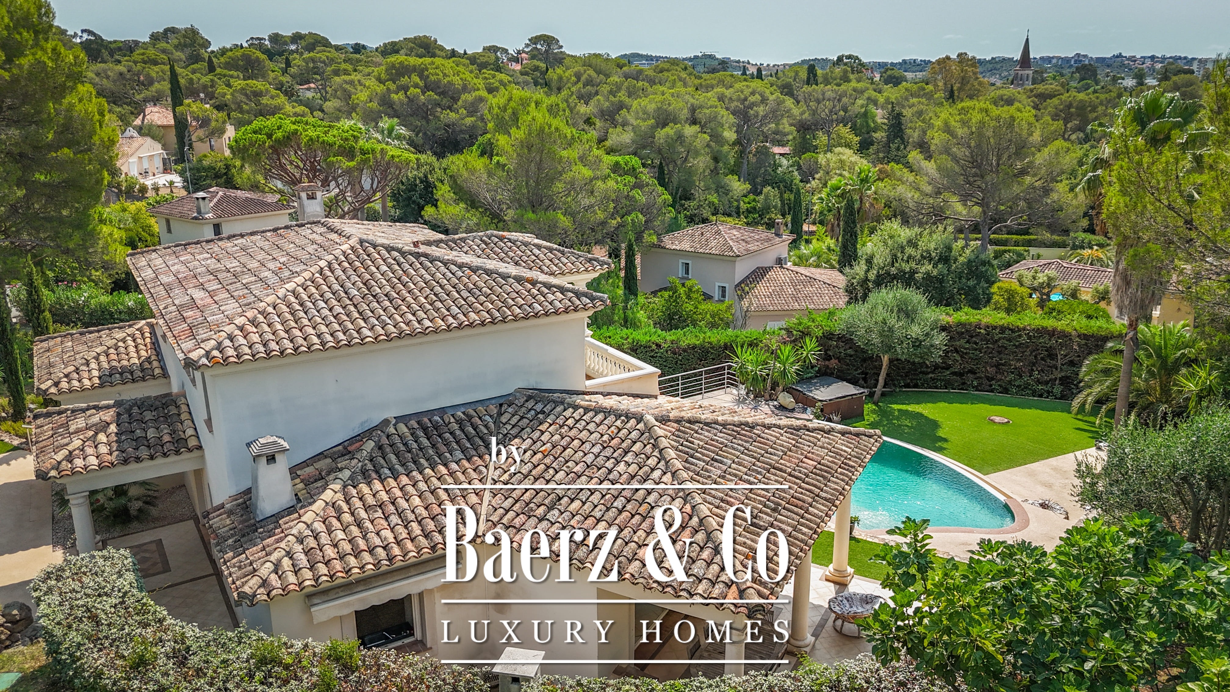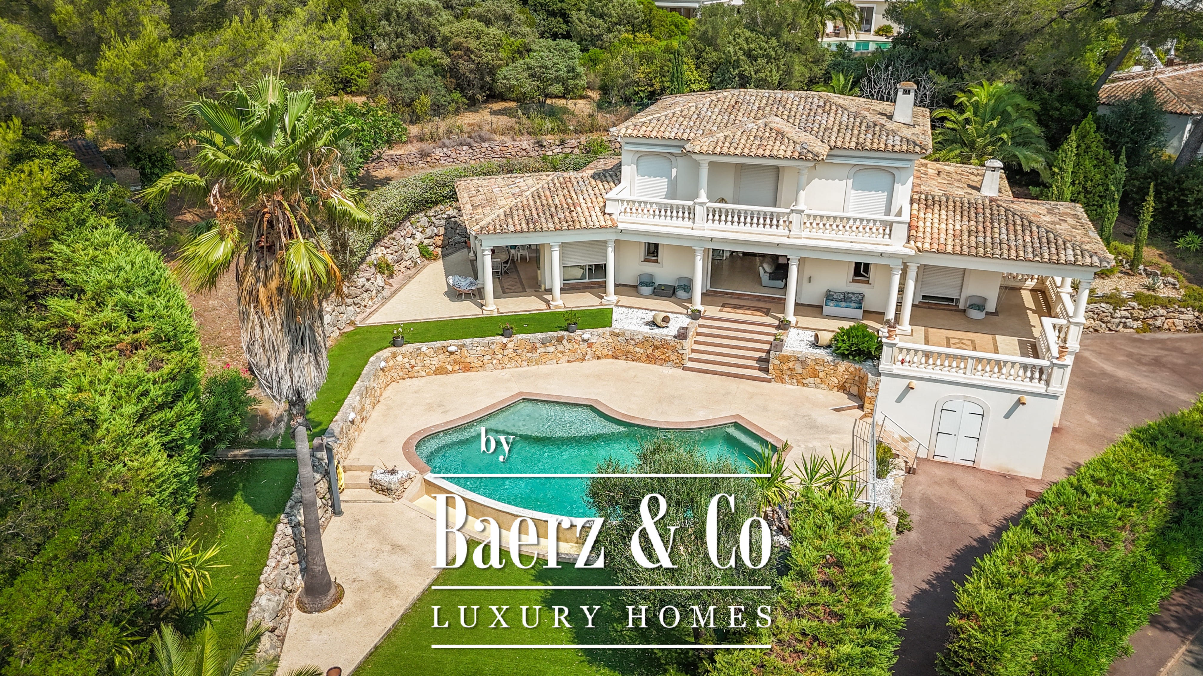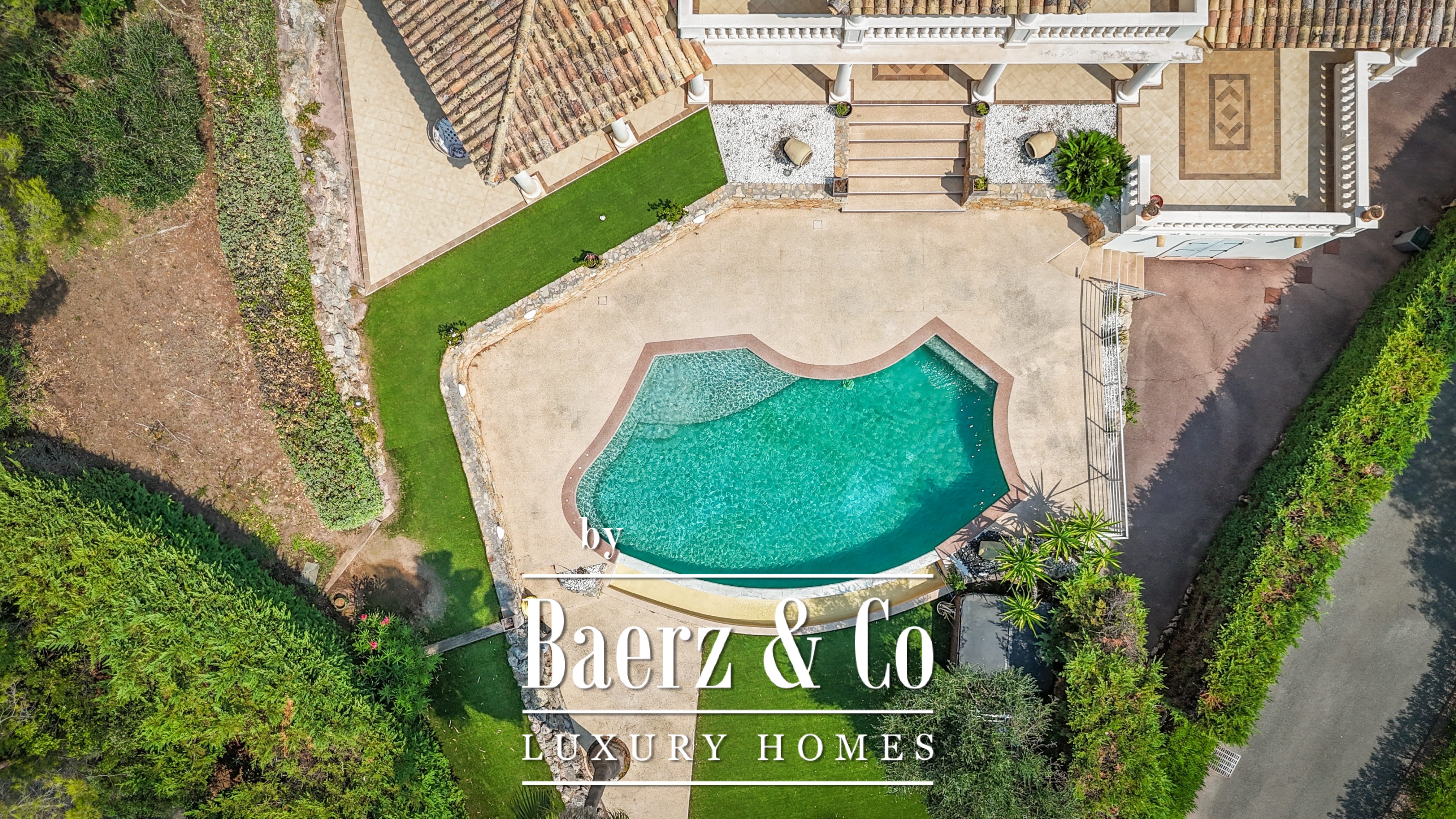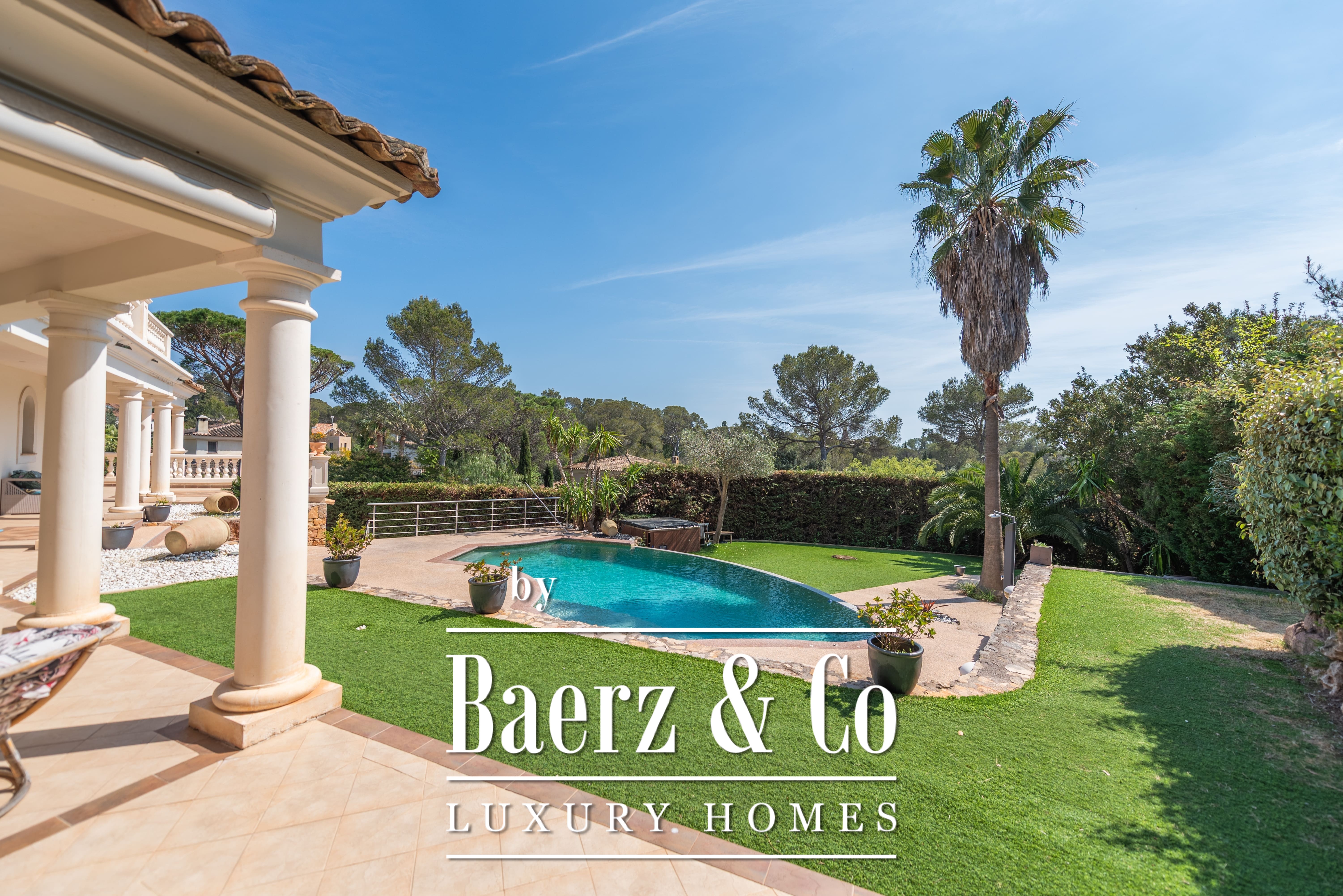 Het aangelegde perceel van 1.511 m² omringt het huis met volwassen tuinen, verschillende terrassen en een infinity pool. Op het lagere niveau vindt u een speelkamer, dubbele garage en technische ruimtes. Details als aluminium kozijnen, centrale elektrische rolluiken, alarmsysteem, videobewaking en een elektrische poort zorgen voor extra gemoedsrust.