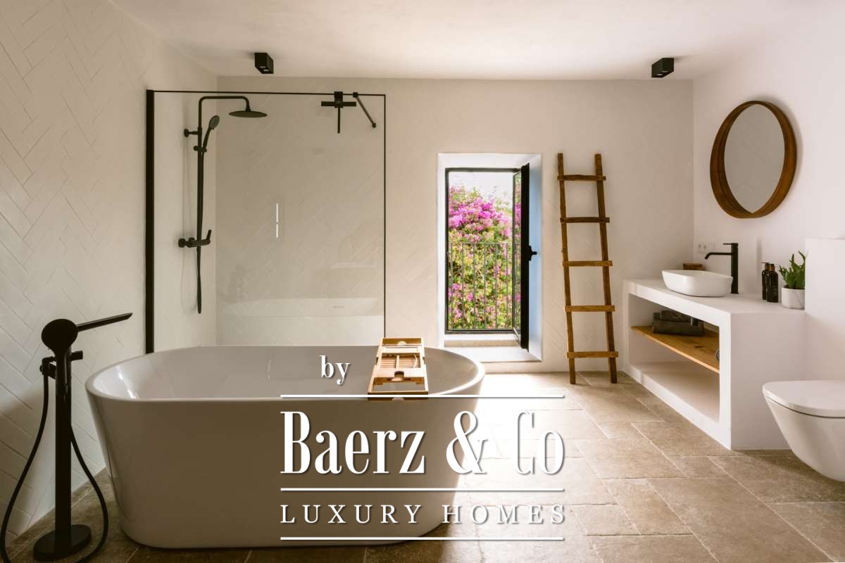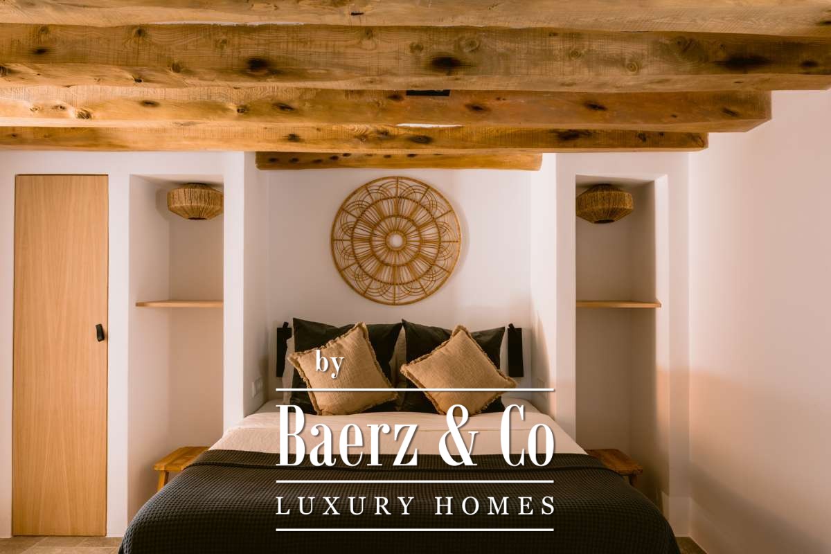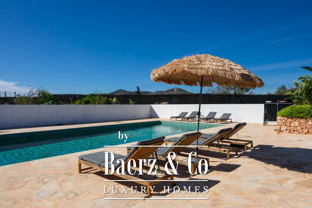 De casita bevindt zich ongeveer 50 meter voor de hoofdwoning, waardoor u verzekerd bent van optimale privacy en het een ideale ruimte biedt voor verhuur of het ontvangen van gasten. Zowel het hoofdhuis als de casita zijn voorzien van vloerverwarming en airconditioning in iedere ruimte, zodat u het hele jaar door kunt genieten van een aangename temperatuur. Beide residenties bieden glasvezel high-speed internet en zijn uitgerust met moderne alarmsystemen, die zorgen voor een perfecte verbinding en optimale veiligheid. Bovendien is alle inventaris bij deze prachtige finca inbegrepen, wat het tot een sleutelklaar en direct te betrekken eigendom maakt.De buitenruimtesWanneer u de tuin binnenstapt, vindt u verschillende ruime terrassen, een schitterend beschaduwde al fresco eethoek en een zonovergoten zwembad van ruim 90m², vergezeld van comfortabele ligbedden. De moderne omheining biedt de privacy die u wenst, terwijl de luxueuze Ibicenco sfeer wordt geaccentueerd door het wit geschilderde pand en de houten tuinmeubelen en decoraties. Het ruime land dat zich uitstrekt tussen het hoofdverblijf en het gastenverblijf is ideaal voor landscaping en omringt beide huizen. In de tuin van het hoofdverblijf staat een originele monumentale Ibicencan toren, die een historisch tintje geeft aan dit prachtige eigendom. Een ander bijzonder detail is het lichtontwerp van de tuinen. Het pad naar de casita heeft bijvoorbeeld discrete lichtspots op de grond, die u de weg wijzen naar dit aparte verblijf. Deze woning biedt de traditionele Ibiza allure in combinatie met een modern luxe lifestyle.