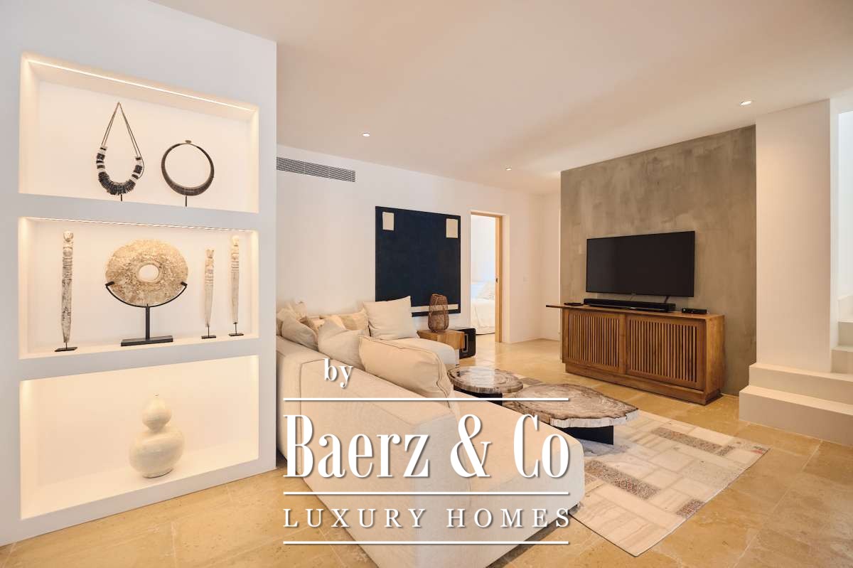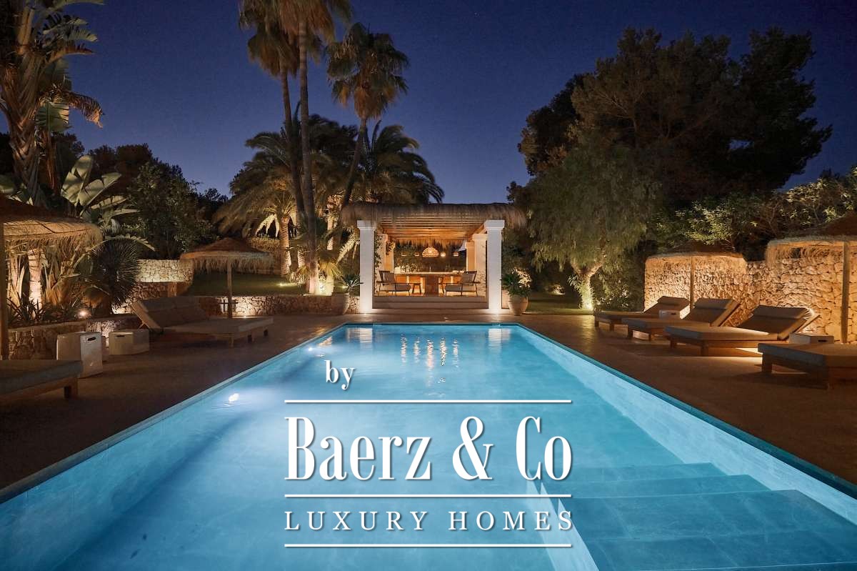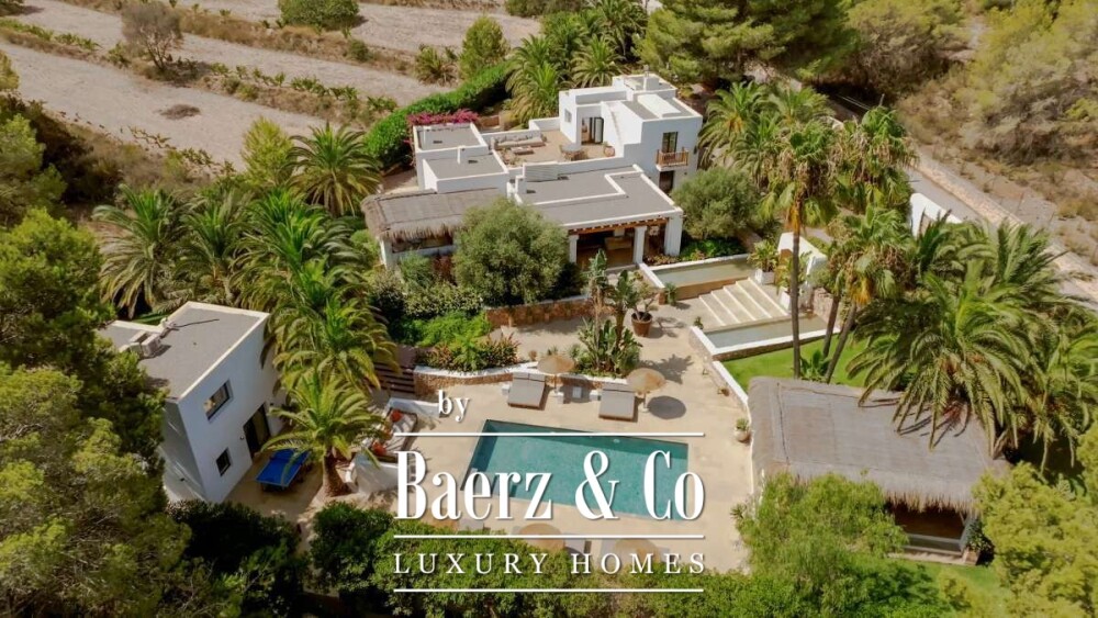 De omgevingDeze onberispelijke, moderne villa in rustieke-stijl staat op een afgelegen perceel in de buurt van San Josep aan de prachtige westkust van het eiland. Dit uitzonderlijke eigendom wordt omringd door weelderige bergen die een perfect privé-onderkomen biedt. Binnen een paar minuten bent u in het hart van het pittoreske San Josep, waar u al uw dagelijkse benodigdheden vindt, zoals supermarkten, lokale bars en restaurants. Binnen een straal van 10 kilometer kunt u enkele van de mooiste stranden van het eiland ontdekken. Ontspan met een adembenemend uitzicht op de glinsterende Middellandse Zee op het rustige strand van Es Torrent, waar ook het befaamde restaurant is gevestigd. Daarnaast kunt u de prachtige baai van Cala Jondal verkennen, bekend om zijn prestigieuze beach clubs zoals Blue Marlin, Jondal en Yemanja. Of ga naar Cala Sa Caleta, beroemd om zijn ongerepte, roestkleurige baai en uitstekende paella's. Op slechts 20 minuten rijden vindt u de levendige Ibiza-Stad met zijn jachthaven, lokale bars, restaurants en winkels. De luchthaven ligt op minder dan 15 minuten rijden, wat reizen gemakkelijk maakt. Ontdek de perfecte mix van een rustig eilandleven en moderne luxe in deze uitzonderlijke en rustieke villa.De villaDeze ruime woning bestaat uit een hoofdwoning en een vrijstaand gastenverblijf met in totaal 6 slaapkamers en 6 badkamers, met een bebouwde oppervlakte van 400m2 op een royaal perceel van 2794m2. Als u de villa nadert, leidt een indrukwekkende entree met een moderne vijver u naar de handgemaakte Balearen houten deuren. Stap binnen en ervaar een prachtig interieurontwerp, dat eigentijdse afwerkingen combineert met de warme, authentieke Balearische sfeer die kenmerkend is voor de beroemde Blakstad-stijl. De open plattegrond beslaat meerdere verdiepingen, te beginnen met een gezellige woonkamer compleet met een moderne open haard, uitzicht op de tuin, en een aparte loungehoek om televisie te kijken. De moderne, volledig uitgeruste keuken is de droom van een culinaire liefhebber, met luxe geïntegreerde branders op een grote marmeren keuken bar, ideaal om aan uw ochtendkoffie te nippen of om gezellig met vrienden te koken. De open eetkamer grenst aan de keuken, biedt plaats aan een grote eettafel en wordt gecompleteerd door een tweede moderne open haard, die het decor vormt voor gezellige familiemaaltijden, elegante diners of leuke spelletjesavonden. Verder op de begane grond vindt u 2 slaapkamers, een met een tweepersoonsbed en een met twee eenpersoonsbedden. Op de eerste verdieping vindt u de master slaapkamer, met een ruime en-suite badkamer en toegang tot een adembenemend dakterras. Op de begane grond bevinden zich twee slaapkamers, elk met een eigen badkamer en toegang tot het terras, waarbij de derde slaapkamer op de eerste verdieping een en-suite badkamer bezit. Het vrijstaande gastenverblijf garandeert volledige privacy en comfort voor bezoekers, en biedt drie extra slaapkamers. Extra voorzieningen zijn onder andere een Sonos audiosysteem, WiFi, een alarmsysteem, airconditioning en verwarming.De buitenruimtesDit prachtige huis is perfect voor buitenvermaak in volledige privacy. Zo beschikt het over een groot, spa-achtig zwembad, meerdere patio's en eetgedeeltes in de buitenlucht, een buitenkeuken, een barbecueplaats en een geweldig dakterras. Wanneer u vanuit de woonkamer naar buiten stapt, ontdekt u een prachtig overdekt terras, compleet met eettafel, buitenkeuken, barbecue en een ruime geïntegreerde U-vormige loungebank. Deze uitnodigende ruimte is perfect voor grote sociale bijeenkomsten en het creëren van onvergetelijke herinneringen. De grote en zorgvuldig onderhouden tuin beslaat een indrukwekkende 2794m2, compleet met tropische palmbomen, natuurstenen paden en een ontspannend zwembad omringd door 12 ligbedden. Daarnaast is er een tweede buitenkeuken en een eethoek in de buitenlucht die plaats biedt aan maximaal 12 gasten, ideaal voor diners in de buitenlucht en zomerse barbecues. Bovendien heeft het huis een geweldig dakterras met spectaculair uitzicht over de weelderige omgeving, en vormt het een serene achtergrond voor elke gelegenheid tijdens een zonsondergang of onder een sterrenhemel. Er is voldoende parkeergelegenheid op het terrein. Ervaar de ultieme luxe binnen- en buiten leefervaring in dit uitzonderlijke huis, waar elk detail is ontworpen voor comfort, luxe en entertainment in een bohemian chique levensstijl.