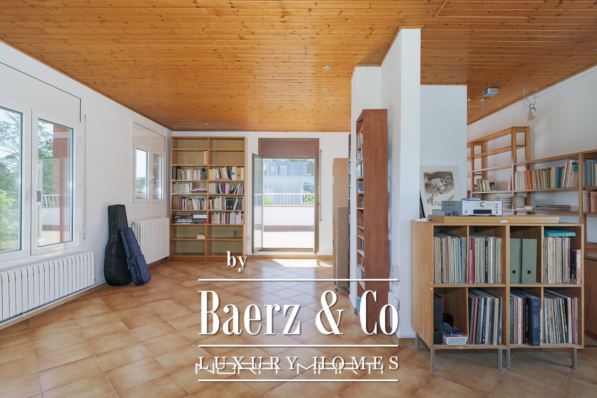 Woning in Sant Cugat biedt 375 m² zorgvuldig ingedeelde leefruimte op een perceel van 620 m², op slechts enkele minuten lopen van station Valldoreix. Deze woning combineert verfijnd design met privacy, met een gevel in zeilvorm die uitnodigt tot zonlicht en zicht biedt op de aangelegde tuin en het zwembad. De begane grond van 120 m² omvat een garage van 40 m² met directe toegang tot de hal, die leidt naar een royale woon- en eetkamer, een keuken gericht op het dagelijkse ritme, een praktische was- en strijkruimte, een aparte werkkamer en een complete badkamer.