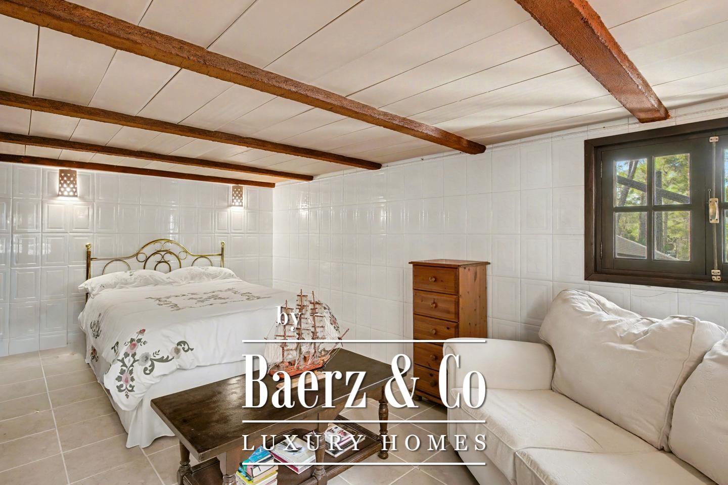 On a gentle hillside surrounded by Mediterranean woodland, this rustic finca, built in the 1980s and lovingly maintained by its owners, offers a sense of authenticity and serenity — a place where nature and the blue of the sea blend on the horizon.