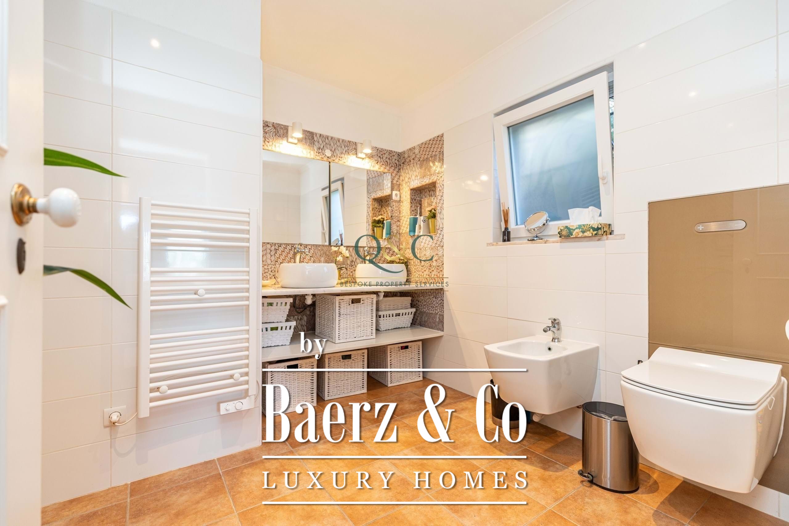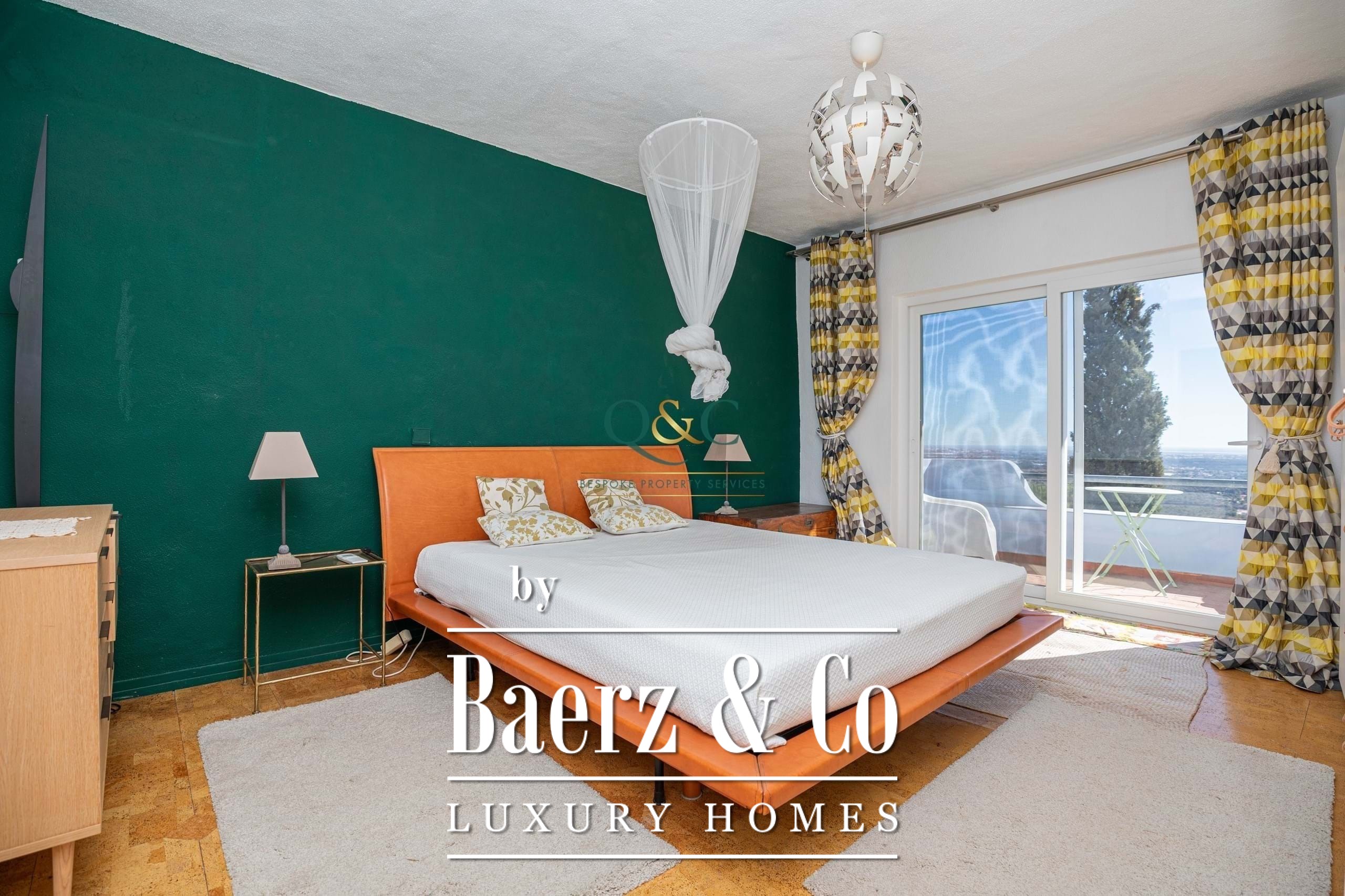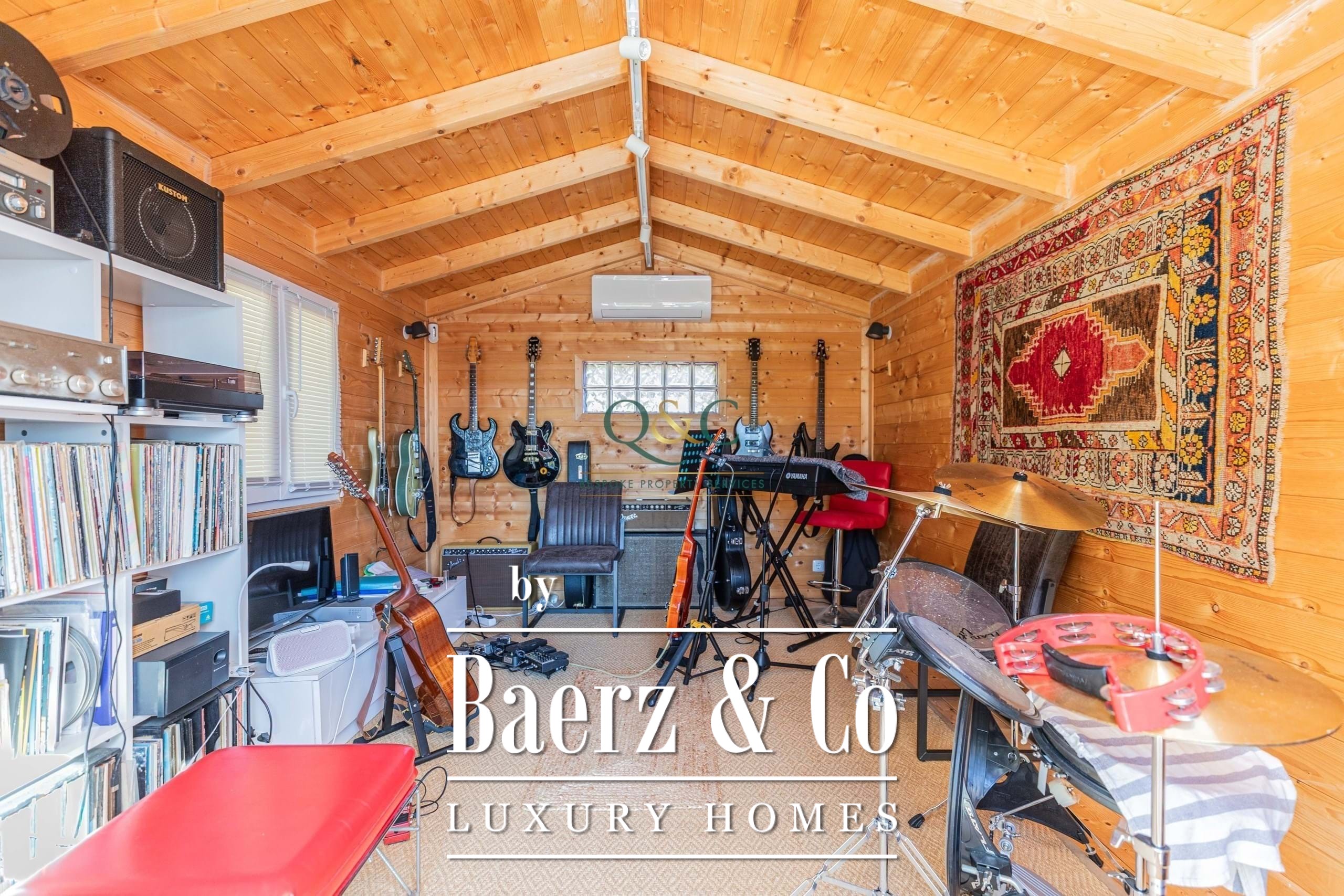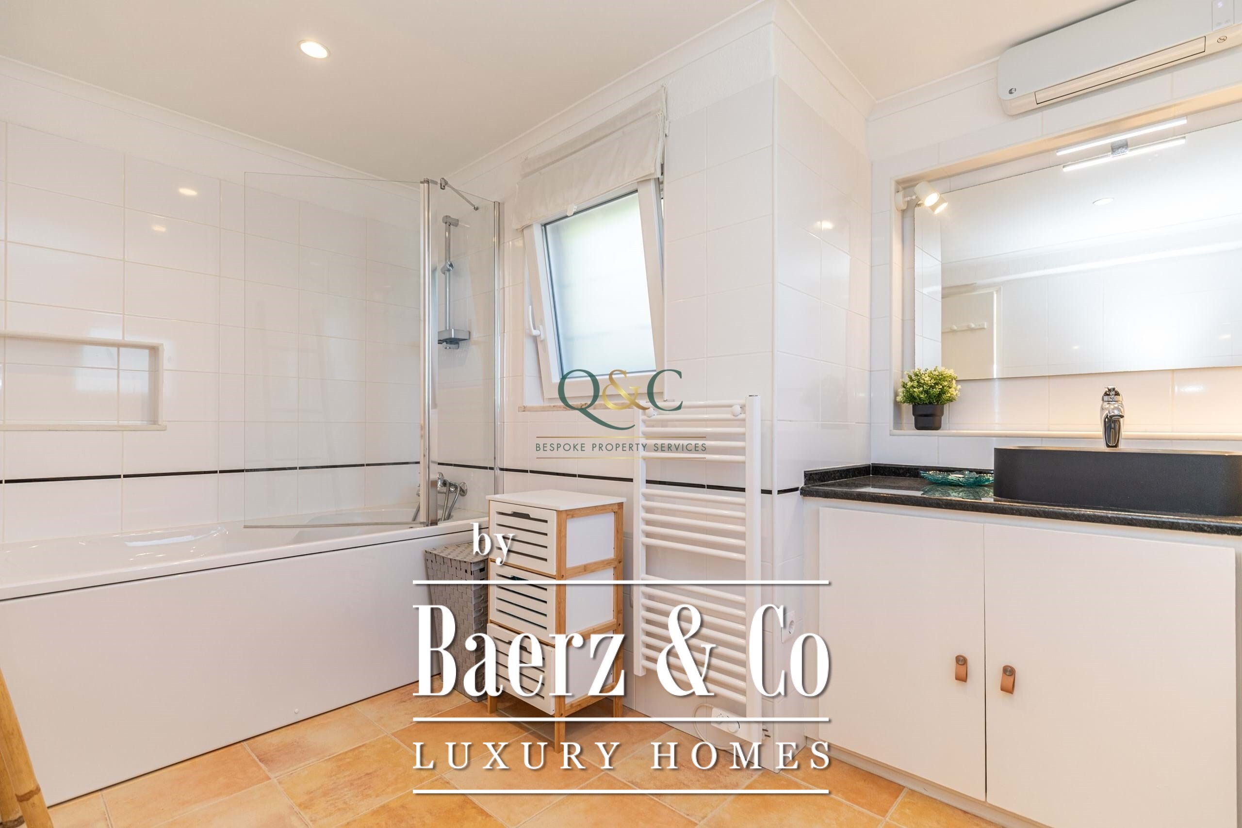 Twee ruime slaapkamers, elk met vernieuwde badkamer, bieden privacy en vrij uitzicht. De master suite opent rechtstreeks naar het terras, terwijl de tweede suite beschikt over een eigen balkon. Daarnaast is er een geïsoleerde houten studio, momenteel ingericht als muziekruimte, die flexibel te gebruiken is, evenals een zelfstandig appartement met eigen keuken en terras, ideaal voor gasten of als verhuurpotentieel.