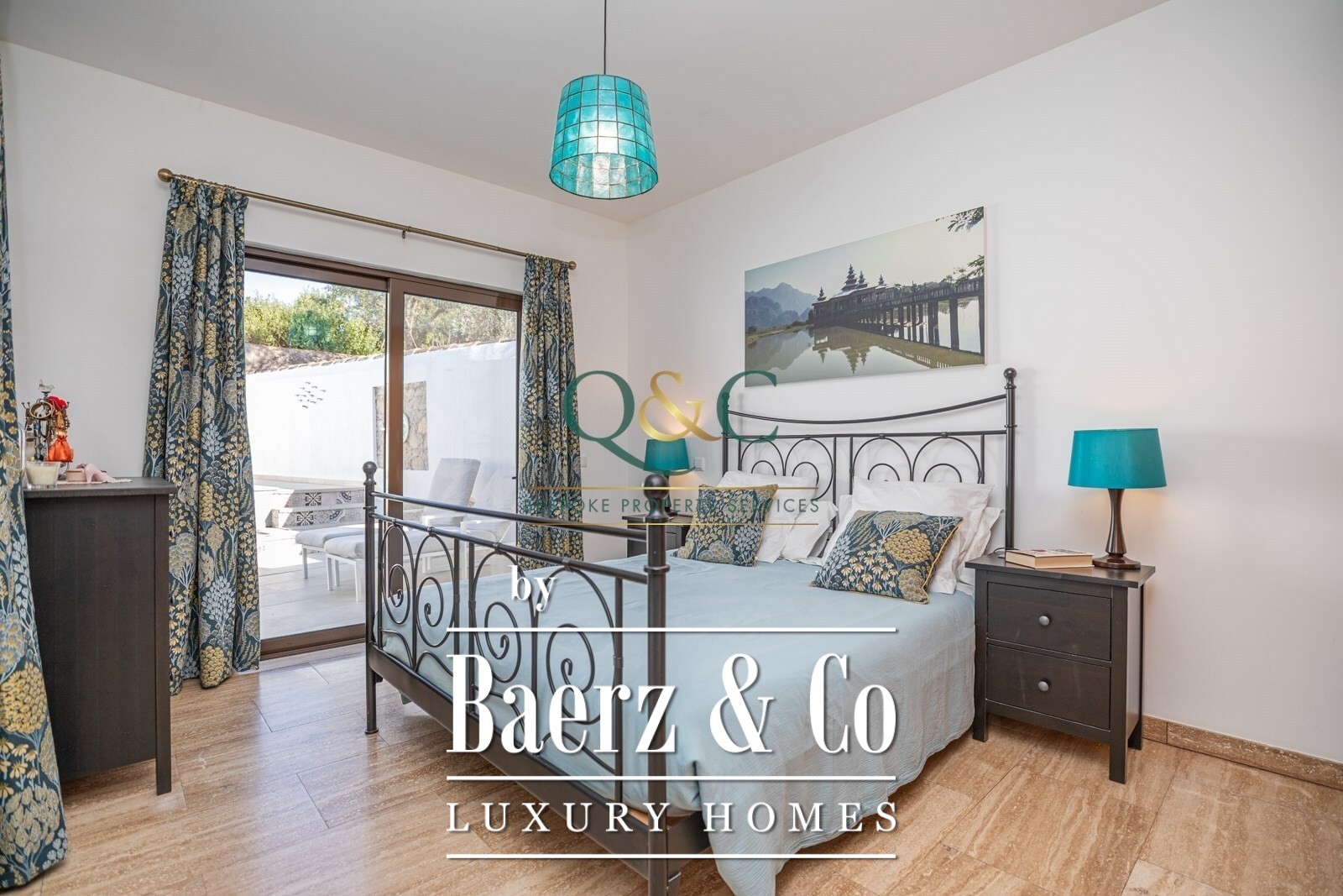 De achtertuin is volledig ommuurd en biedt alle privacy en een zonnige setting voor het verwarmde infinity zwembad van 8 x 3 m, aangevuld met overdekte buitendinerplekken. Het volwassen, onderhoudsarme landschap en de calçada-paden verbinden de buitenruimtes tot één geheel. Voorzieningen als Daikin airconditioning, elektrische vloerverwarming, zonneboiler, zonnepanelen met een opgewekt vermogen van 6,5 kW en een 12 kW batterijsysteem, alsmede aansluiting op het waterleidingnet, verhogen het wooncomfort en de efficiëntie.