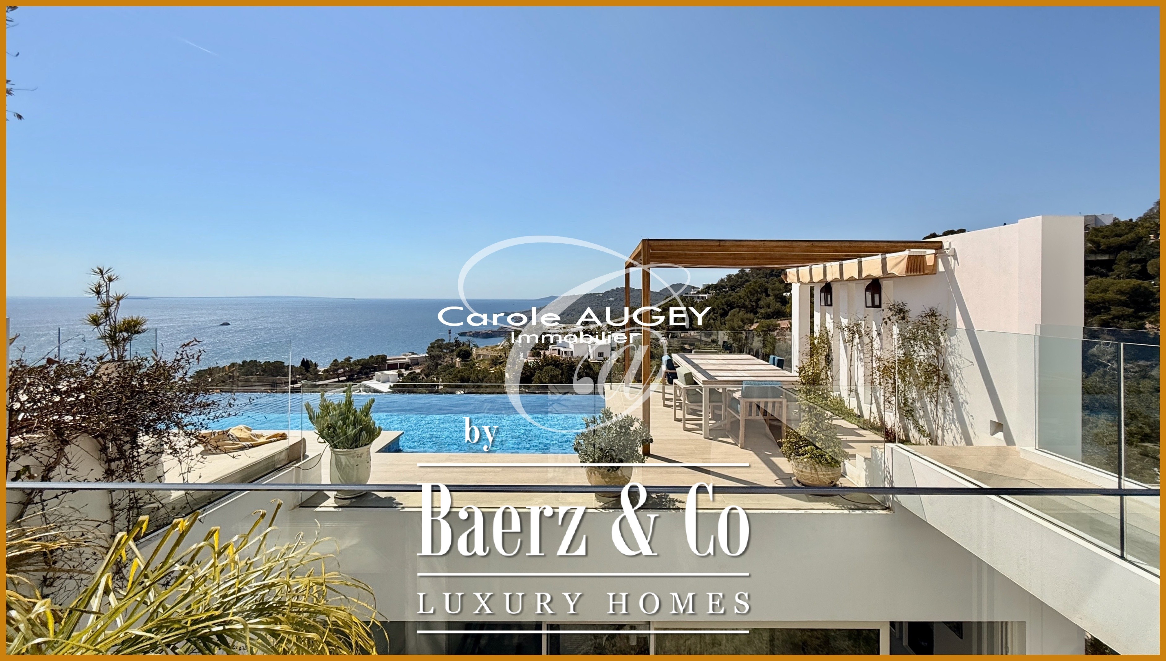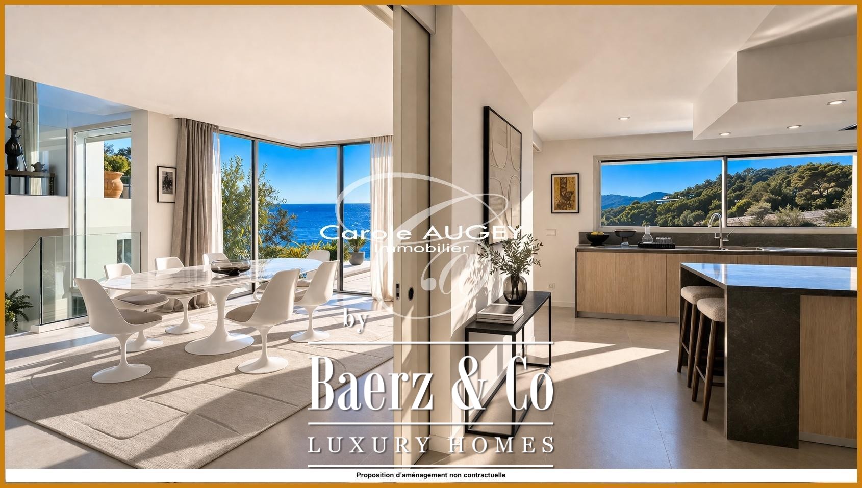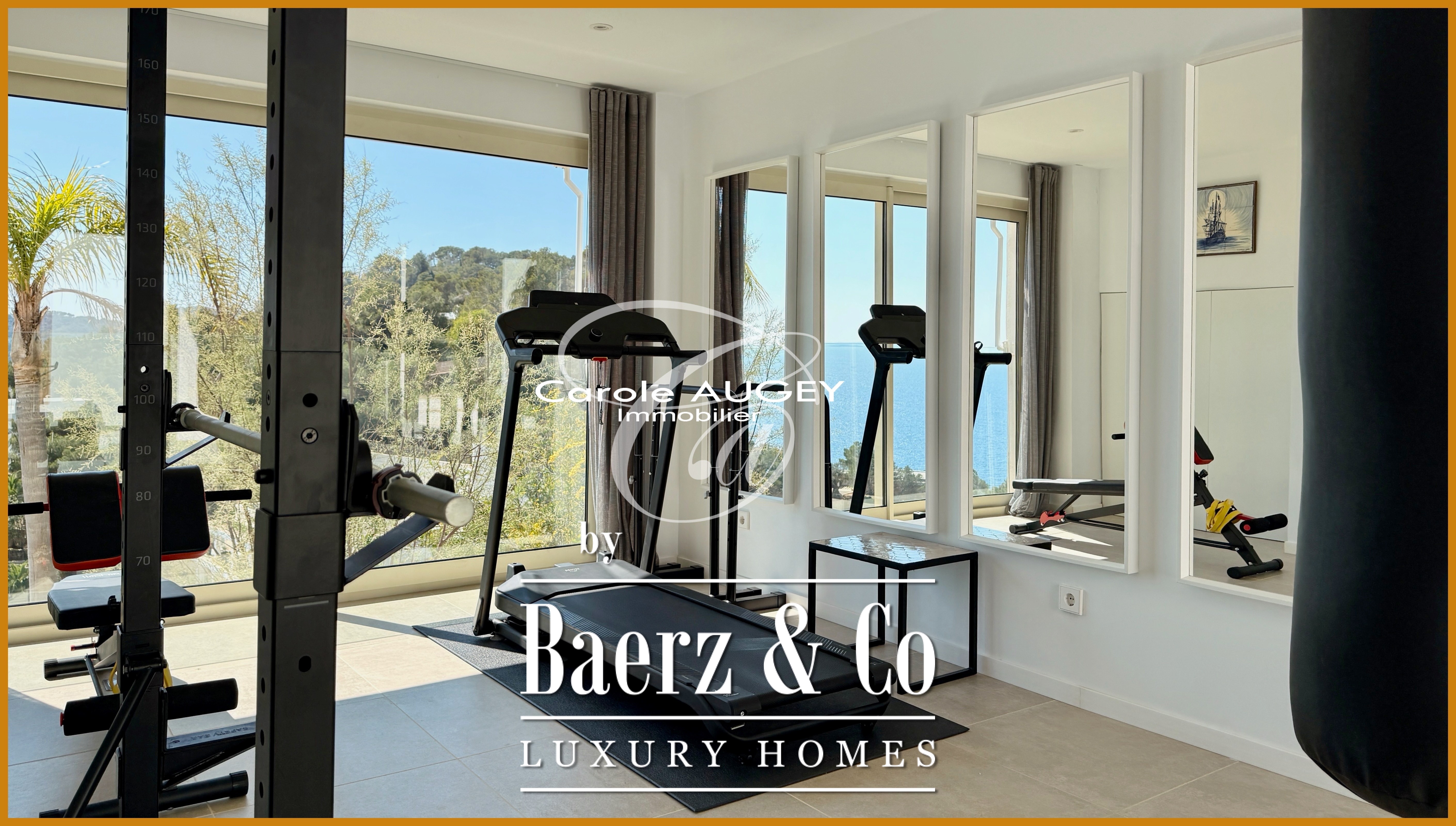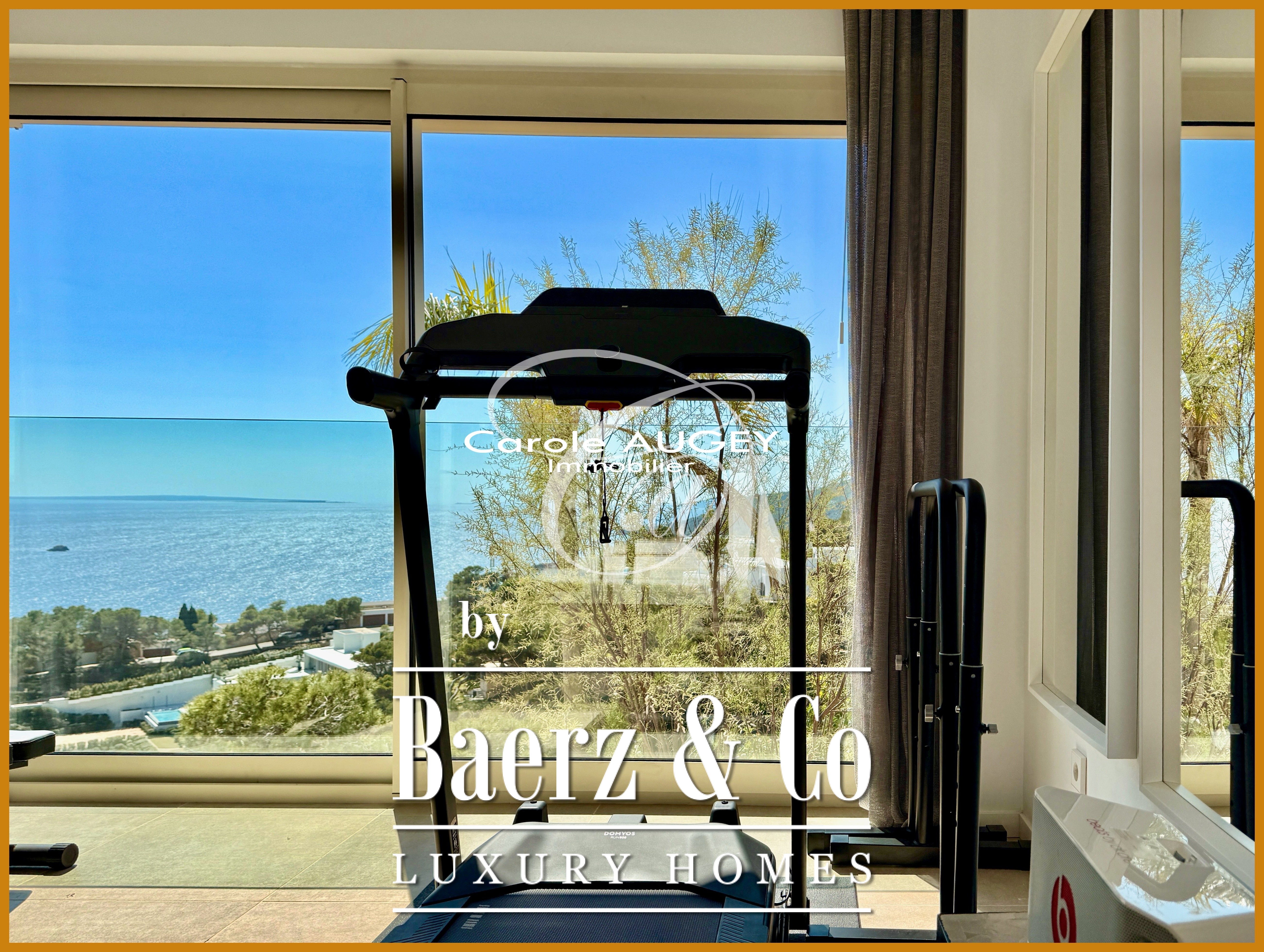 Buiten nodigen een infinity pool, panoramische terrassen, een eetgedeelte in de open lucht en een sculpturale tuin ontworpen door een architect uit tot bezinning en ontspanning. De woning beschikt over twee onafhankelijke toegangen, waarvan één met lift, een fitnessruimte met zeezicht en omkeerbare airconditioning. Deze volledig gemeubileerde, instapklare villa, gekenmerkt door hoogwaardige afwerkingen en indrukwekkende vergezichten, biedt een uiterst elegante ervaring waarbij de zee dagelijks als vitale aanwezigheid voelbaar is.