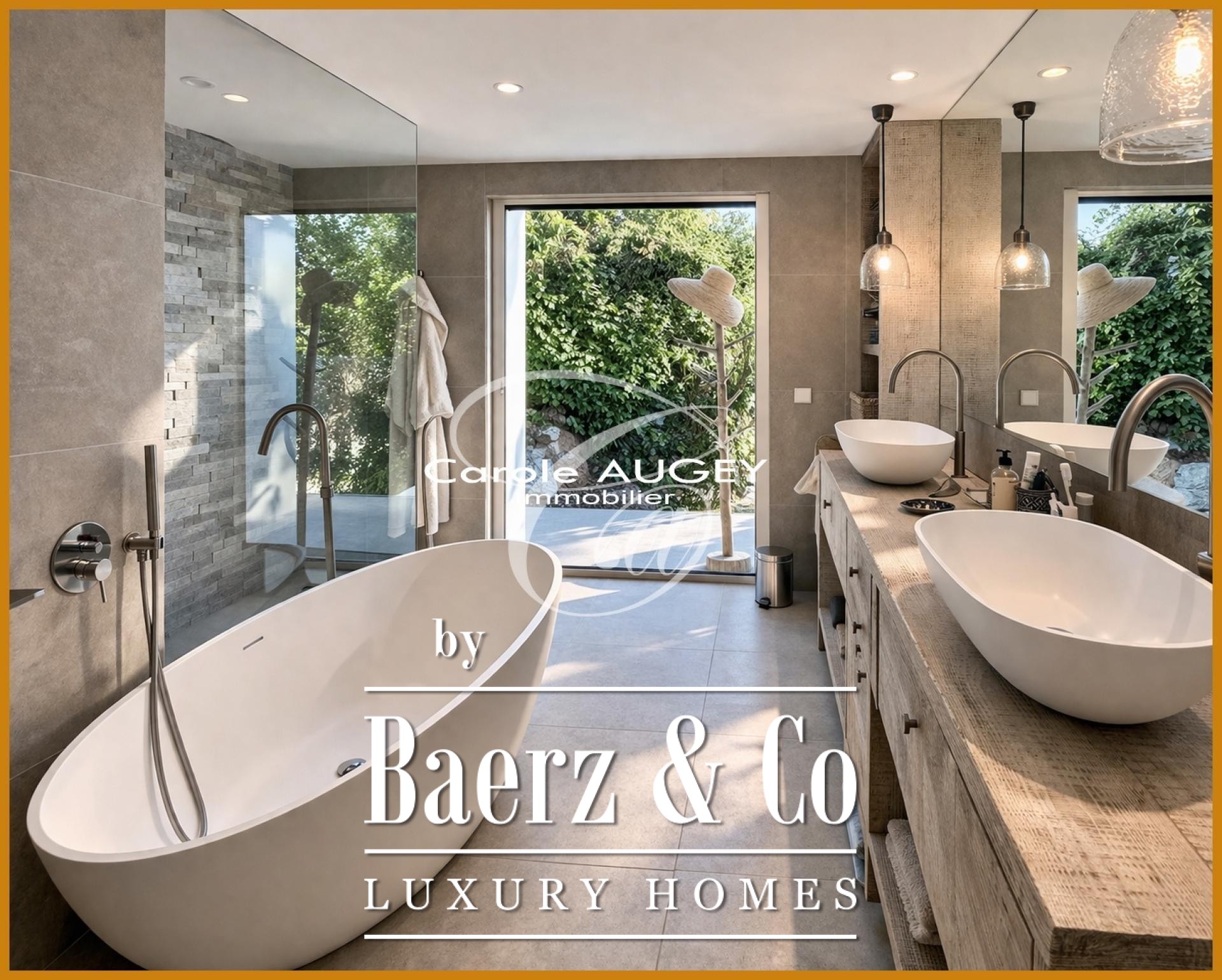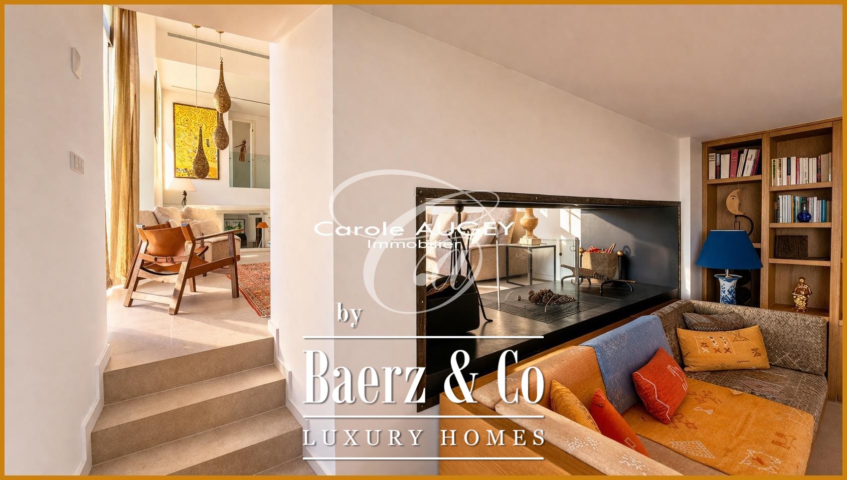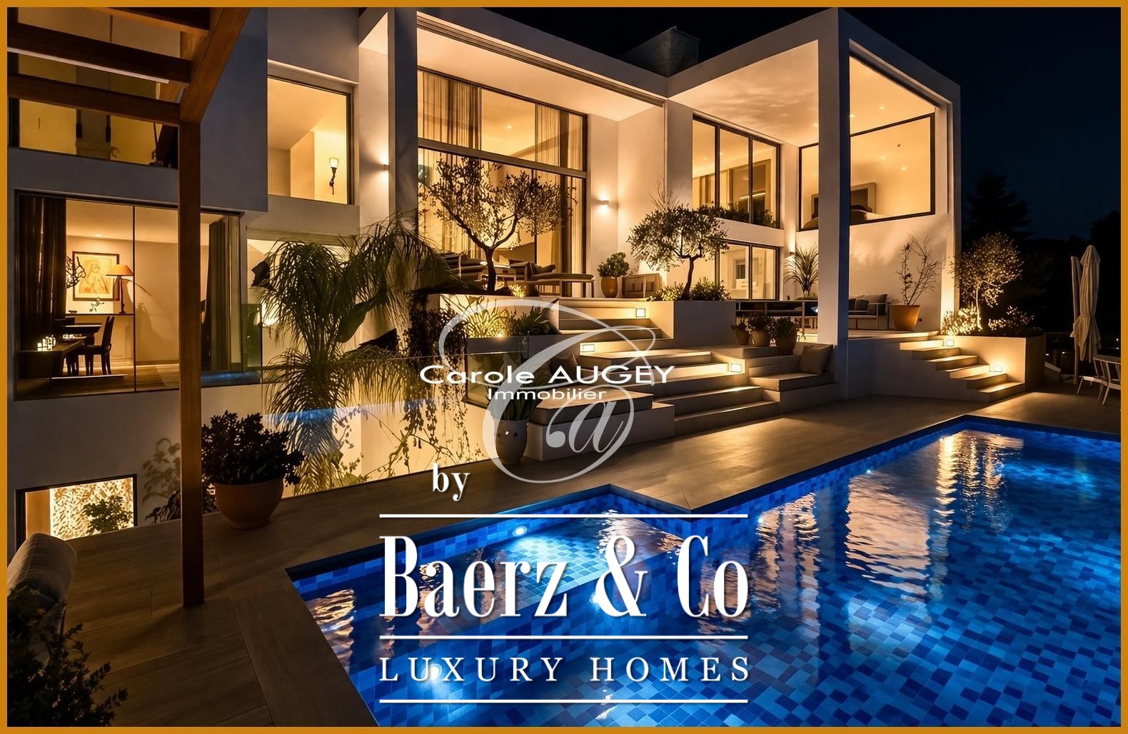 Volledig herbouwd en voltooid in 2023, onthult de villa een verfijnd, eigentijds ontwerp dat zich uitstrekt over 345 m² leefruimte, met een totaal bebouwd oppervlak van ruim 400 m² op een perceel van 1.398 m². Vijf suites, waaronder een studio met aparte toegang, bieden privacy en een moeiteloze doorstroom. Vloerhoge ramen, royale terrassen en een imposante XXL dubbelzijdige haard vormen het hart van de hoofdwoonruimte, terwijl de volledig uitgeruste keuken naadloos aansluit op de buitenruimtes.