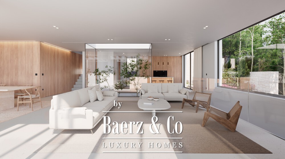 Architectonisch combineert de villa lokale natuursteen en eikenhout met witte kalkmortel, een subtiele verwijzing naar de Ibiziaanse traditie in een modern jasje. Vloer-tot-plafondramen en dubbel glas laten het zee- en stadszicht samen met het natuurlijke licht volledig tot hun recht komen, waardoor de serene, open ruimtes ontstaan. Domotica, glasvezelinternet en aerothermische verwarming zorgen voor een moeiteloze leefomgeving.