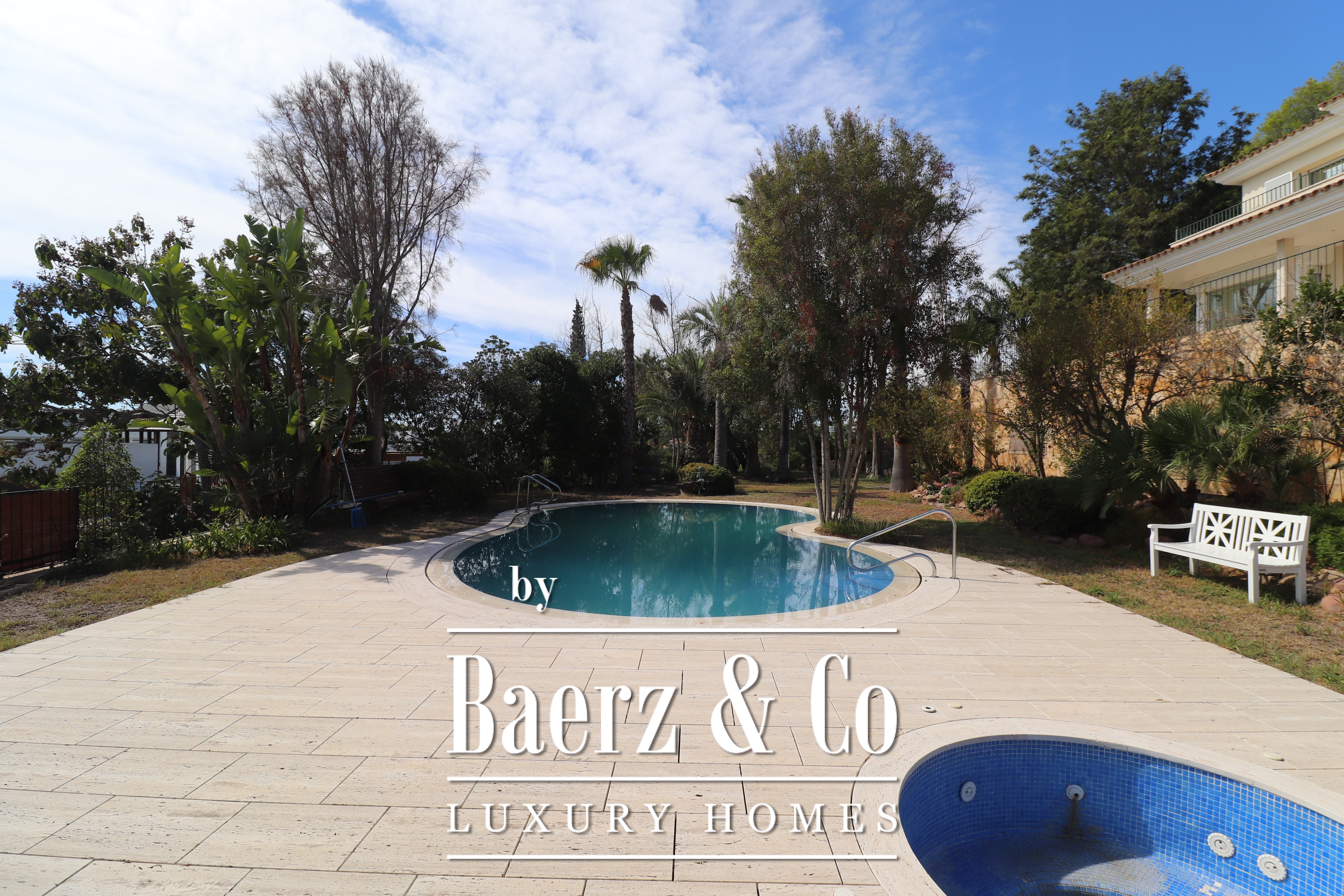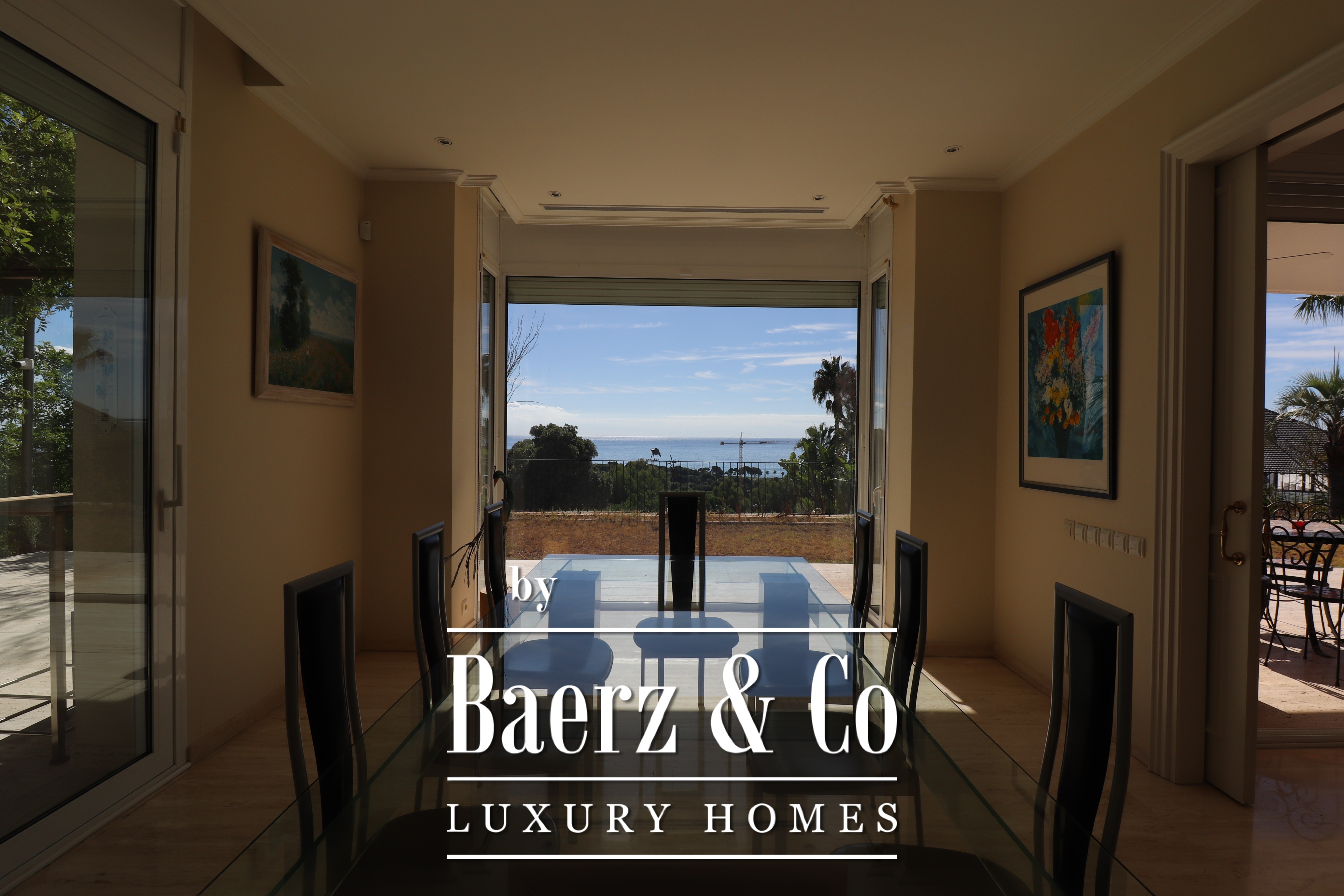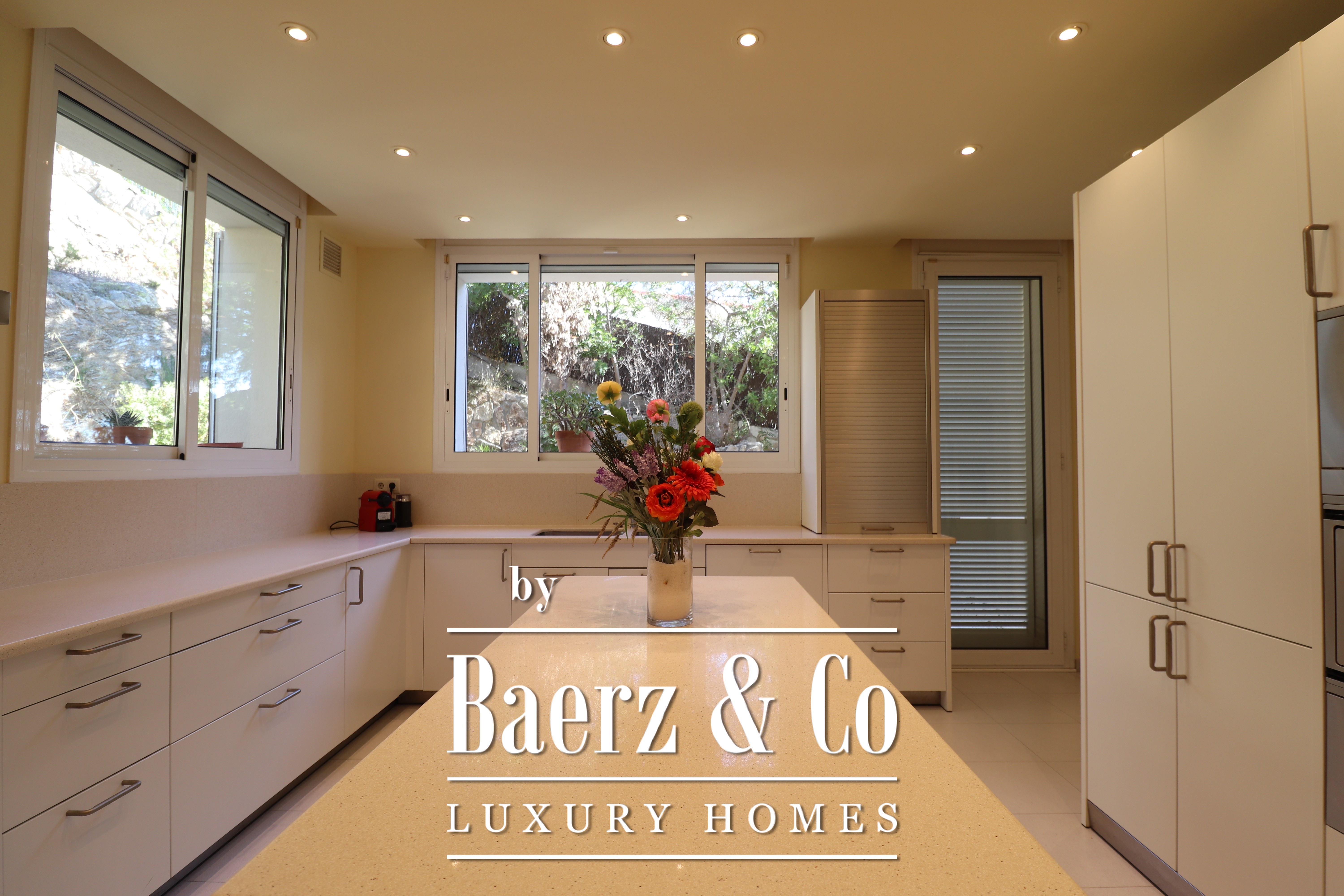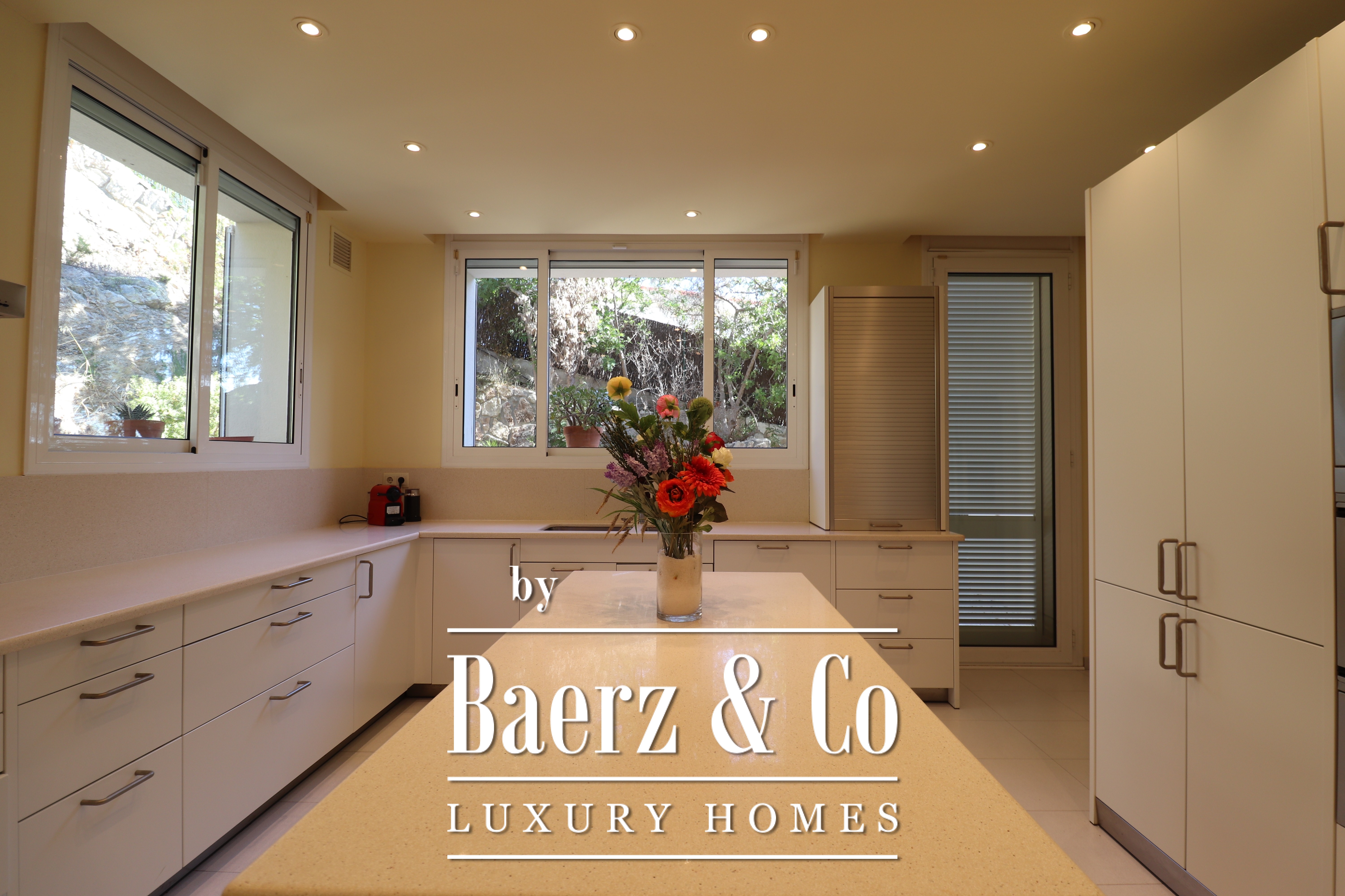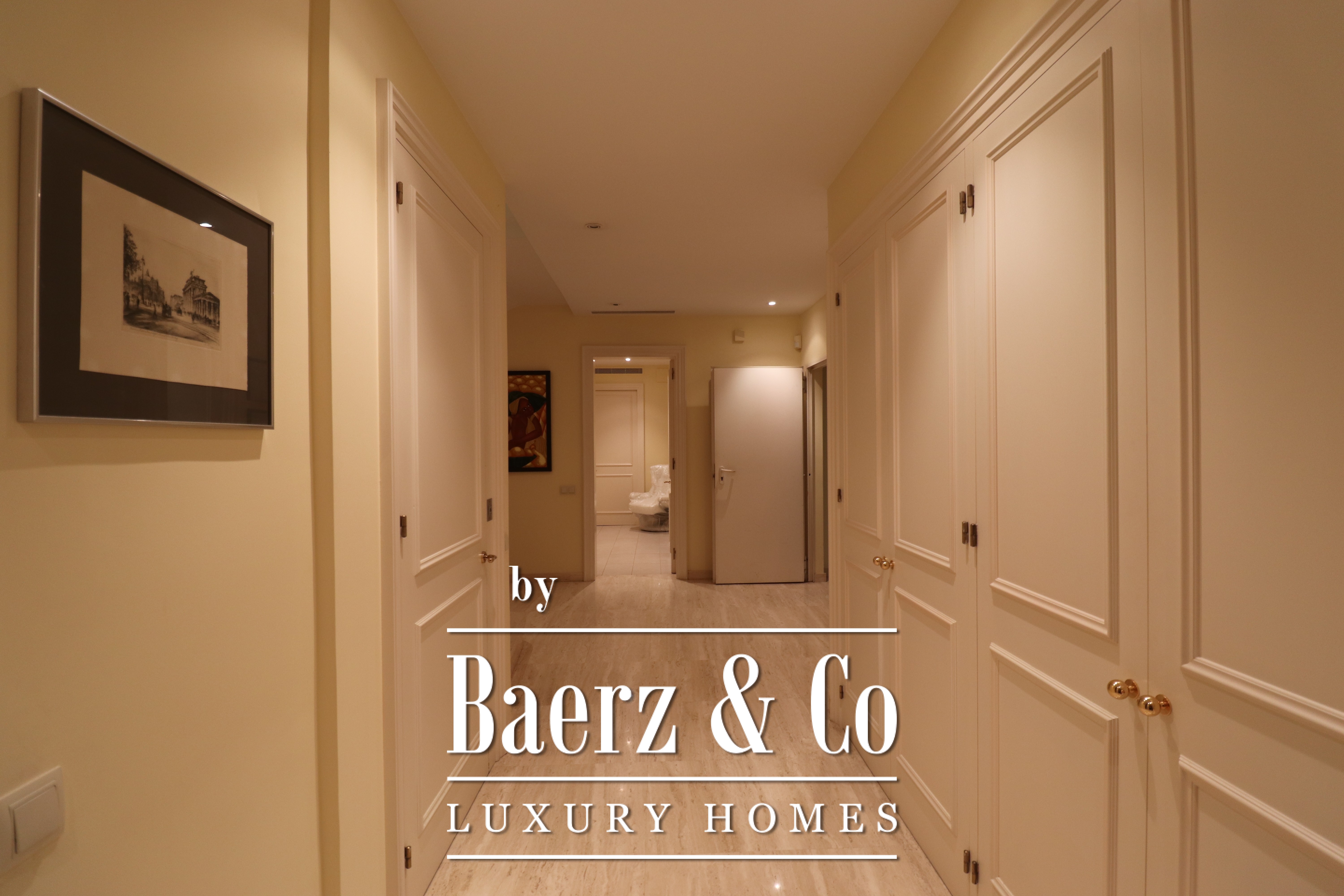 Ontworpen met oog voor discretie en comfort, spreidt de villa zich uit over drie verdiepingen, verbonden door een privé-lift. De hoofdverdieping begint met een stijlvolle entreehal en vloeit over in een open leefruimte met een salon en eetkamer, een mediaruimte, en een volledig uitgeruste keuken met aangrenzende bijkeuken en een dedicated kantoor. Vijf slaapkamers en acht badkamers bieden ruimte aan gezinsleven én grootschalig ontvangen.