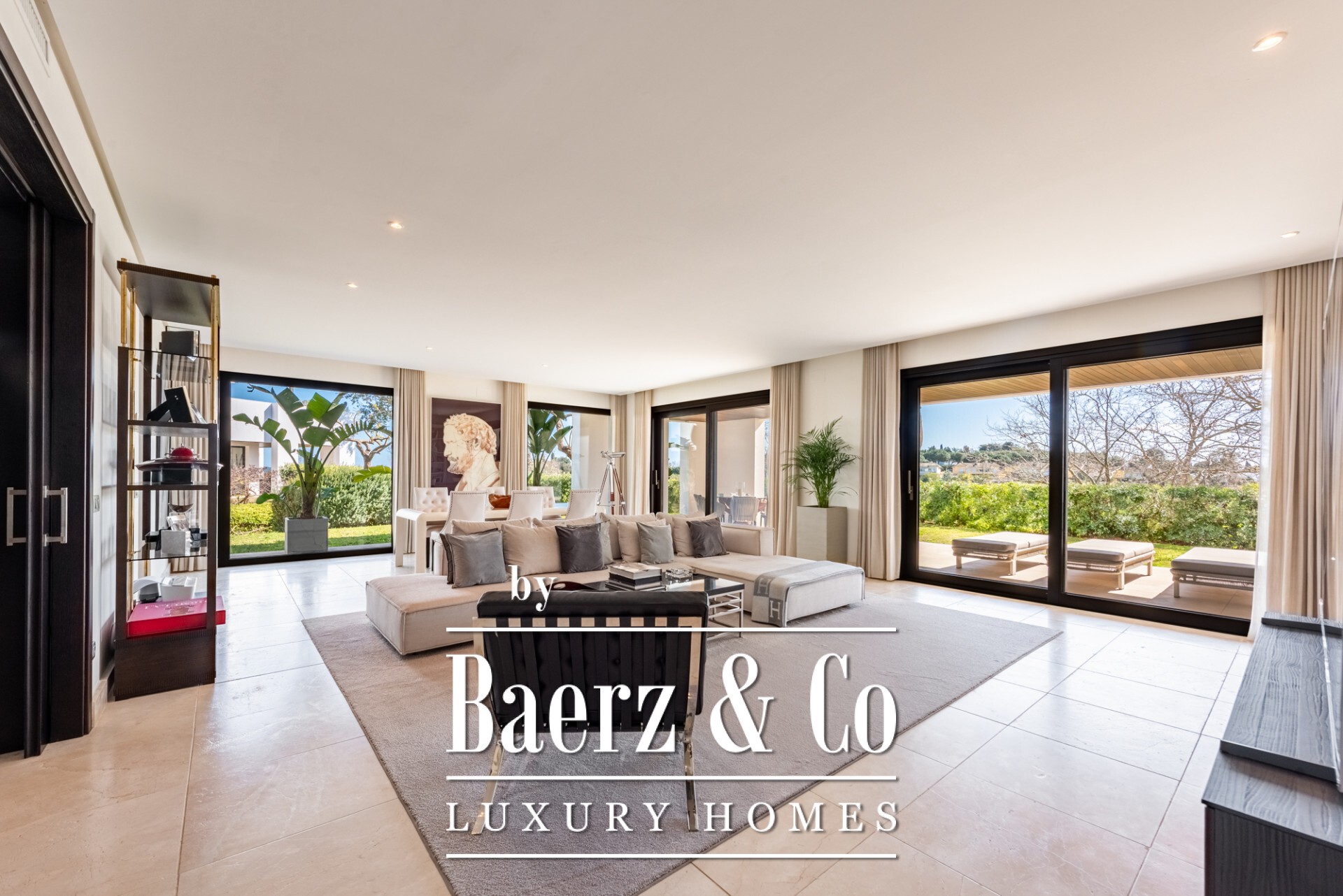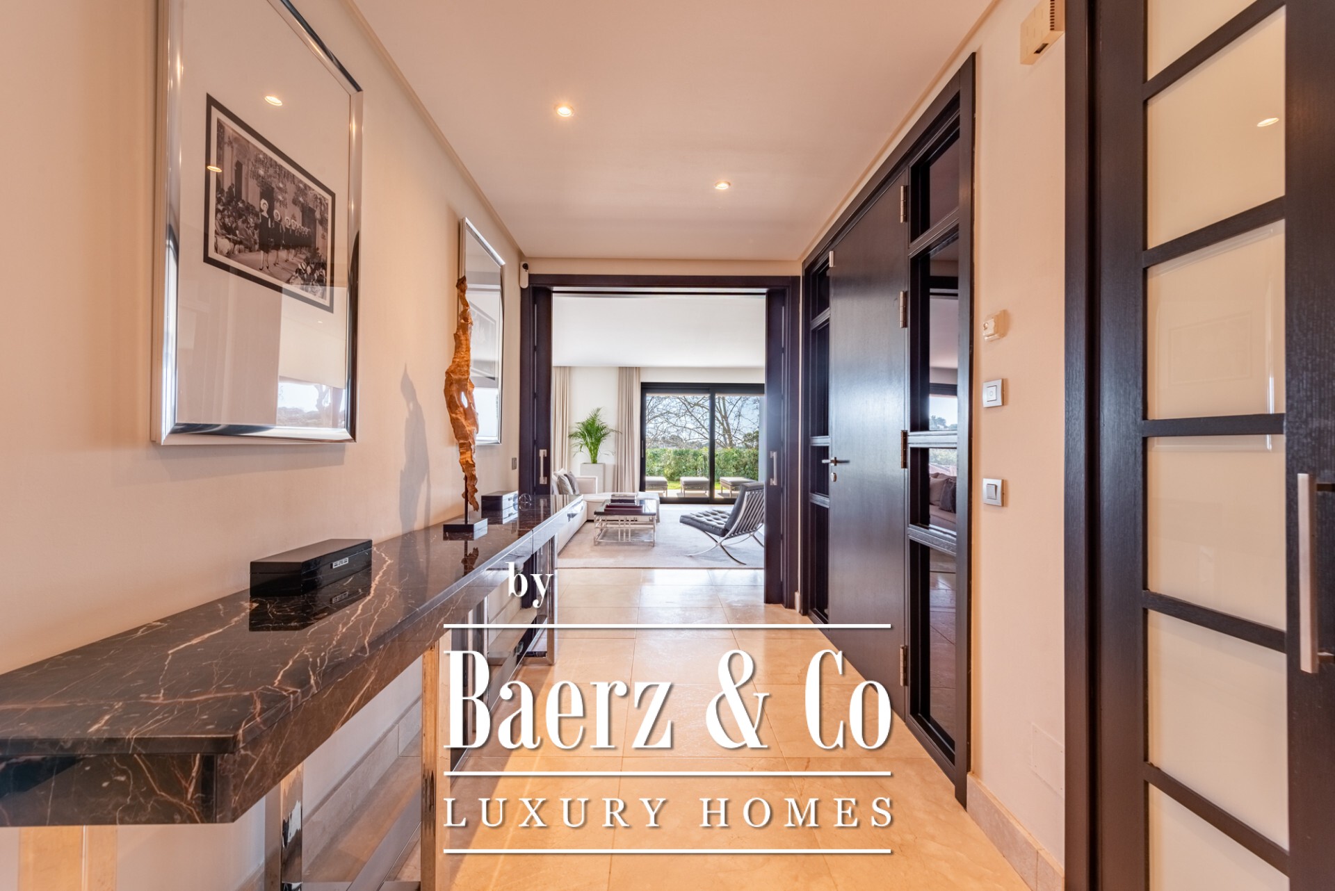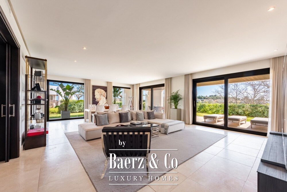 De residentie heeft een oppervlakte van 462 m² en beslaat een royaal beganegrondplan. Drie evenwichtige slaapkamers beschikken ieder over een eigen badkamer, terwijl de leefruimtes worden gekenmerkt door marmeren vloeren en zuidoostelijk licht. Een domoticasysteem, vloerverwarming en geavanceerde beveiliging worden gecombineerd met airconditioning, inbouwkasten en een volledig uitgeruste keuken, zodat comfort net zo essentieel is als design. Vanuit de belangrijkste kamers is er direct toegang tot de tuin, waardoor het woongevoel zich uitbreidt over 97 m² privéterras en tuin.