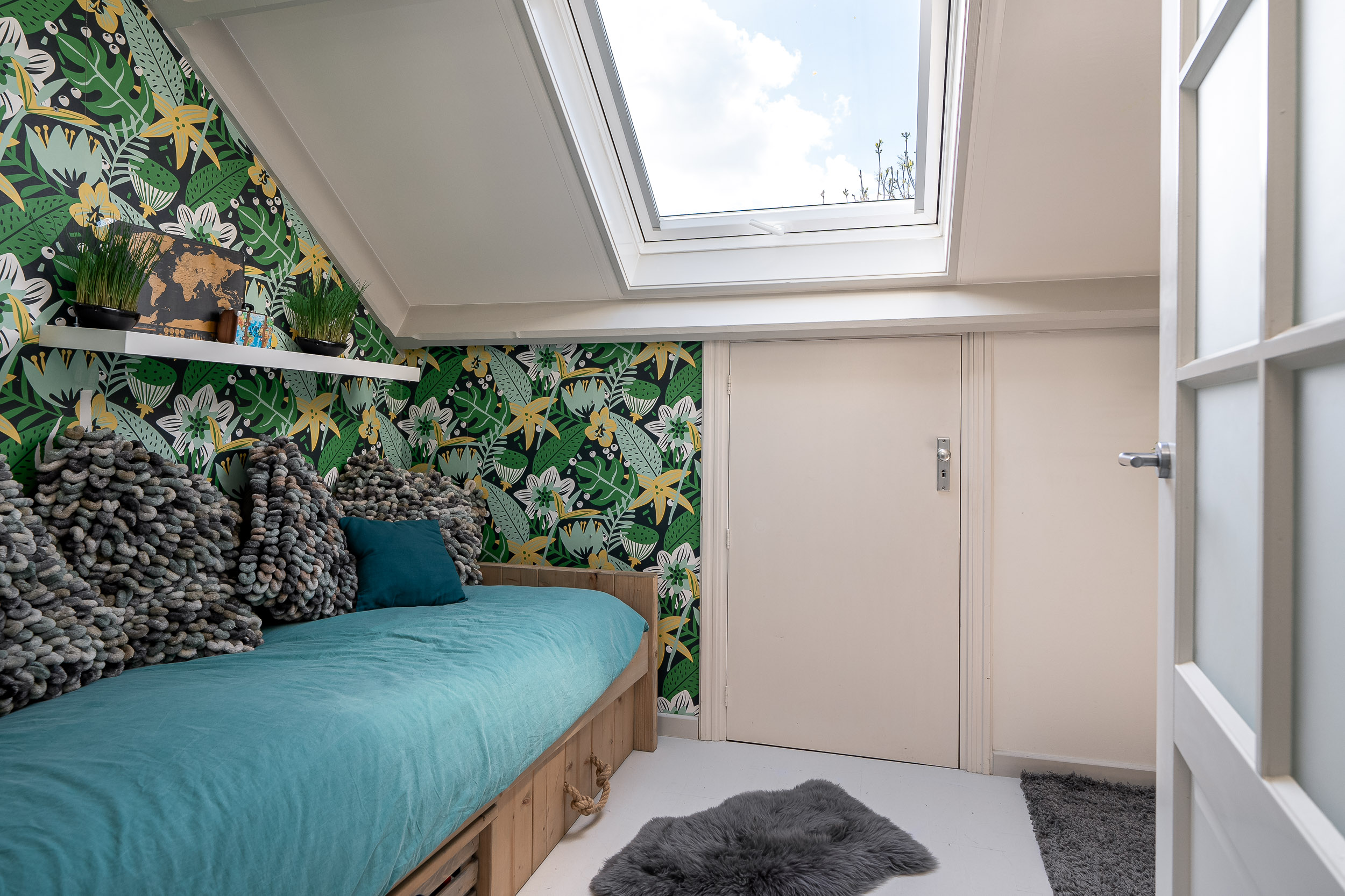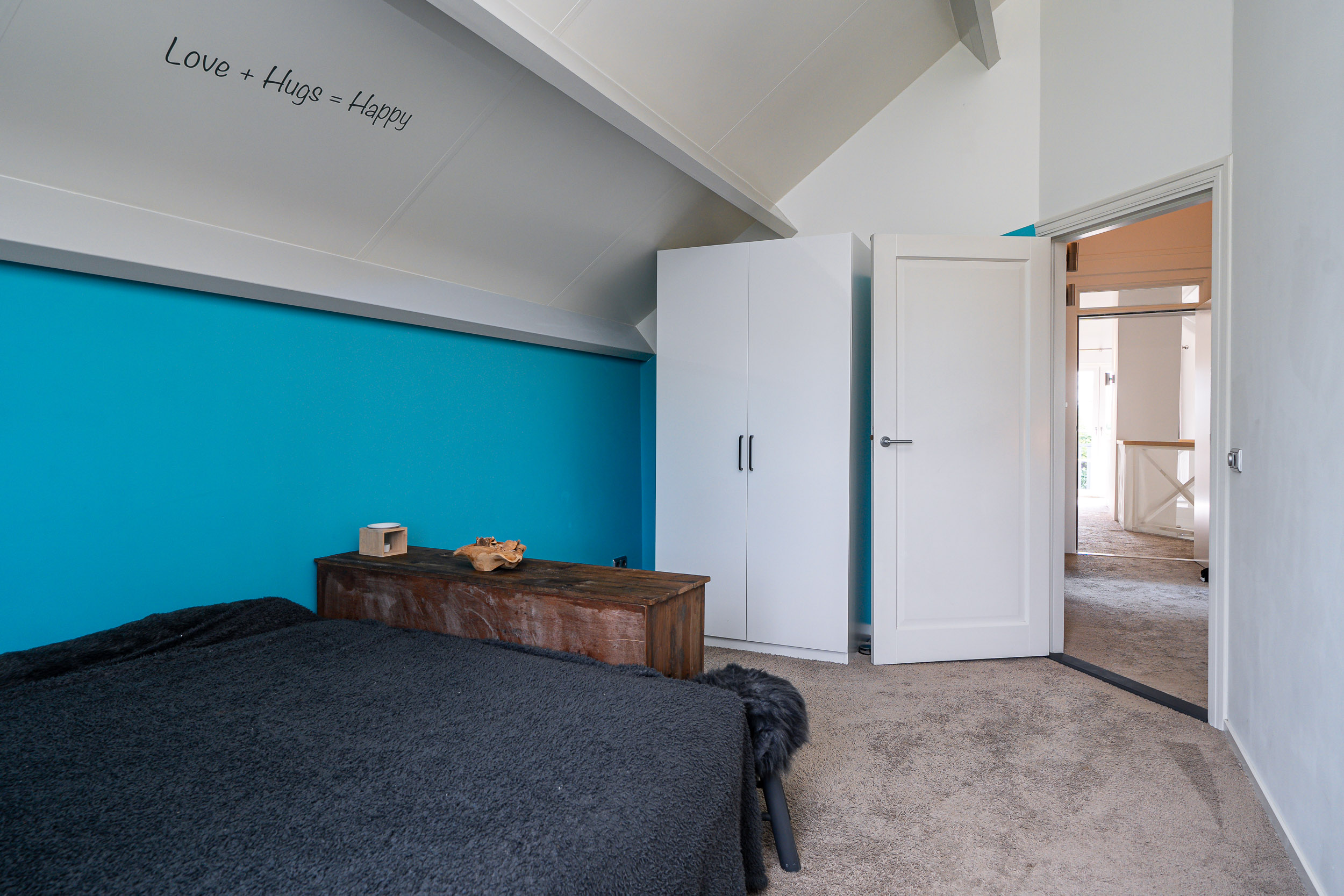 De overloop is afgesloten van de slaapvertrekken en badkamer middels een deur.