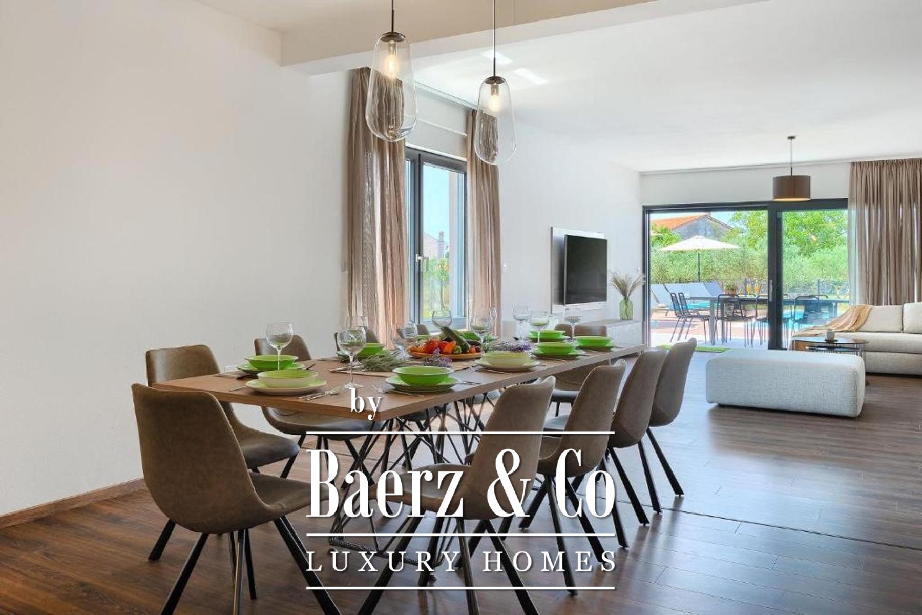 Moderne villa Svetvinčenat biedt een ingetogen samenspel van hedendaagse architectuur en het rustgevende ritme van Istrië. Deze woning omvat 272 m² woonoppervlak op een fraai aangelegd perceel van 846 m², een zeldzame kans voor wie ruimte en sereniteit zoekt op korte afstand van het hart van Svetvinčenat.