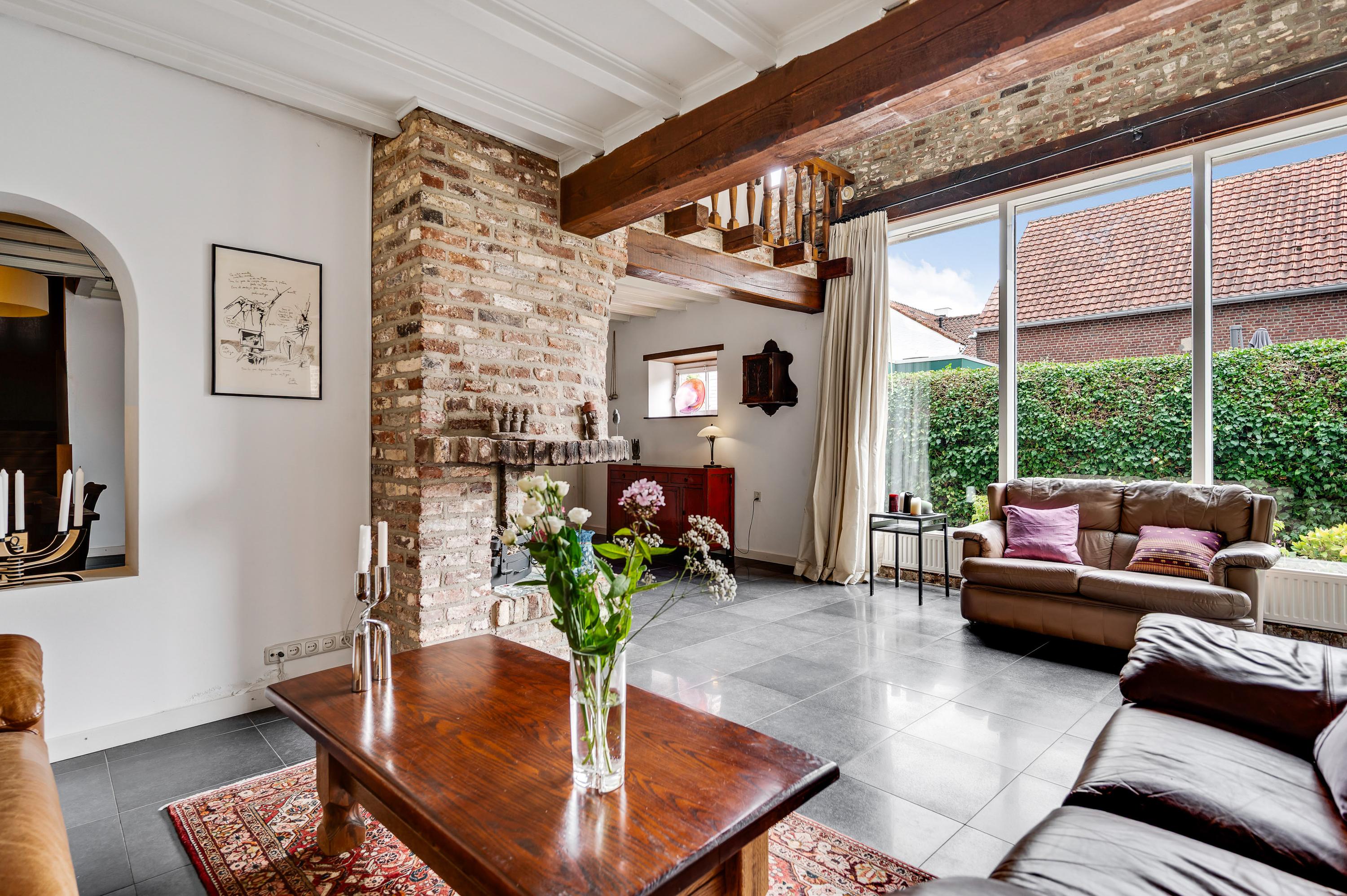 Gezellige zitkamer/verblijfsruimte (± 34 m²) met plankenvloer en open haard, een heerlijke plek om te ontspannen.
