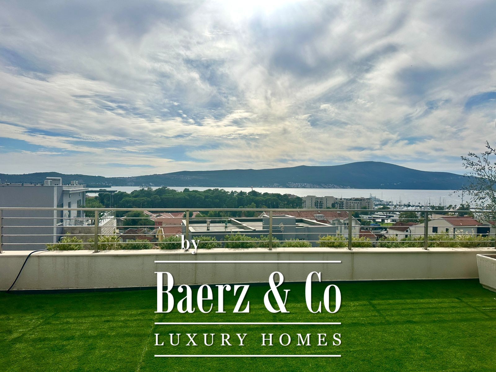 Structure of the apartment: hallway , living room with kitchen and dining table, 2 bedrooms, a bathroom, a terrace and a green terrace. The apartment itself has 62m2, while its green terrace has 42m2. It has a sea view and the view of the mountains that surround it. It is fully furnished and ready for moving in.