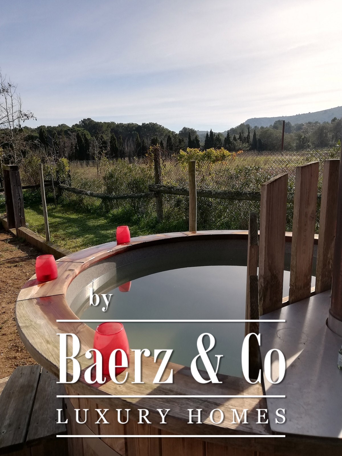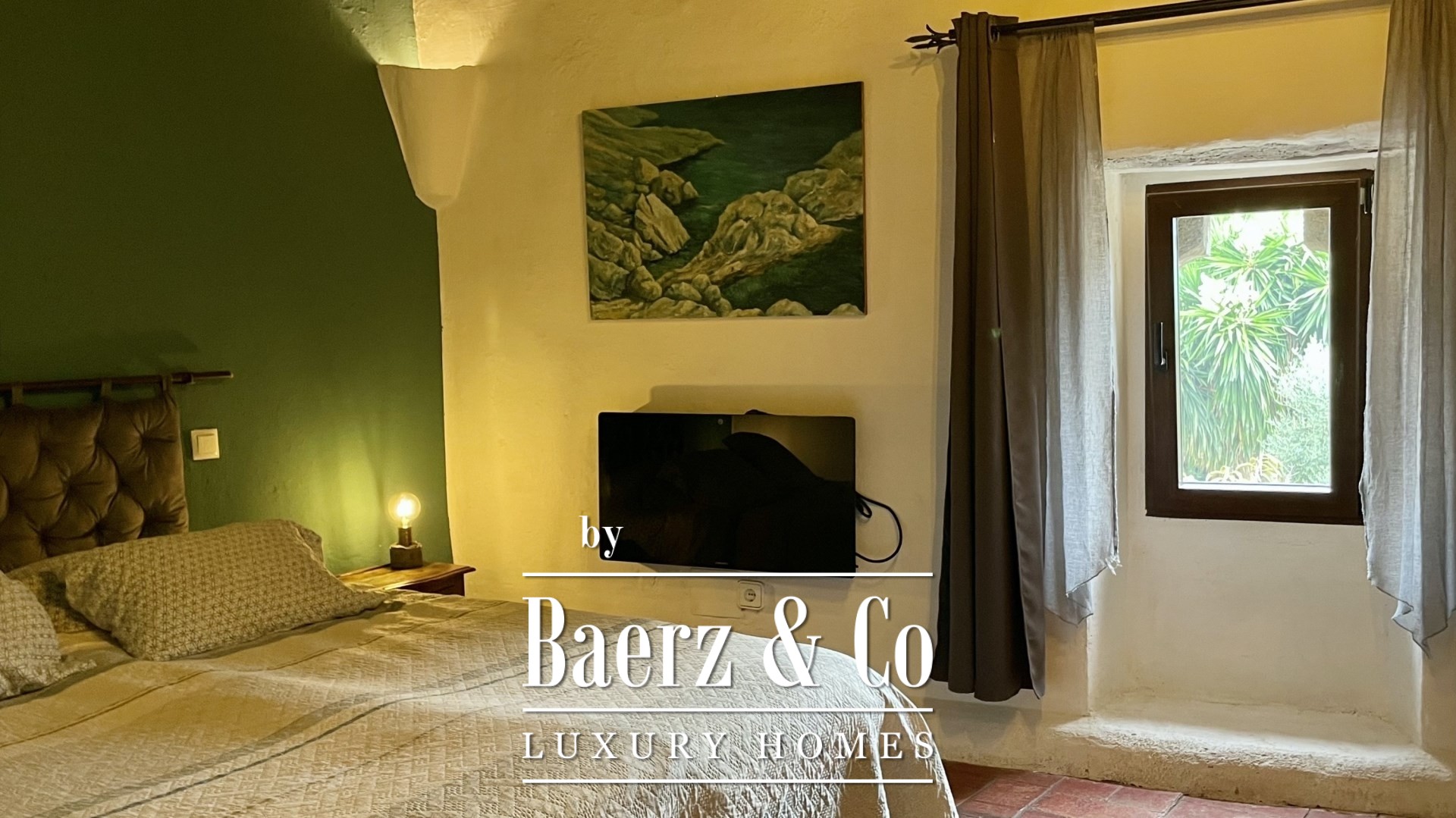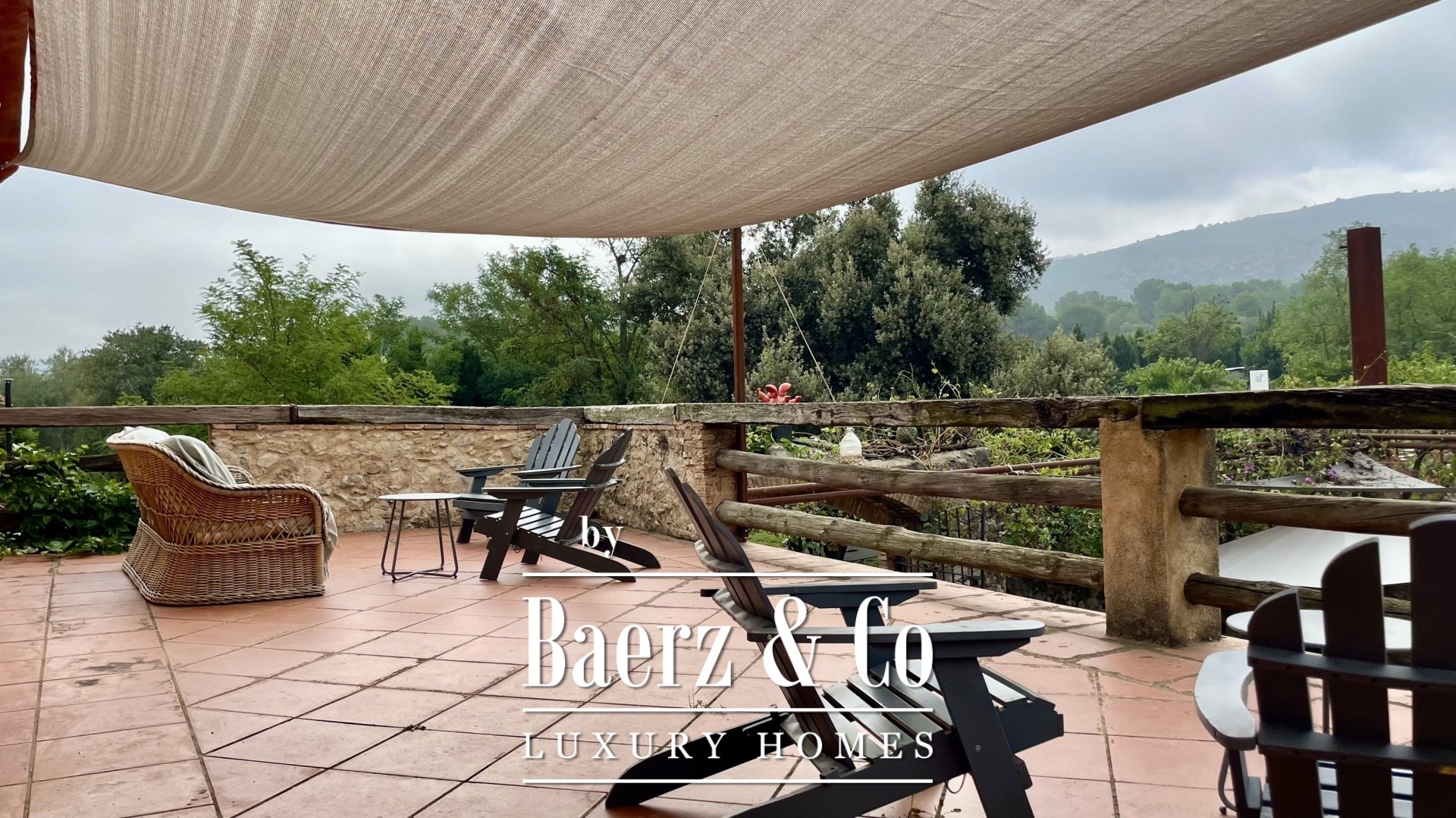 Twee smaakvol ontworpen bijgebouwen verruimen het woonconcept: een licht loft en een zelfstandig appartement met één slaapkamer, ideaal voor een onafhankelijk verblijf of toekomstige uitbreiding. Het buitenleven speelt zich af rond het zwembad en een jacuzzi, beide omgeven door volwassen mediterrane beplanting, met diverse schaduwrijke en zonovergoten terrassen die het landschap omlijsten.