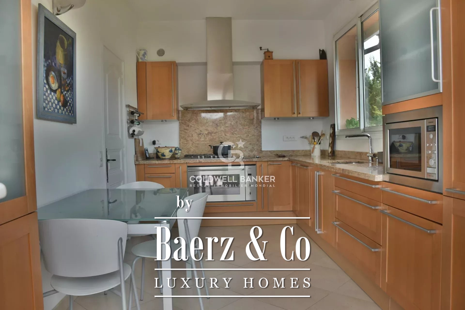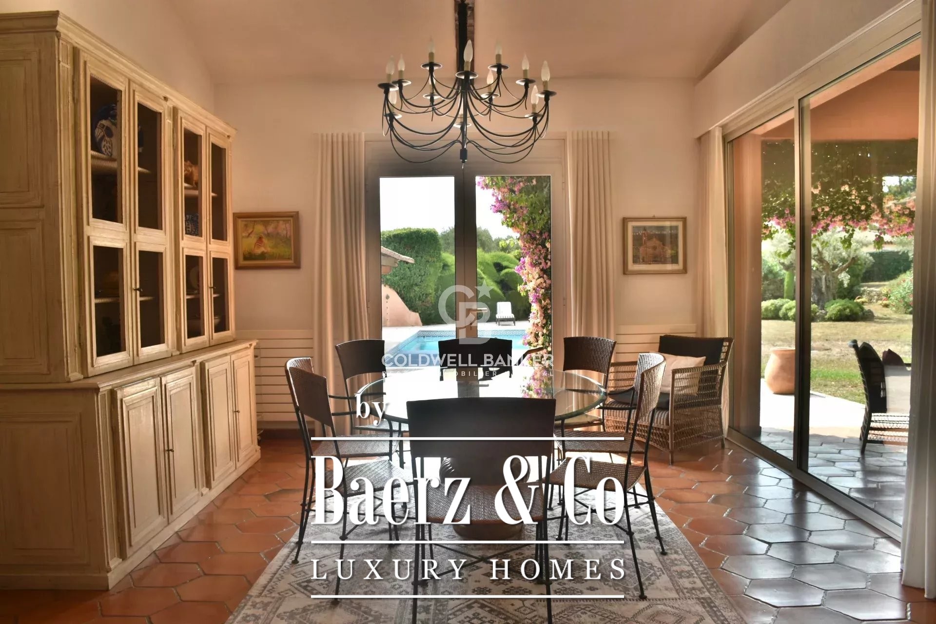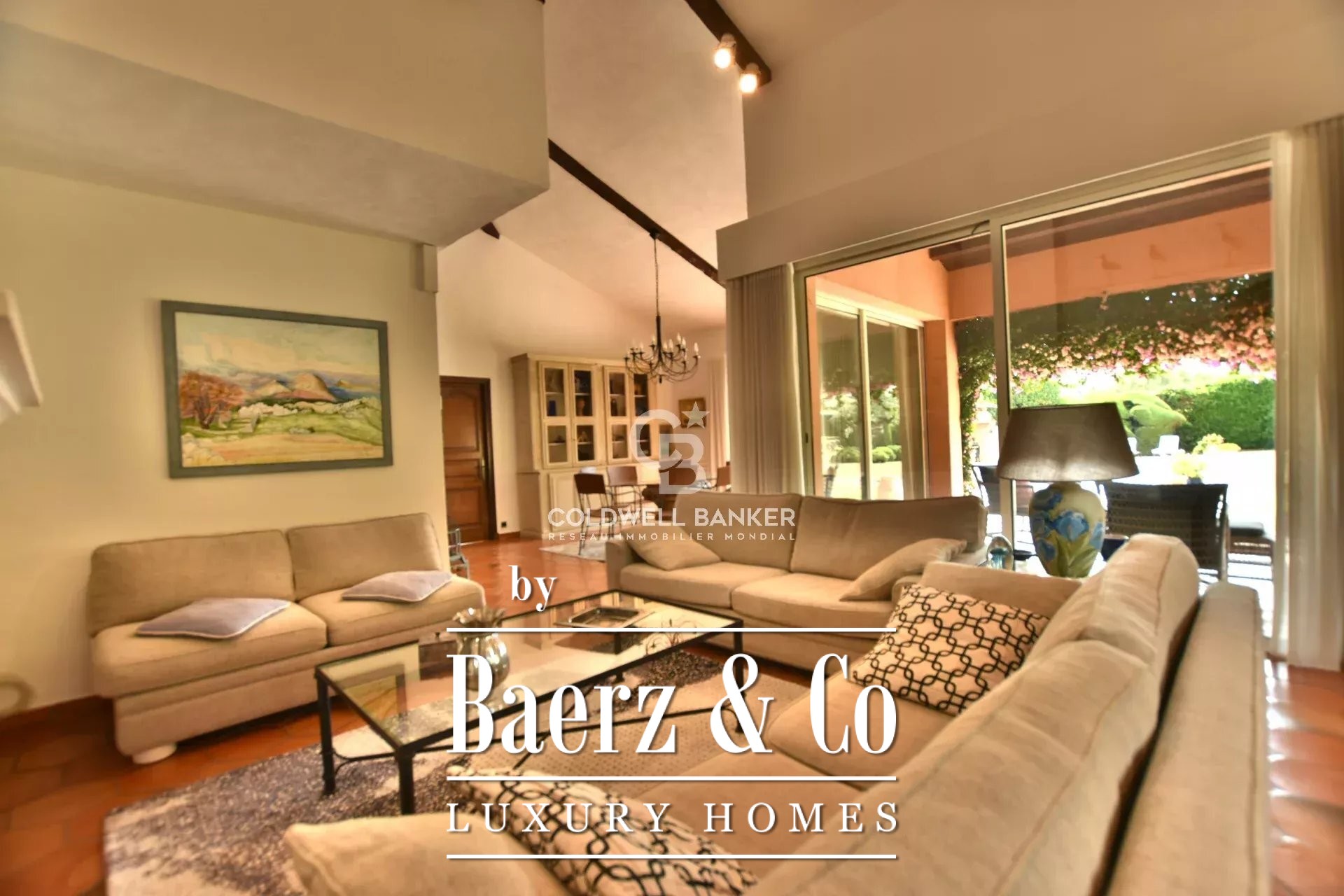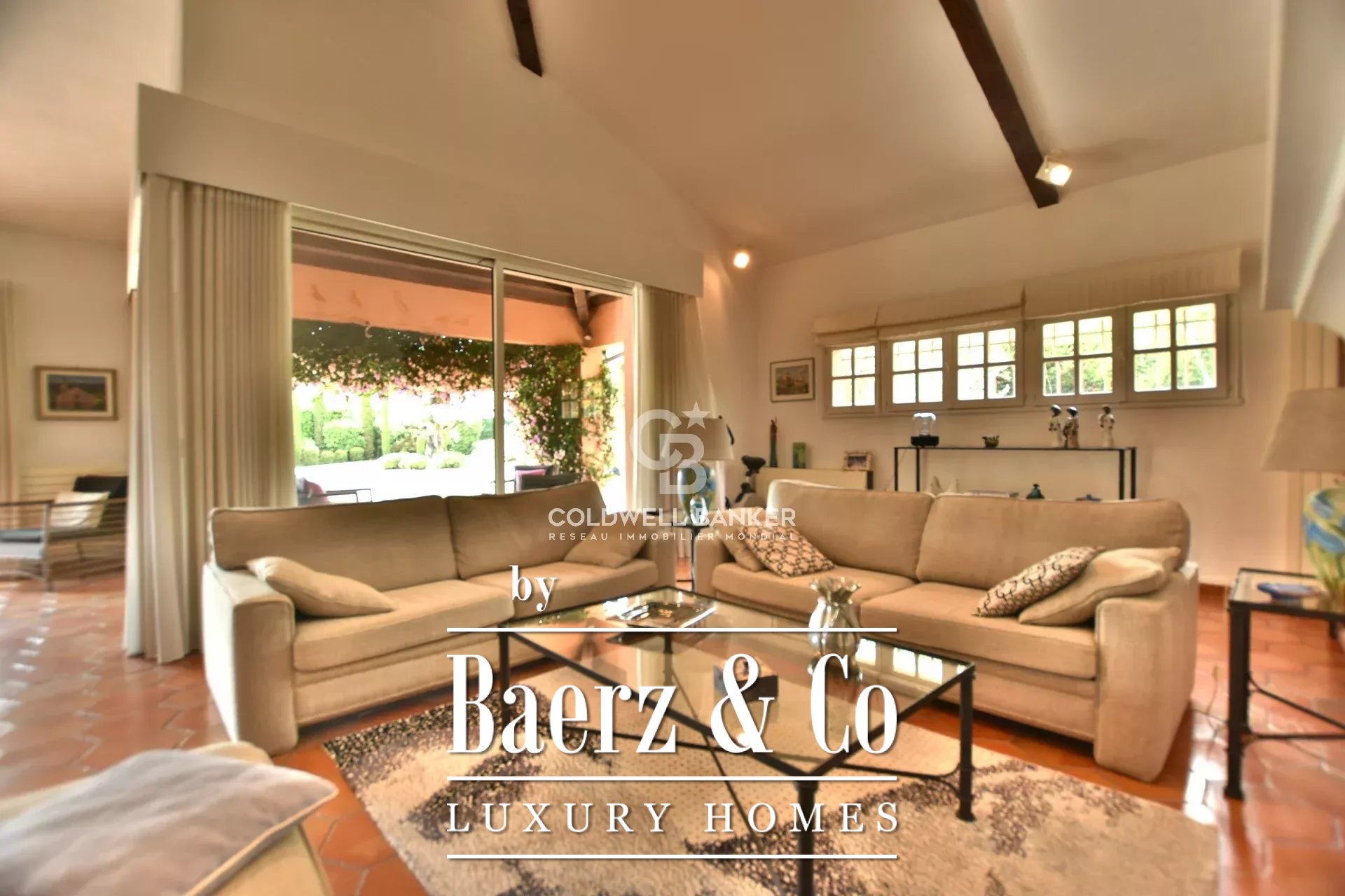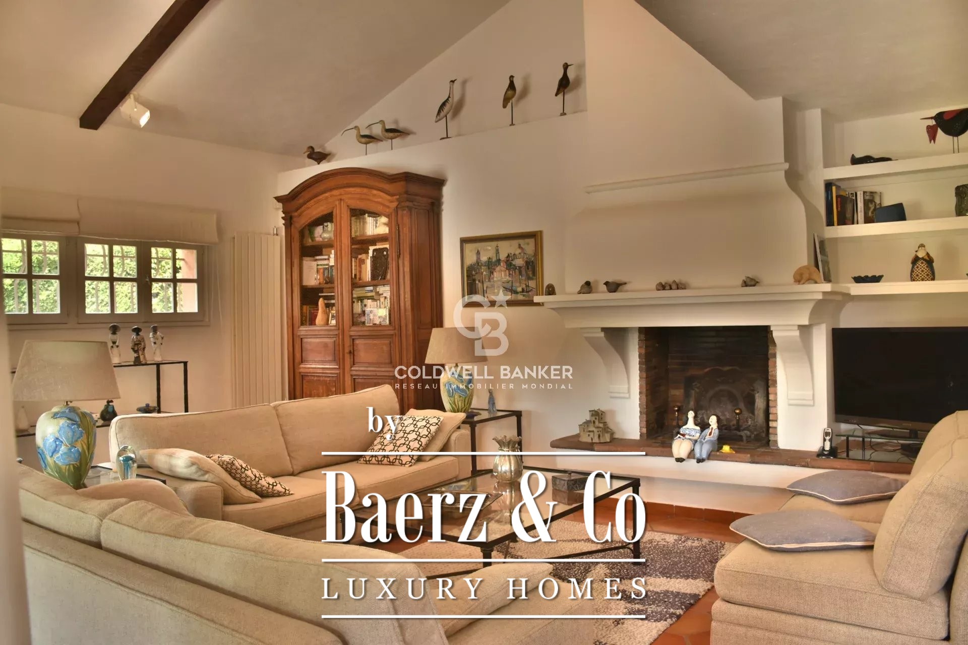 Deze Provençaalse villa in Valbonne is rustig gelegen, op korte afstand van het hart van dit gewaardeerde Côte d’Azur-dorp. De woning biedt 200 m² aan doordachte leefruimte verdeeld over twee etages, gelegen op een fraai aangelegd perceel van 2.670 m² met olijfbomen en mediterrane beplanting. De villa combineert klassieke regionale architectuur met hedendaags comfort, met hoge plafonds, een stenen open haard en royale lichtinval via de schuifdeuren naar het overdekte terras en de tuin.