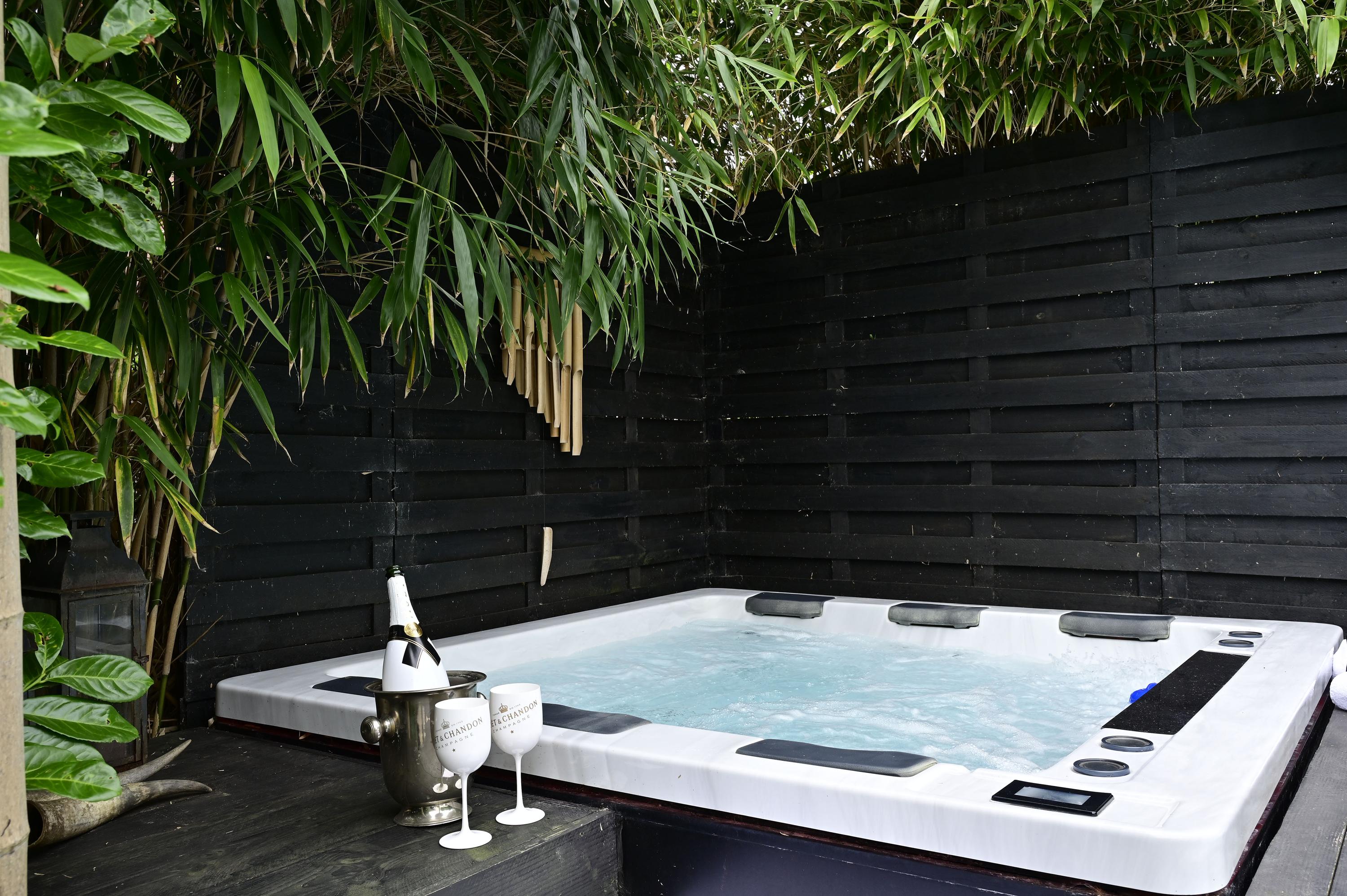 We beginnen bij het meest luxe gedeelte: de spa-ruimte. Hier vind je een compact zwembad en een riante jacuzzi die plaats biedt aan zes personen. Ernaast staat een gezellige, vaste houten loungebank waar je heerlijk kunt relaxen met een drankje binnen handbereik. Dit gedeelte van de tuin is grotendeels onderheid, wat zorgt voor een solide basis én een comfortabele uitstraling.