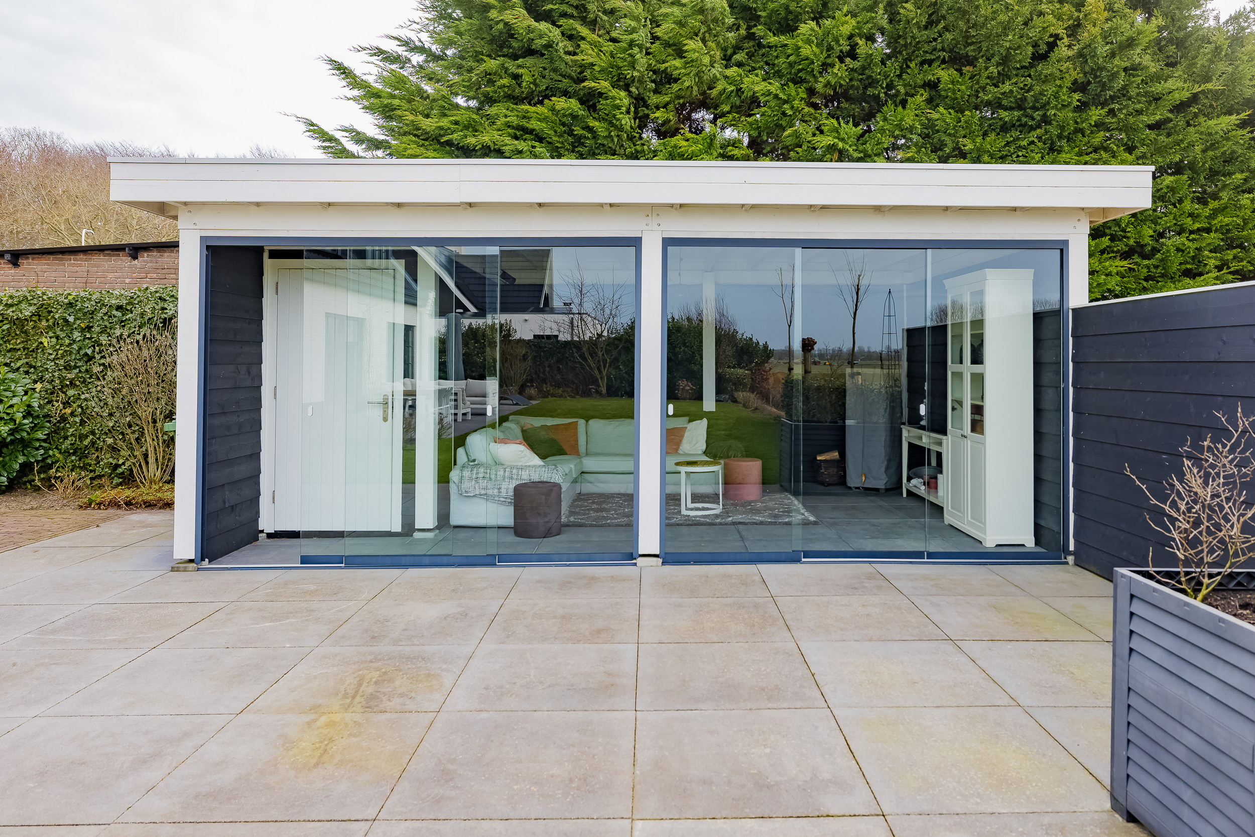 In de tuin staat bovendien een sfeervol tuinhuis met glazen deuren en een eigen terras: perfect als loungeplek, hobbyruimte of gastenverblijf.