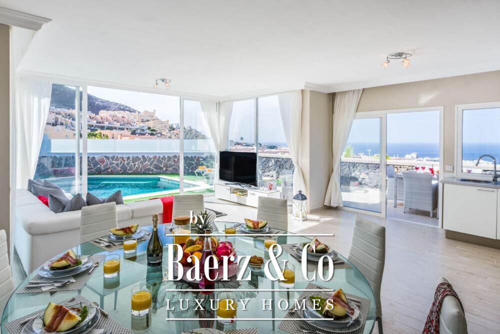 Вилла Adeje с видом на океан расположена в престижном районе Эль Мадроньяль на юге Тенерифе. Это воплощение света и пространства с жилой площадью 213 м², распределенной на двух уровнях. Первый этаж объединяет просторную гостиную с кондиционером, оборудованную кухню, двухместную спальню и ванную комнату; естественный свет проникает через большие окна с видом на море. На верхнем этаже находятся три двухместные спальни и две ванные комнаты, которые предлагают уединение и покой; все помещения обставлены сдержанно и стильно, в современном ключе.