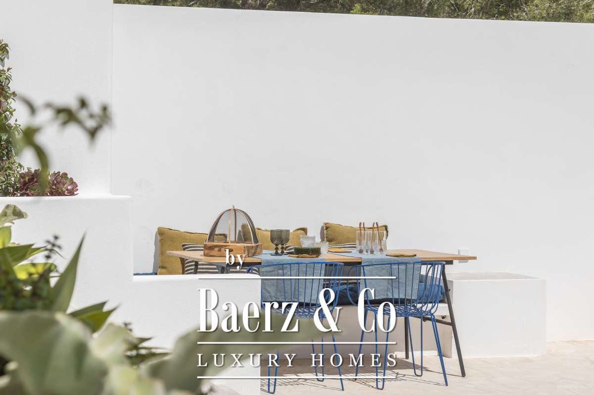 Внешняя зона представлена тропическими садами, многочисленными патио и летней кухней с встроенным барбекю. Принимайте гостей за большим столом на свежем воздухе, отдыхайте у бассейна или наслаждайтесь уникальной атмосферой острова — город Ибица, пляж Таламанка, марины, рестораны и аэропорт находятся всего в нескольких минутах. Эта роскошная вилла в продаже в Can Furnet приглашает к утончённому стилю жизни в самом желанном месте Ибицы.