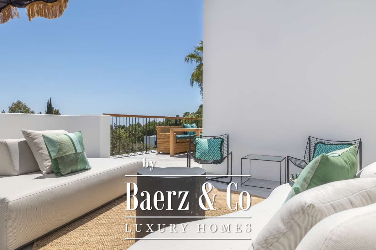 Вилла Can Furnet с панорамными видами на море и Дальт Вила — образец средиземноморской элегантности, возвышающийся над динамичным побережьем Ибицы. Эта вилла находится в привилегированном жилом комплексе и располагает 387 м² изысканных жилых пространств на участке площадью 960 м². В доме оборудовано шесть просторных спален и шесть ванных комнат, включая отдельные апартаменты для гостей с собственным входом, кухней, спальней и ванной комнатой, что обеспечивает абсолютную приватность.