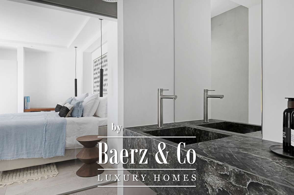 Основная спальня — образец умиротворённого уединения с отдельно стоящей ванной и атмосферой домашнего спа. Вторичные спальни расположены на разных уровнях, предоставляя пространство и приватность владельцам и гостям. Современные удобства включают систему кондиционирования воздуха, тёплые полы и элегантную мебель.
