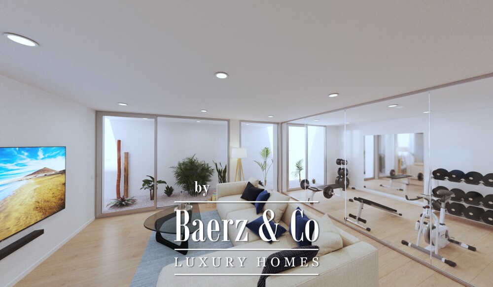 Верхний этаж предназначен для открытой жилой зоны: кухня с островом и техникой премиум-класса, столовая, гостиная и гостевой санузел — все с выходом к обогреваемому инфинити-бассейну. Виды на Атлантику и остров Ла-Гомера задают ритм дня, а частный лифт обеспечивает легкое перемещение между уровнями.