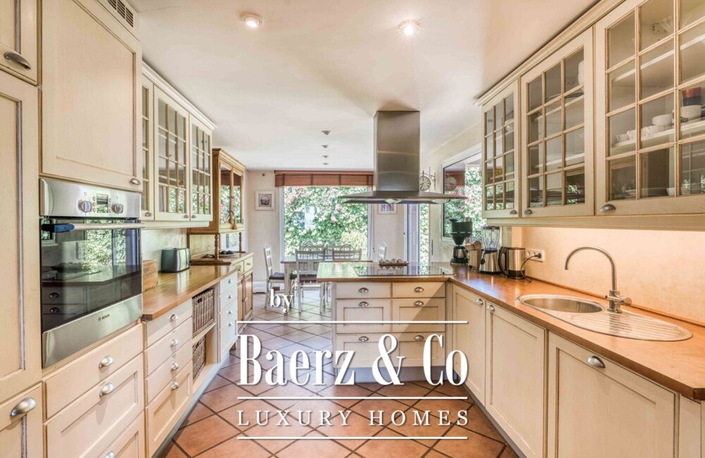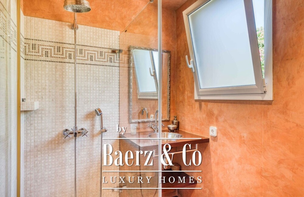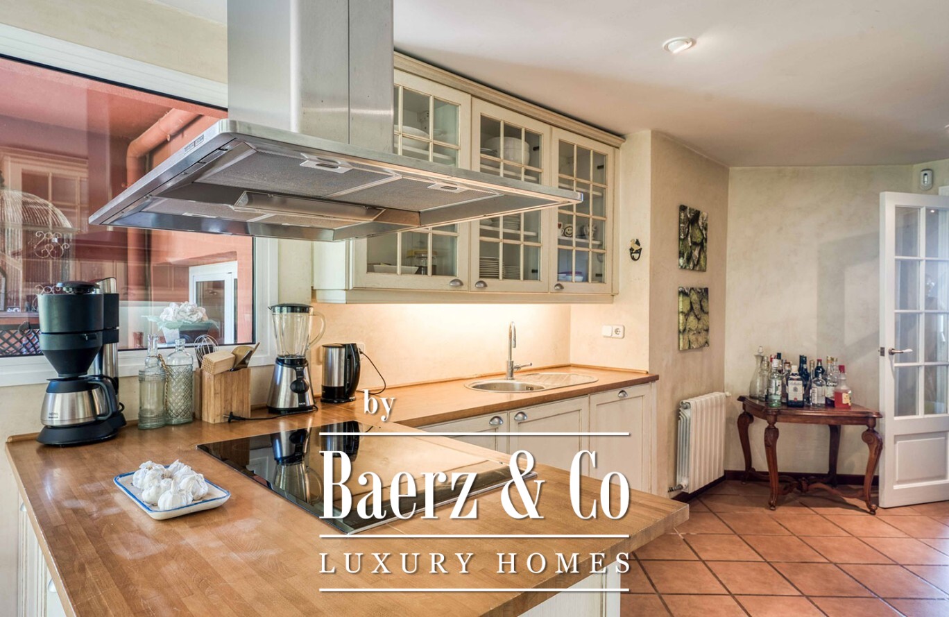 Вилла расположена на двух залитых светом уровнях, включает семь просторных спален с двуспальными кроватями и четыре полноценных санузла, обеспечивая достаточно места для семьи и гостей. Главная гостиная светлая и просторная, плавно переходит на террасу и в сад. Полностью оборудованная кухня располагает к неформальному общению, а кладовая и гараж придают дому практичную функциональность. Каждое помещение оборудовано системой отопления и кондиционирования для комфорта в любое время года.