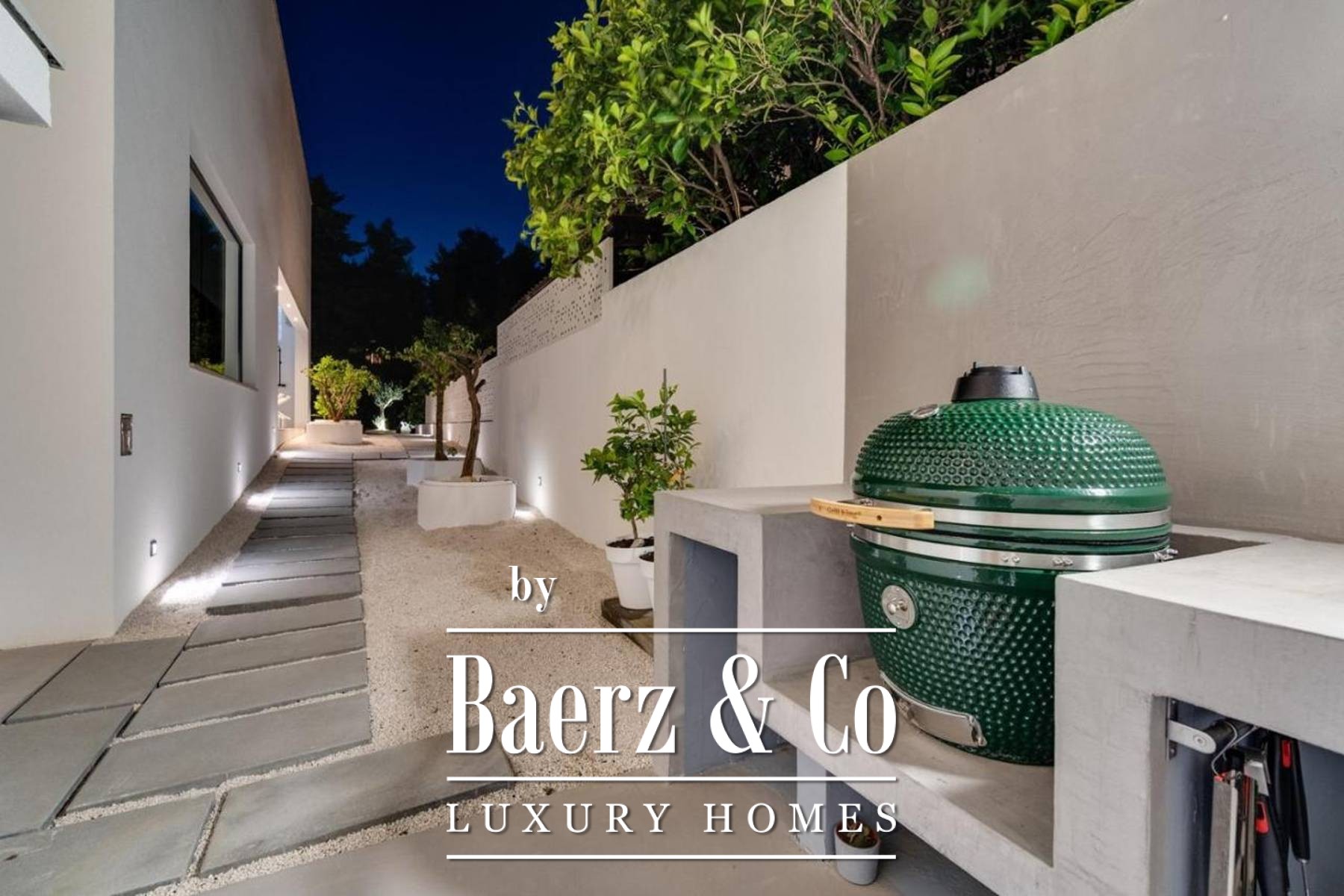 В доме пять спален, четыре из которых оборудованы собственными ванными комнатами. Открытая планировка объединяет кухню, столовую и гостиную. На верхнем этаже располагается отдельная офисная зона площадью 25 м², предлагающая спокойное пространство для работы на удалёнке или уединённых размышлений. Зона велнесса оформлена финской сауной, туалетом и душем, а также плавно переходит к открытому подогреваемому бассейну, солнечной террасе и обеденной площадке под навесом.