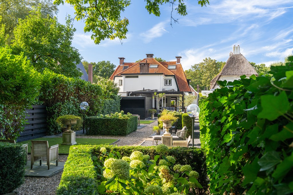 Снаружи сад, ориентированный на юго-восток, простирается почти на 45 метров в глубину, предлагая несколько террас, ухоженные зоны и веранду, оборудованную для жизни на свежем воздухе в любое время года. Оригинальные архитектурные детали, рельеф Ora et Labora, а также статус муниципального памятника с 2010 года подчеркивают уникальное положение дома. Локация обеспечивает быстрый доступ к культурной жизни Веенендала, а также к лесам и лугам Утрехтсе Хёйвелрюг.