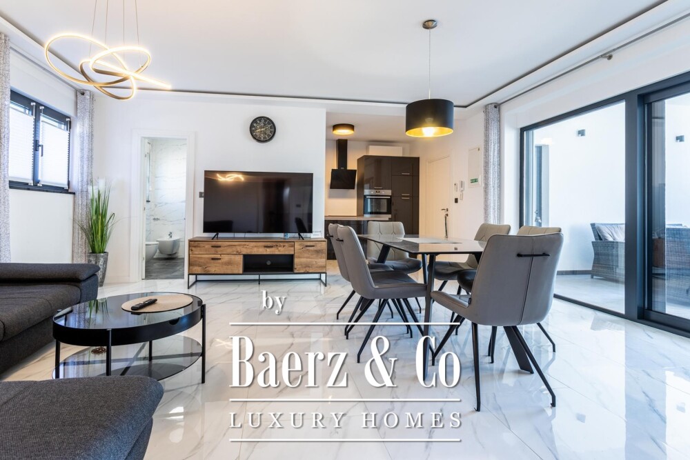Townhouse Vodice — это значительная недвижимость в Хорватии, продуманно организованная на трёх этажах и предлагающая 400 м² жилой площади на участке 514 м². Каждый этаж представляет собой отдельные апартаменты, что обеспечивает идеальное сочетание приватности и многофункциональности. Townhouse Vodice включает восемь спален и восемь ванных комнат в отдельных апартаментах, каждая с собственным входом, а также две автономные студии на первом и втором этажах.