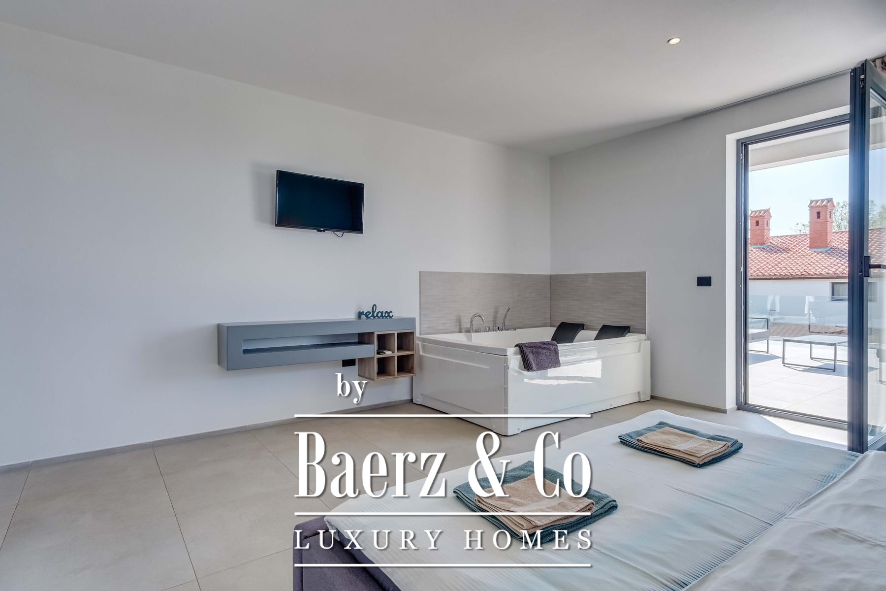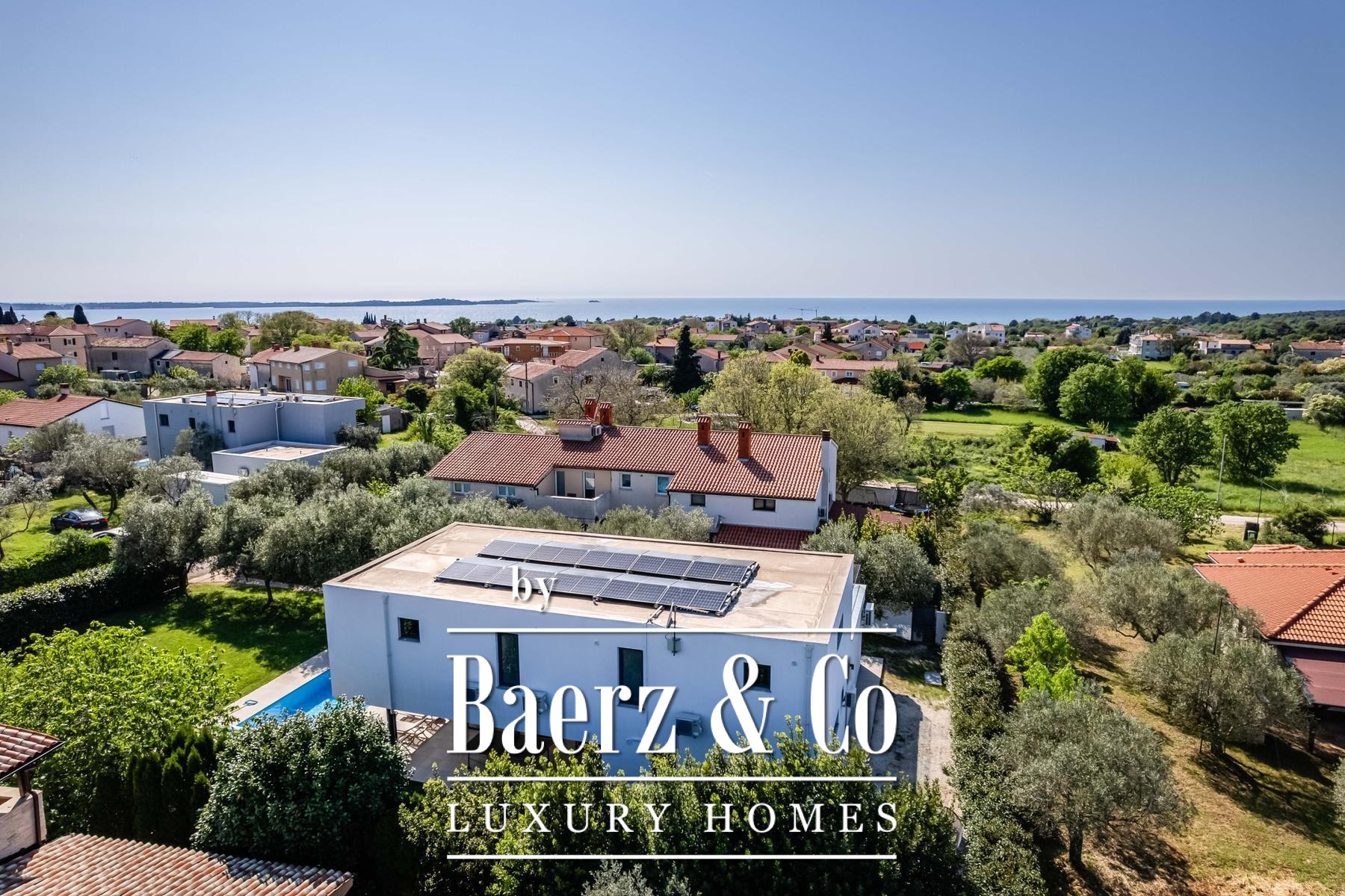 Обогреваемый бассейн, отделка класса люкс и солнечная электростанция мощностью 9,1 кВт подчеркивают сдержанную роскошь этой недвижимости. Сад, огражденный сухой каменной кладкой и живой изгородью, обеспечивает приватность, а соседствующая оливковая роща гарантирует вечный вид на море. Эта роскошная вилла на продажу в Vodnjan обещает спокойную жизнь и неизменное архитектурное качество.