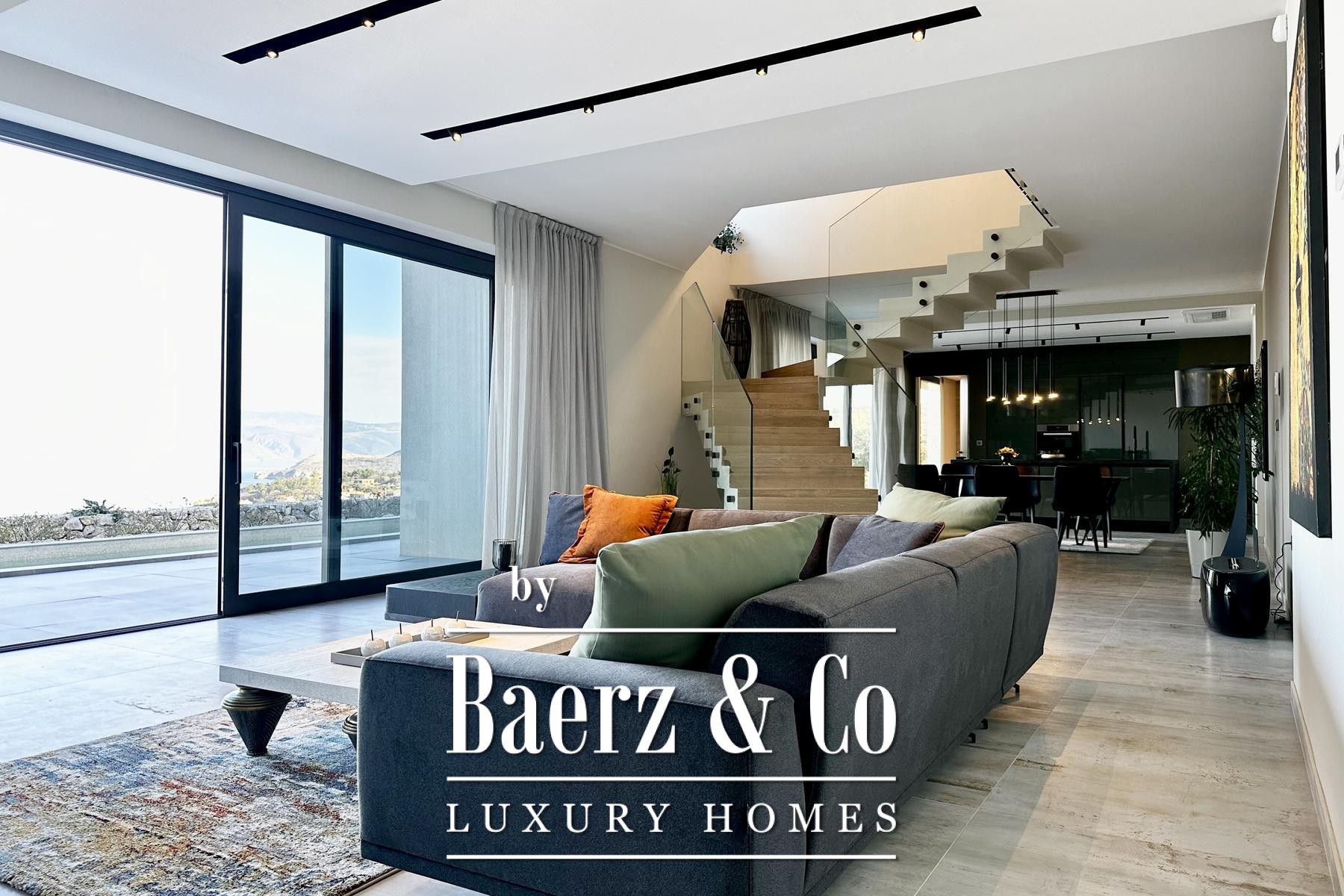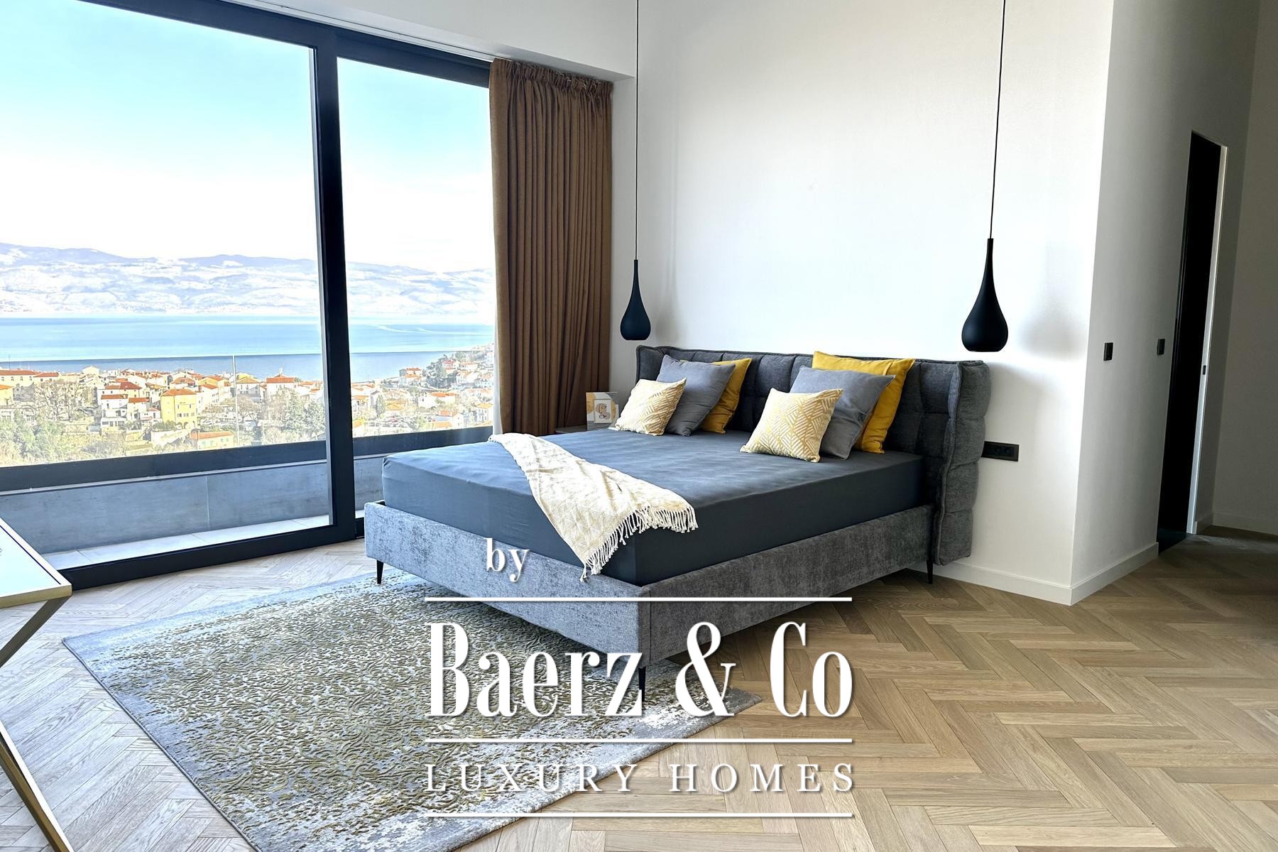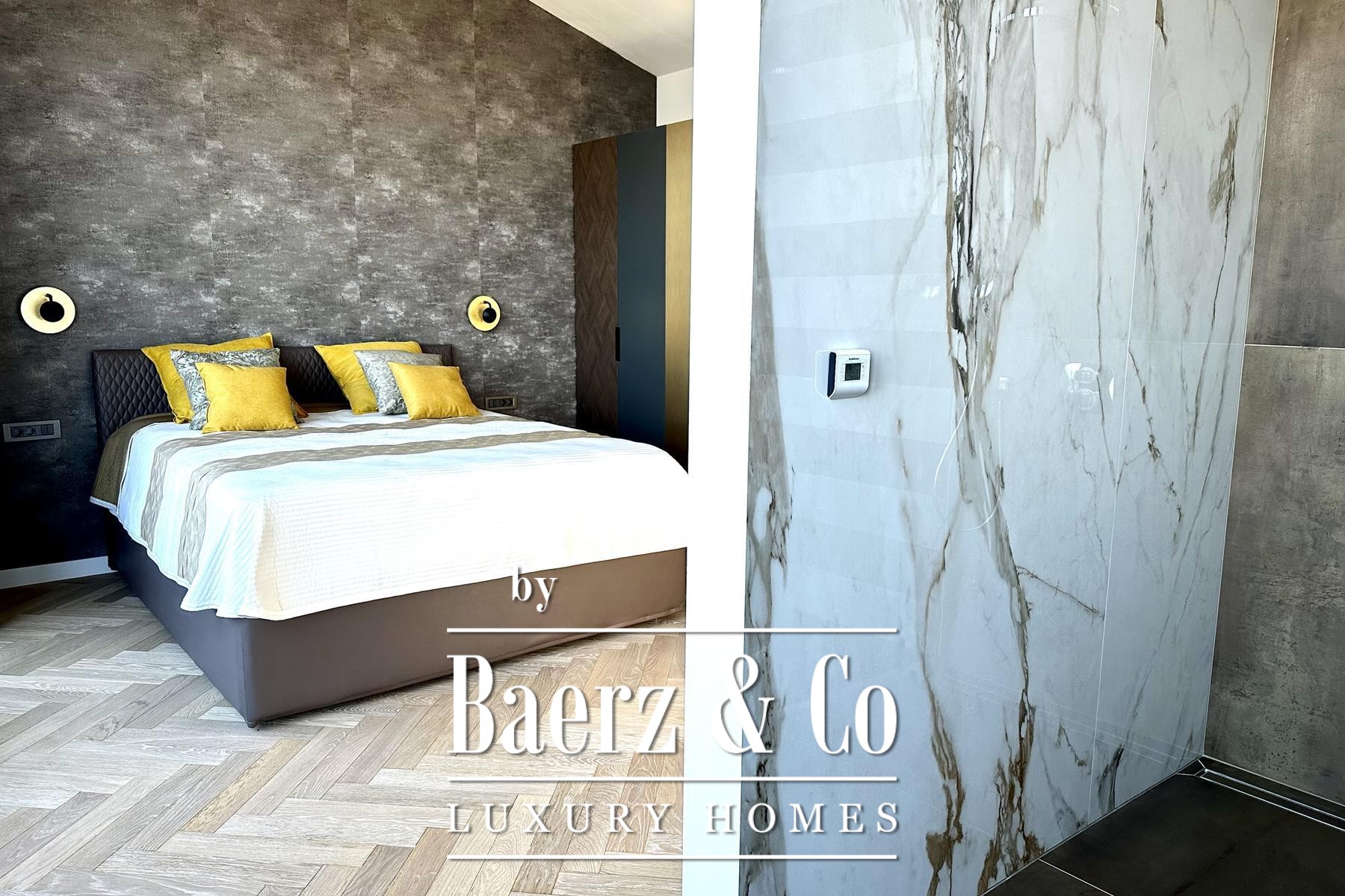 На верхнем этаже три спальни с ванными комнатами обеспечивают приватность и гармонию пространства. В оформлении акцент сделан на открытость, с перспективами на природу и умиротворяющую синеву моря. Эта вилла в Врбнике, благодаря своей ориентации и естественному переходу между зонами, воплощает современный средиземноморский стиль жизни, подчеркнутый светом, воздухом и чистотой материалов. Покой здесь подчеркивает связь с природой и глубокий комфорт.