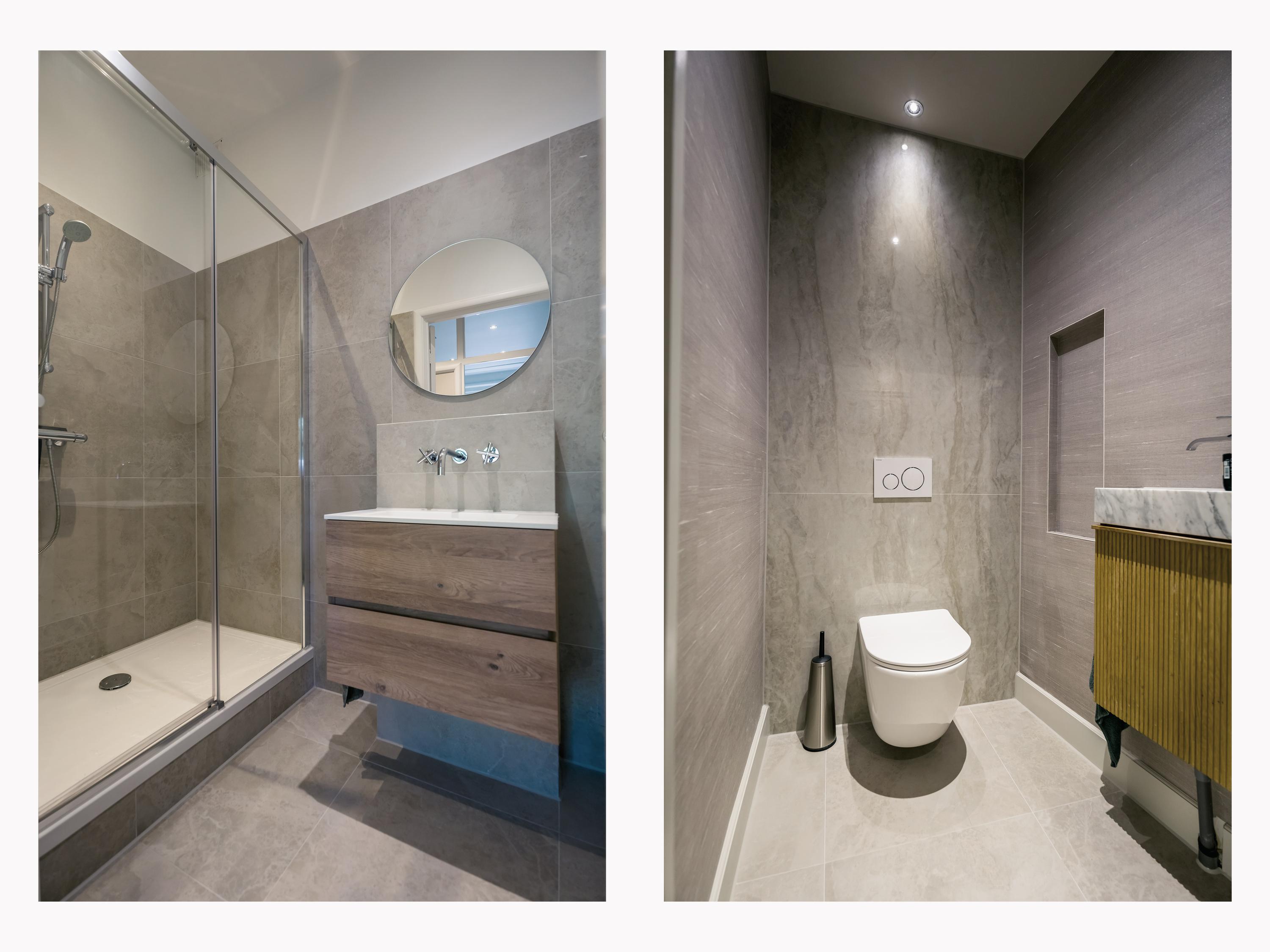 法式落地门引入充足阳光,通向约36平方米、朝西南的花园,将空间感延伸至户外。公寓布局包括多功能玄关、可作书房或次客厅的空间,以及下沉一层的两间额外房间(净高2.23米),为居住和储物带来灵活性。玄关、浴室和厨房均配有地暖,提升日常舒适度。