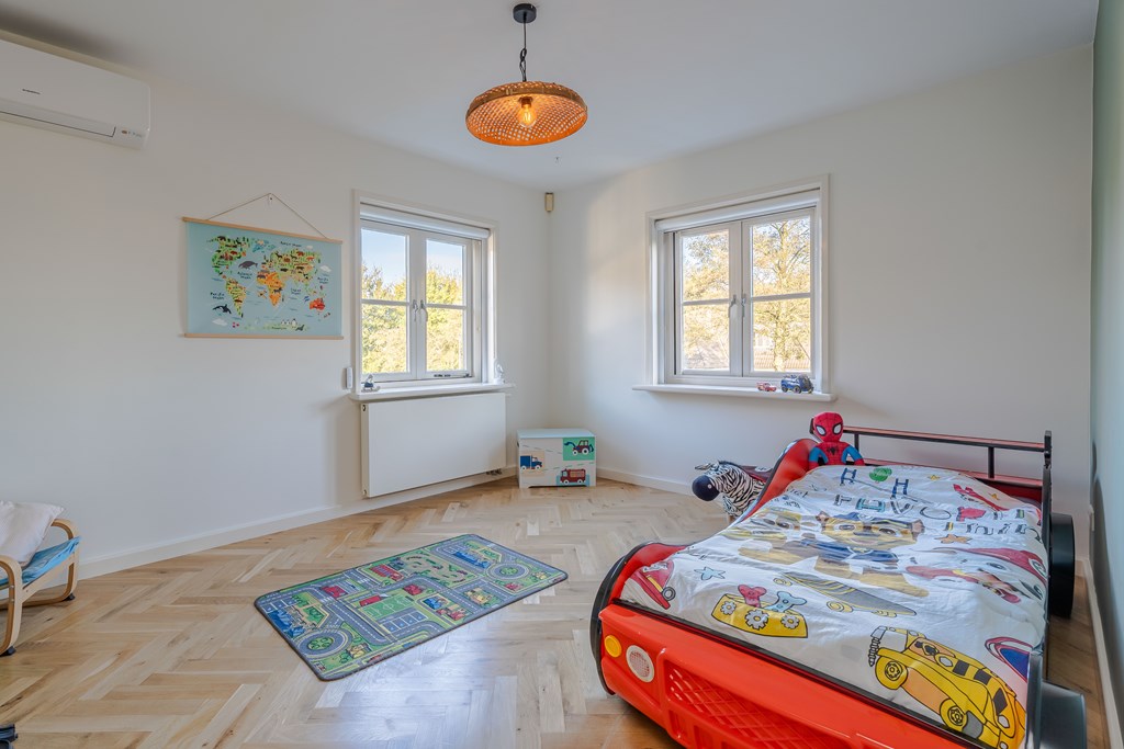 De zolderkamer is voorzien van een airco en biedt plaats aan de technische installatie van de woning. Zo is hier de opstelplaats van de cv-ketel, omvormer van de zonnepanelen, 3 thuisbatterijen, groepenkast en warmwaterboiler geplaatst. De zonnepanelen en thuisbatterijen zijn in december 2023 geplaatst.