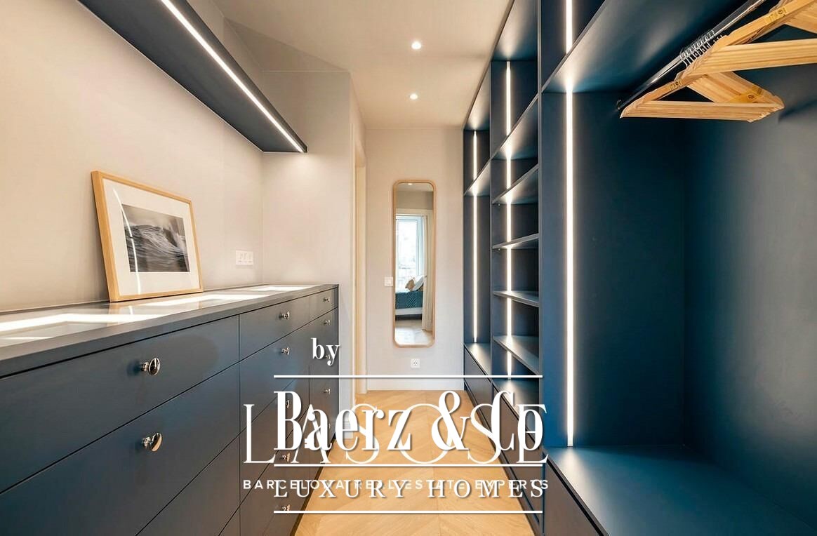 下层三间卧室均可通往 18 平方米阳台,让夜间区域沐浴自然光。主套房设有步入式衣帽间及独立卫浴,两间次卧共用一间现代浴室。两层都设有独立出入口,进一步强调了这套宅邸的低调与灵活。