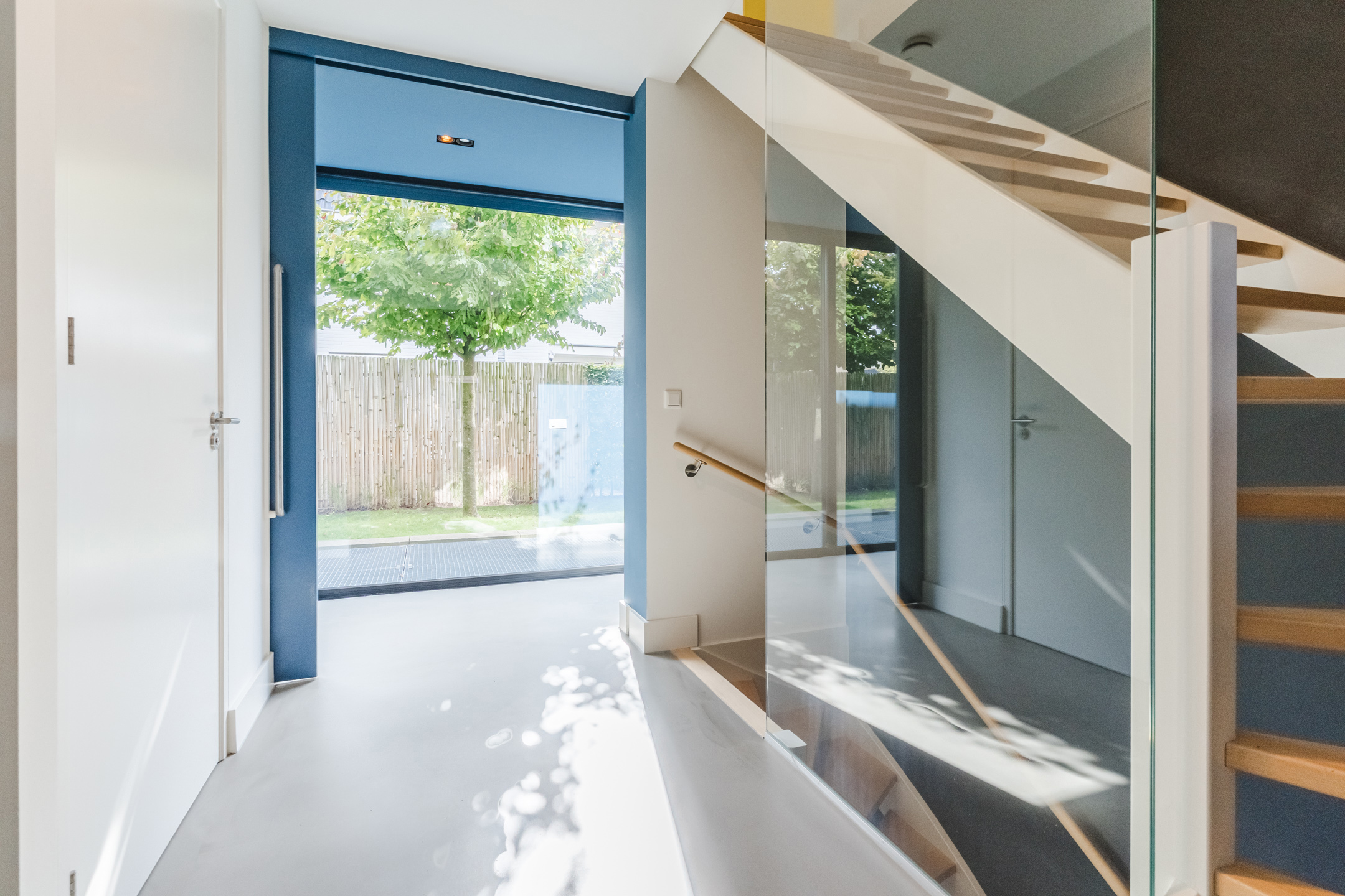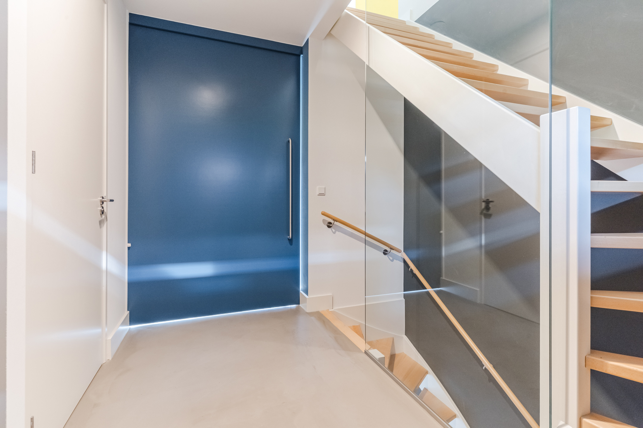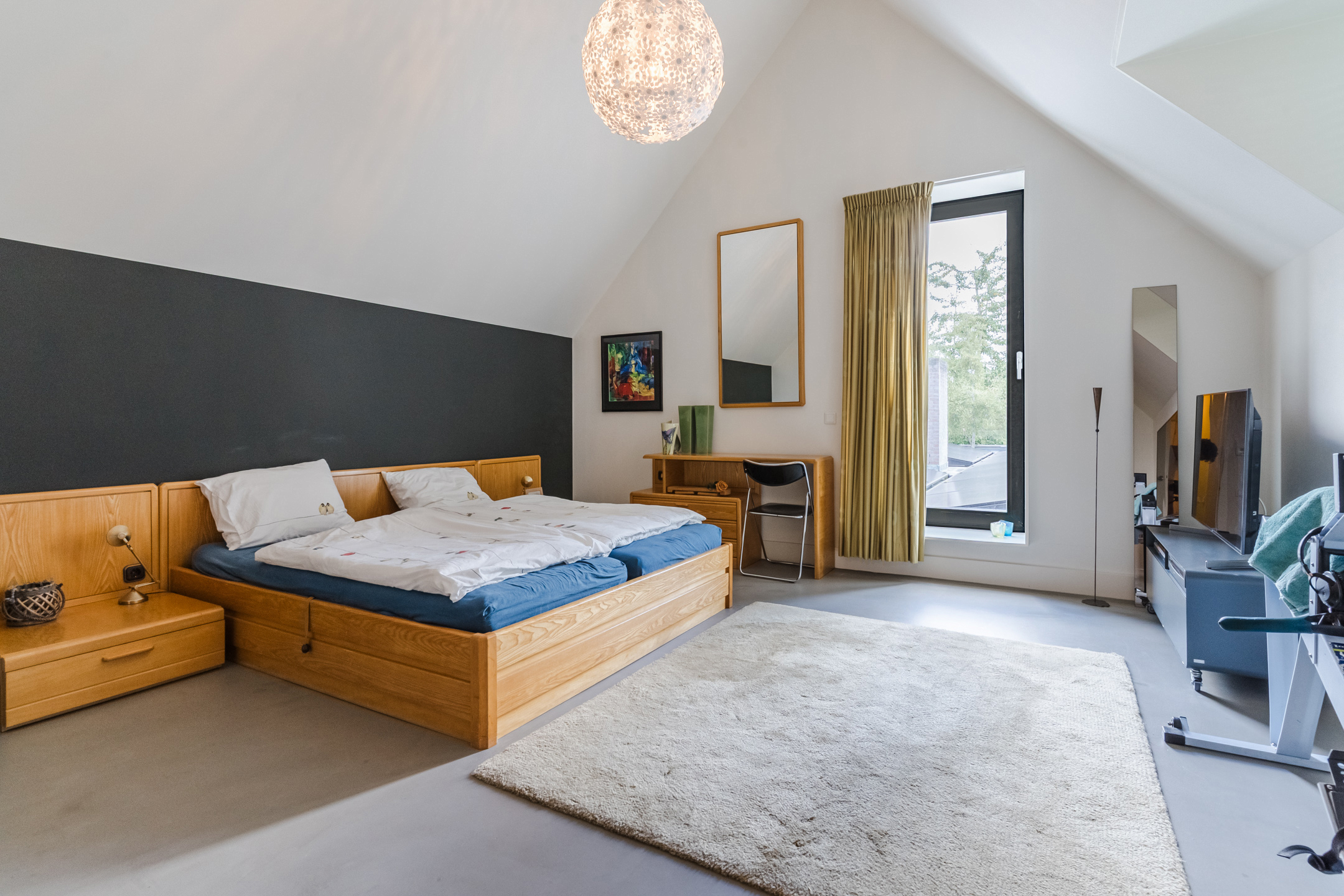 全功能地下室设有两间卧室与套内卫浴,各自直达私家庭院。首层提供两间额外卧室、宽敞浴室以及阁楼。全屋采用设计混凝土、嵌入式照明和分区地暖与制冷,兼具耐用与舒适。二十八块太阳能板、地源热泵和高效玻璃,为住宅带来真正的 A++ 能效表现,实现全年宜居与面向未来的环保生活。