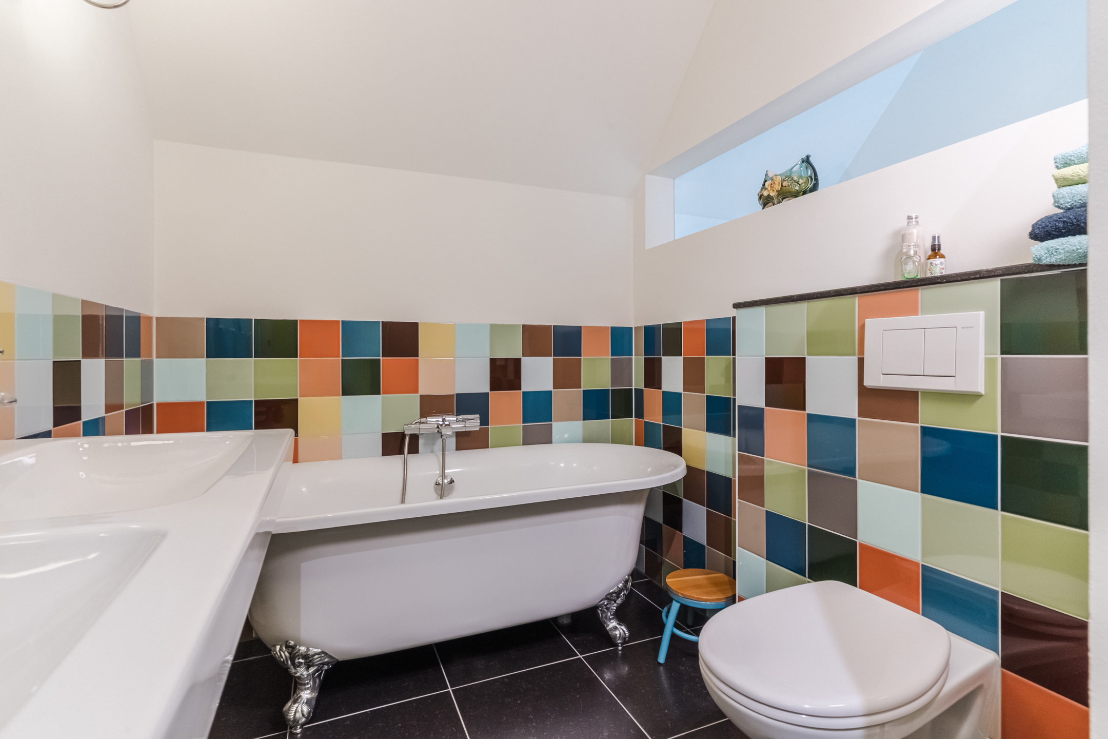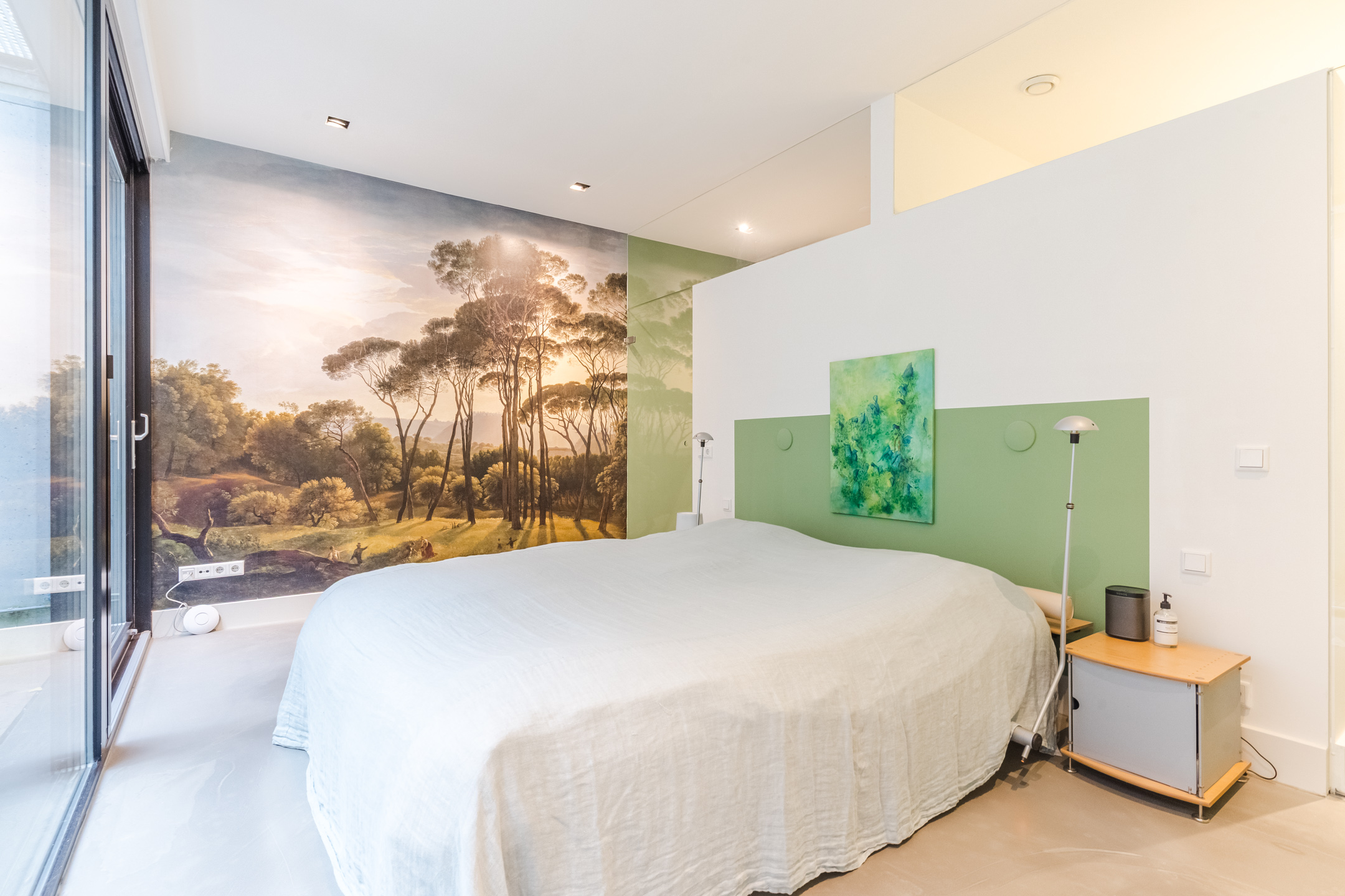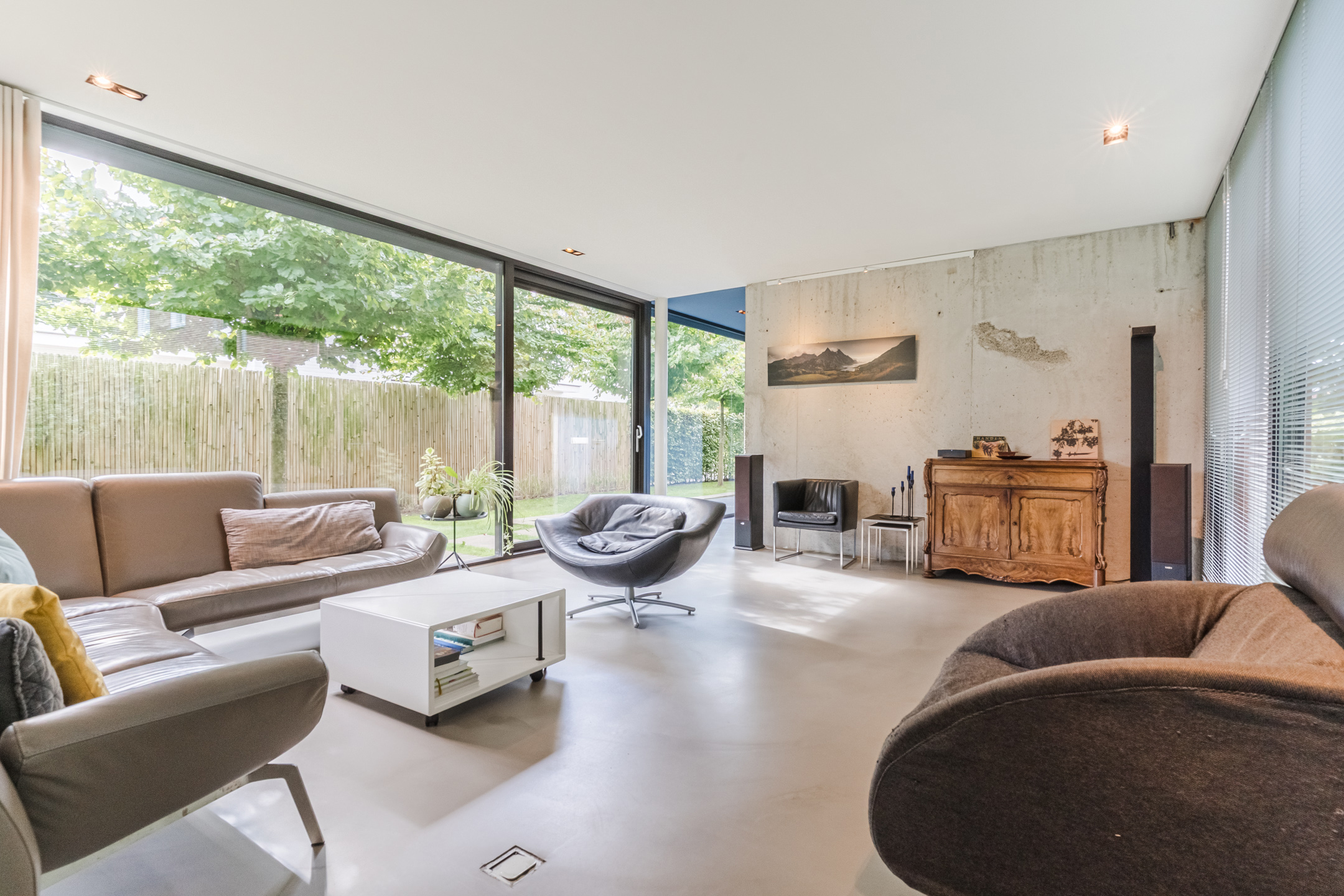 全功能地下室设有两间卧室与套内卫浴,各自直达私家庭院。首层提供两间额外卧室、宽敞浴室以及阁楼。全屋采用设计混凝土、嵌入式照明和分区地暖与制冷,兼具耐用与舒适。二十八块太阳能板、地源热泵和高效玻璃,为住宅带来真正的 A++ 能效表现,实现全年宜居与面向未来的环保生活。
