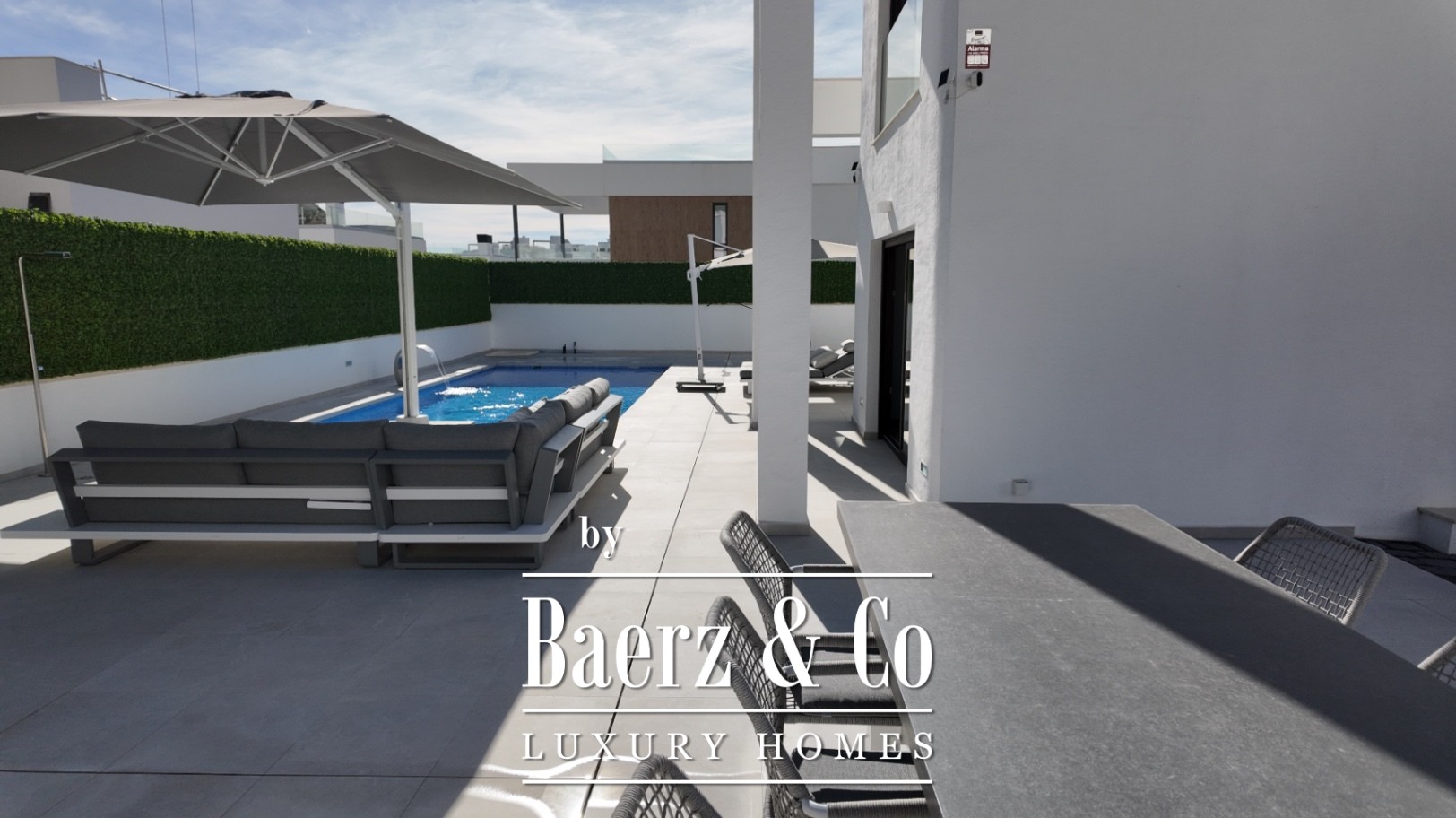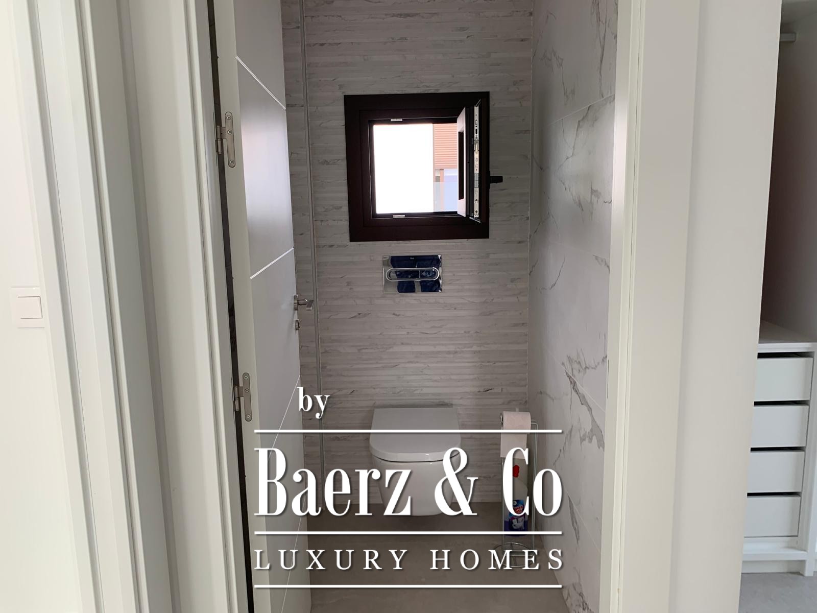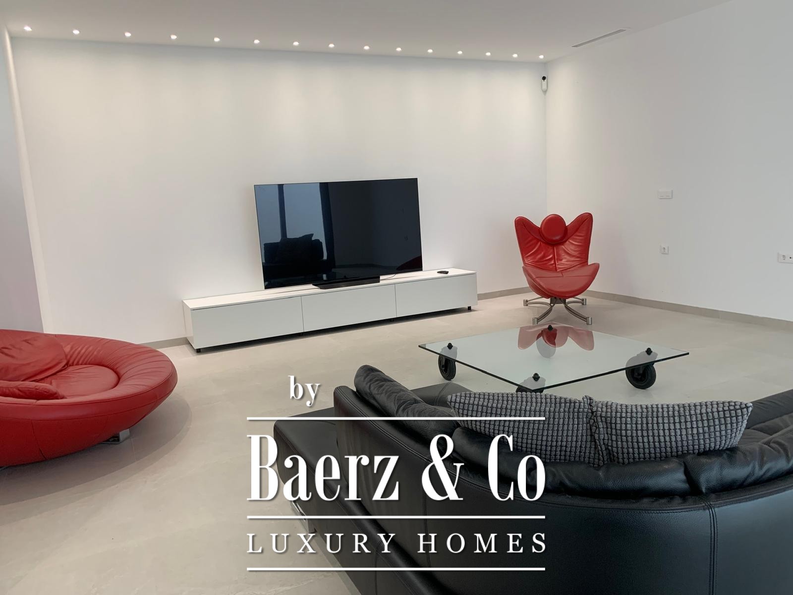 下至半地下层,宽敞的起居区可作为影音室或个人健身房,配备洗衣房、另外两间卧室及带淋浴的浴室。户外,景观花园环抱专属泳池和露台,营造休闲氛围,围栏停车区保障安全与便利。两座各自独立出入的屋顶露台,尽览广阔海景与海湾风光,其中一座配备室外淋浴。此别墅在静谧住区中,将简洁线条、双层玻璃、智能安防系统和谐结合。