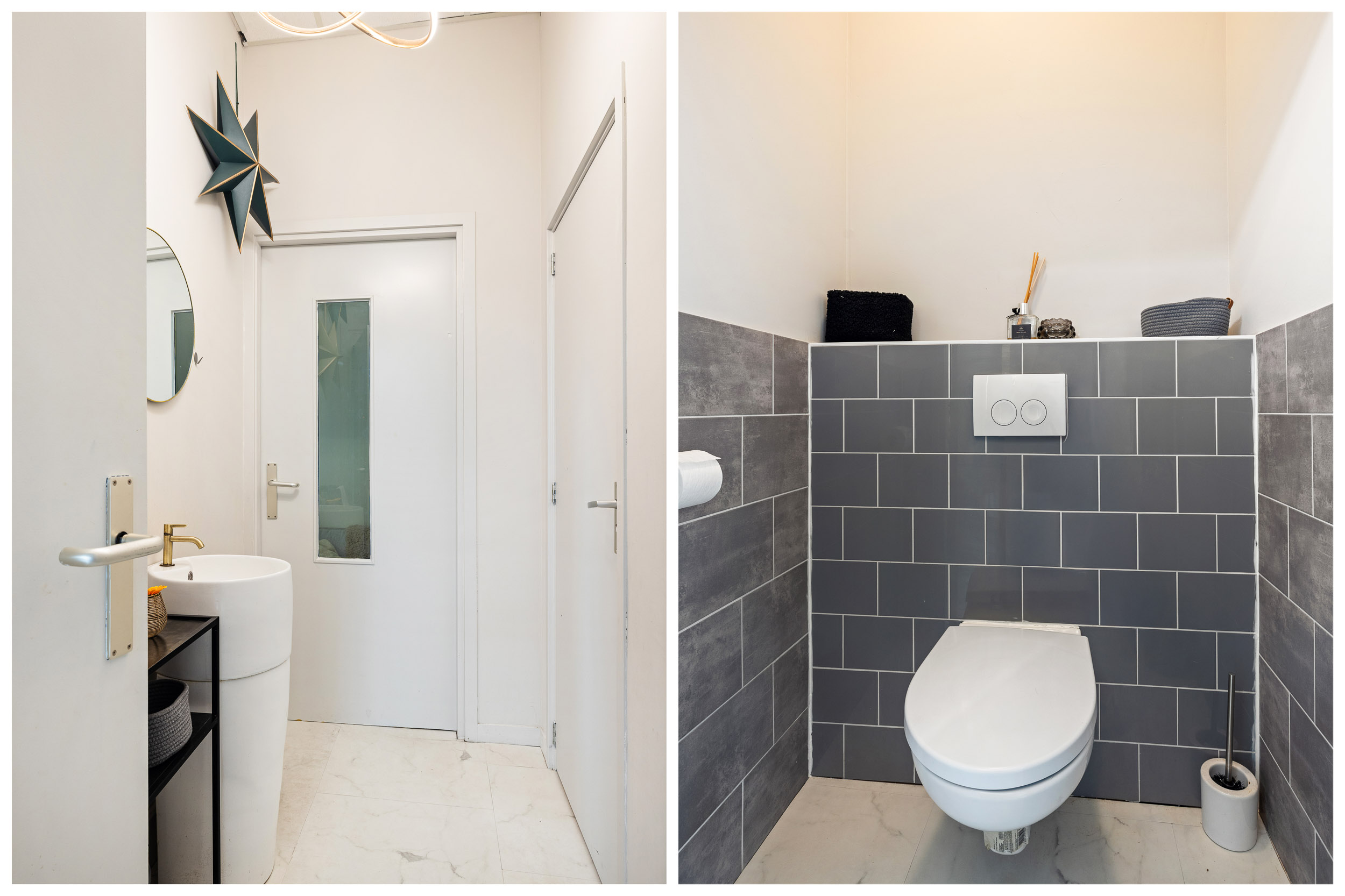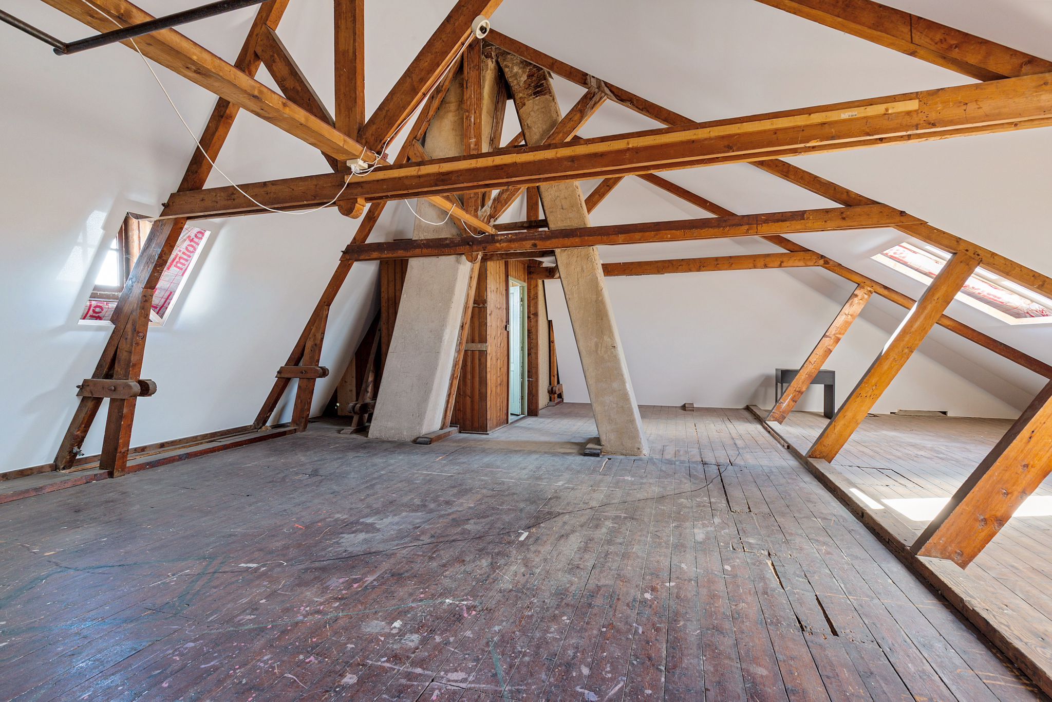一座气势非凡的楼梯通向一楼,套房式房间配备带有历史黄铜配件的推拉门、拼花地板和保留完好的黑色大理石壁炉。起居区延伸至宽敞的45平方米屋顶露台;额外厨房与两间卧室贯穿历史传承和结构稳固。二楼为85平方米的开放式阁楼,粗壮木梁环绕,层高充裕,为日后创作工坊或独立公寓预留广阔空间。